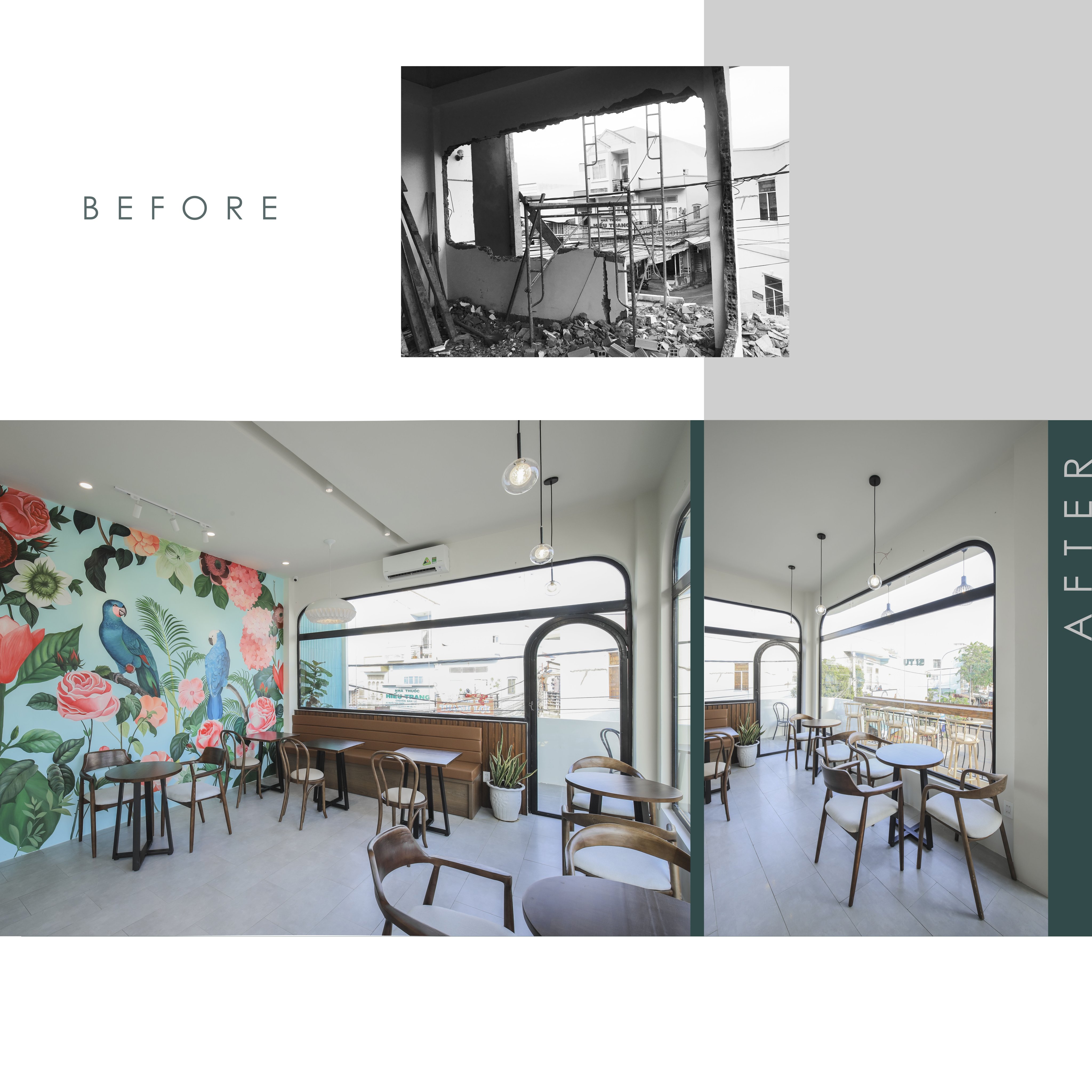 Cùng xem ảnh before - after để thấy được quá trình thay đổi của một căn nhà phố cũ thành quán Café lung linh xinh đẹp như thế nào nhé | Các bạn nhớ ghé ủng hộ khách hàng của An Nam tại địa chỉ: café Lily số 171 đường Huỳnh Cương.