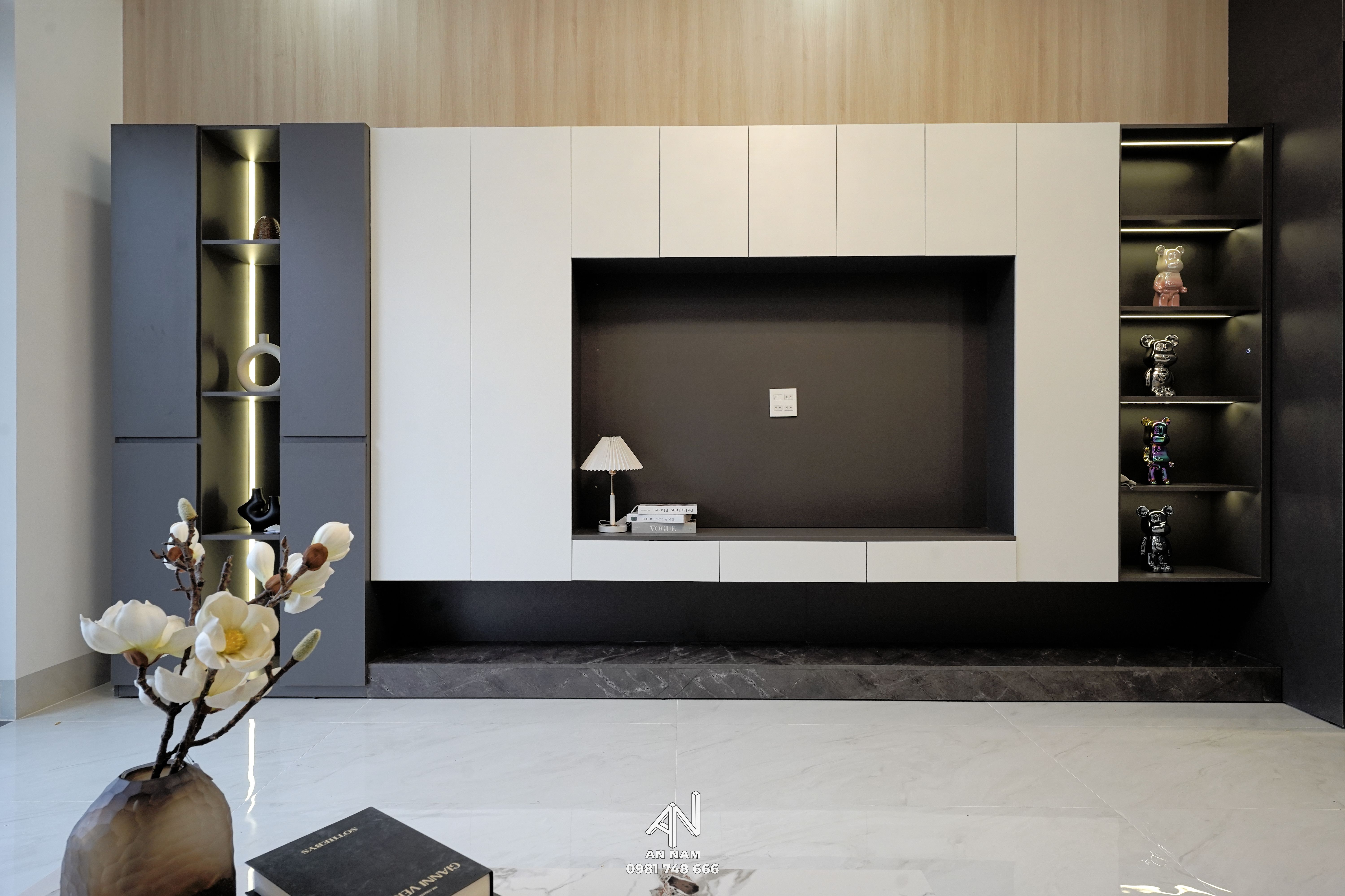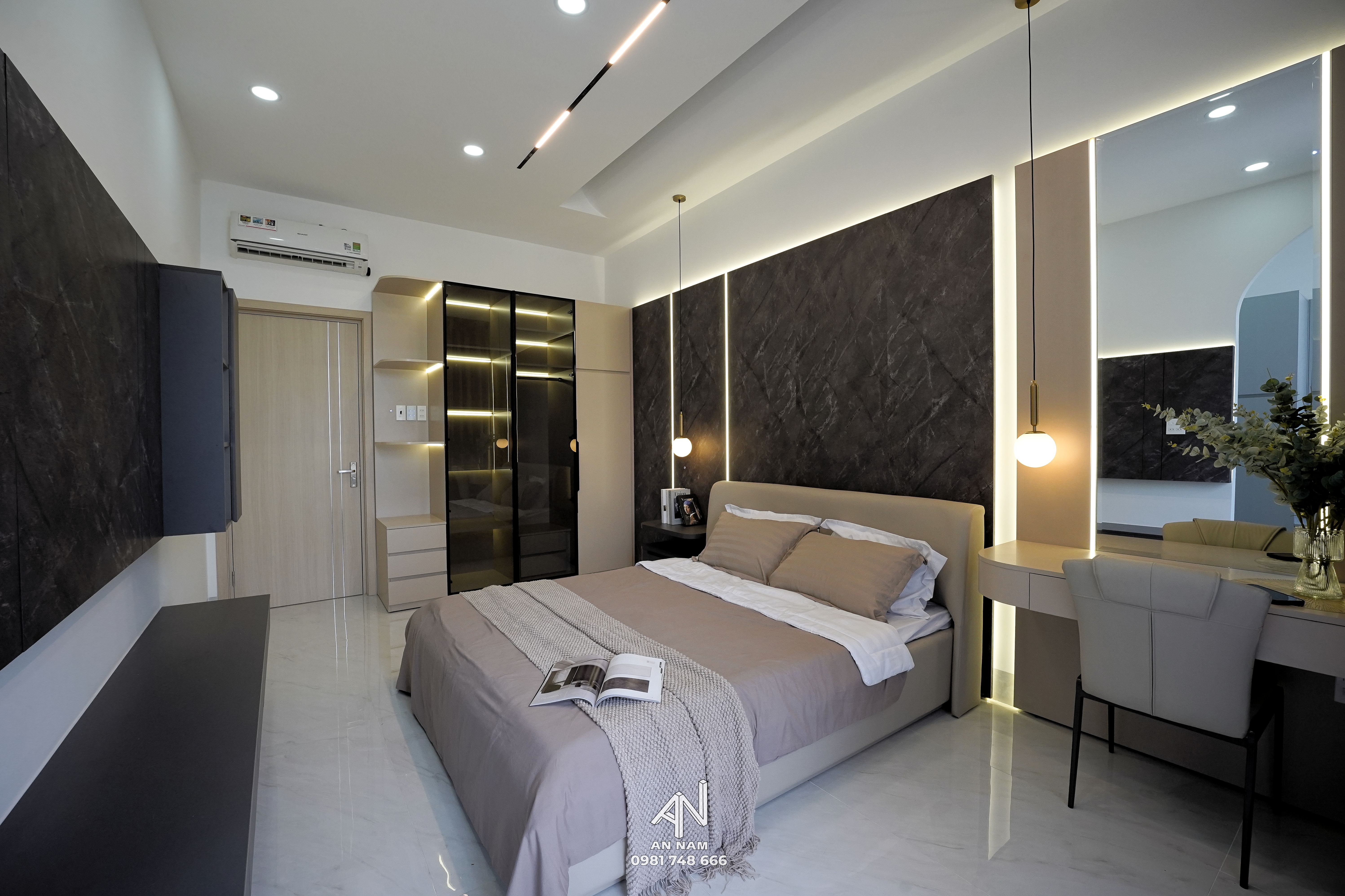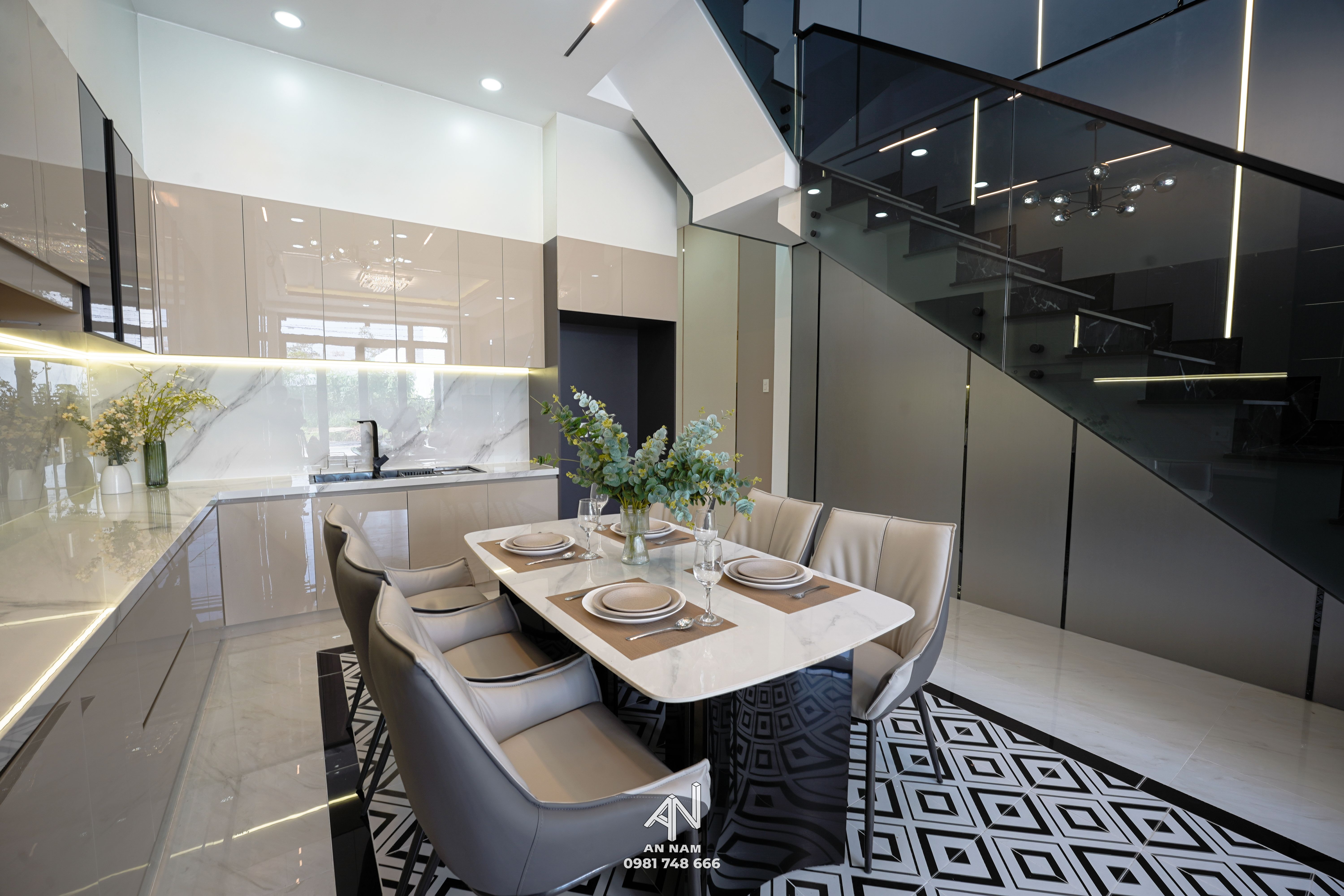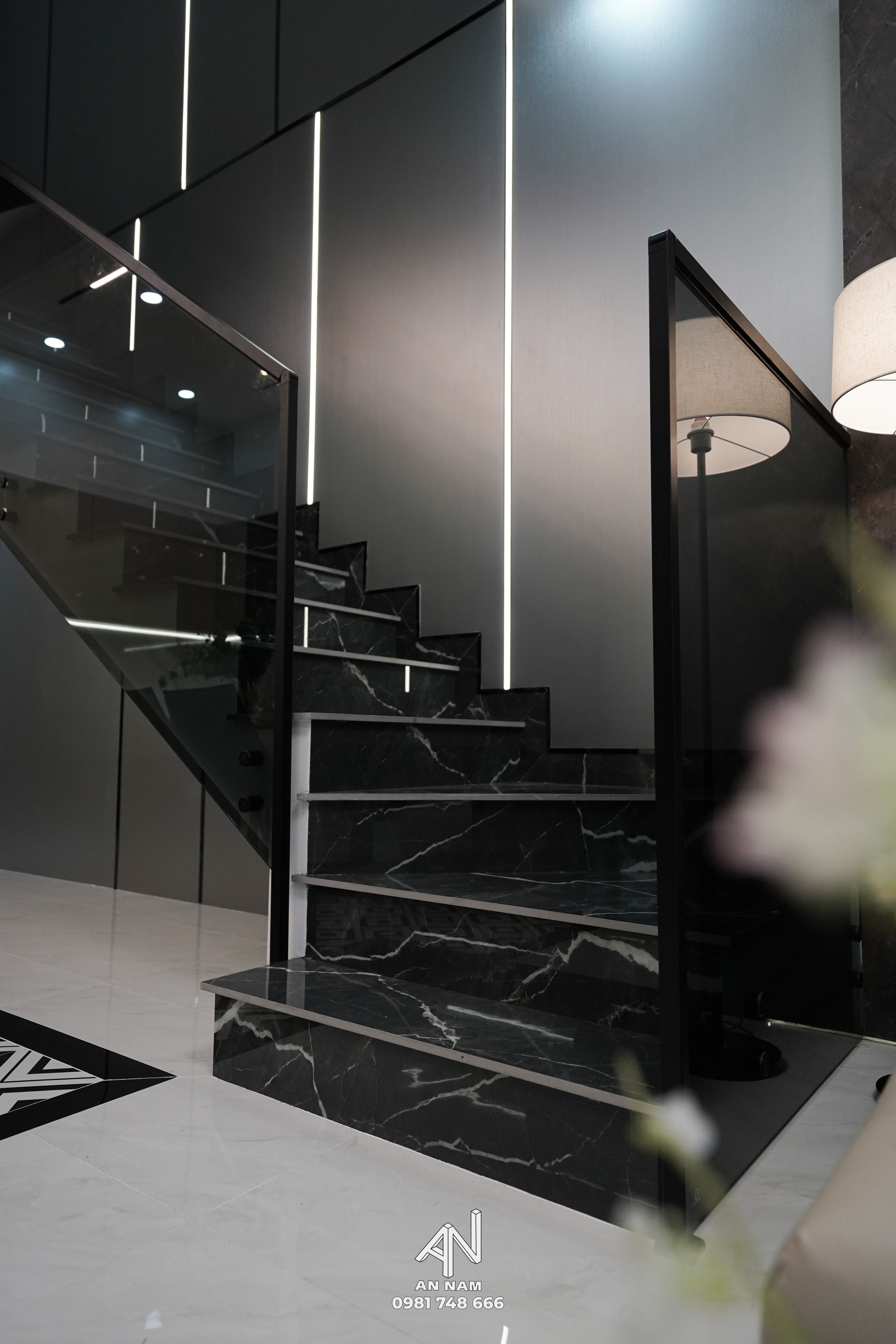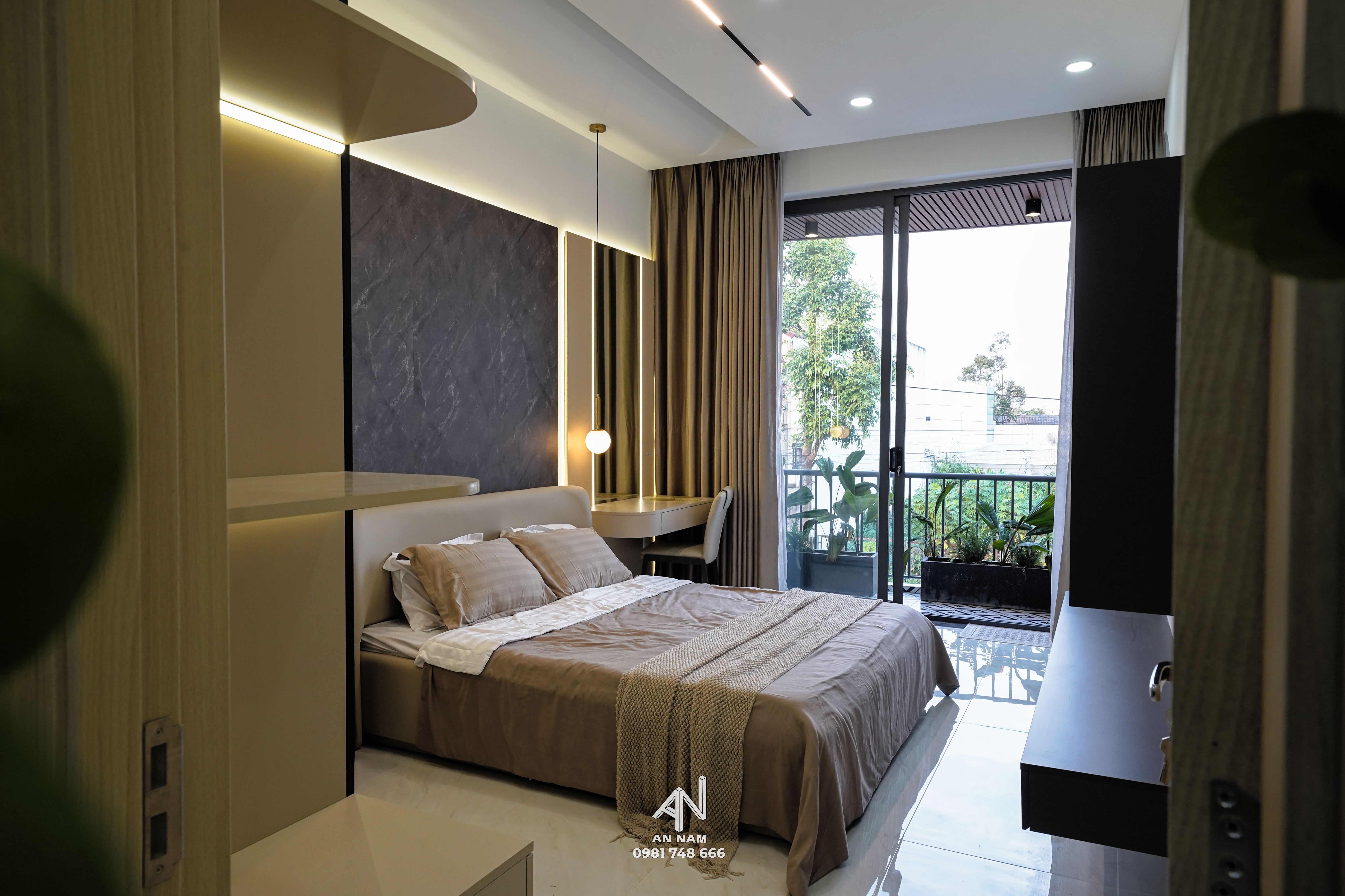 Ngôi nhà 1 trệt 1 lầu ấn tượng với kiến trúc vuông vắn, khoẻ khoắn, hình khối rõ ràng kết hợp cùng tone màu trắng xám thanh lịch.