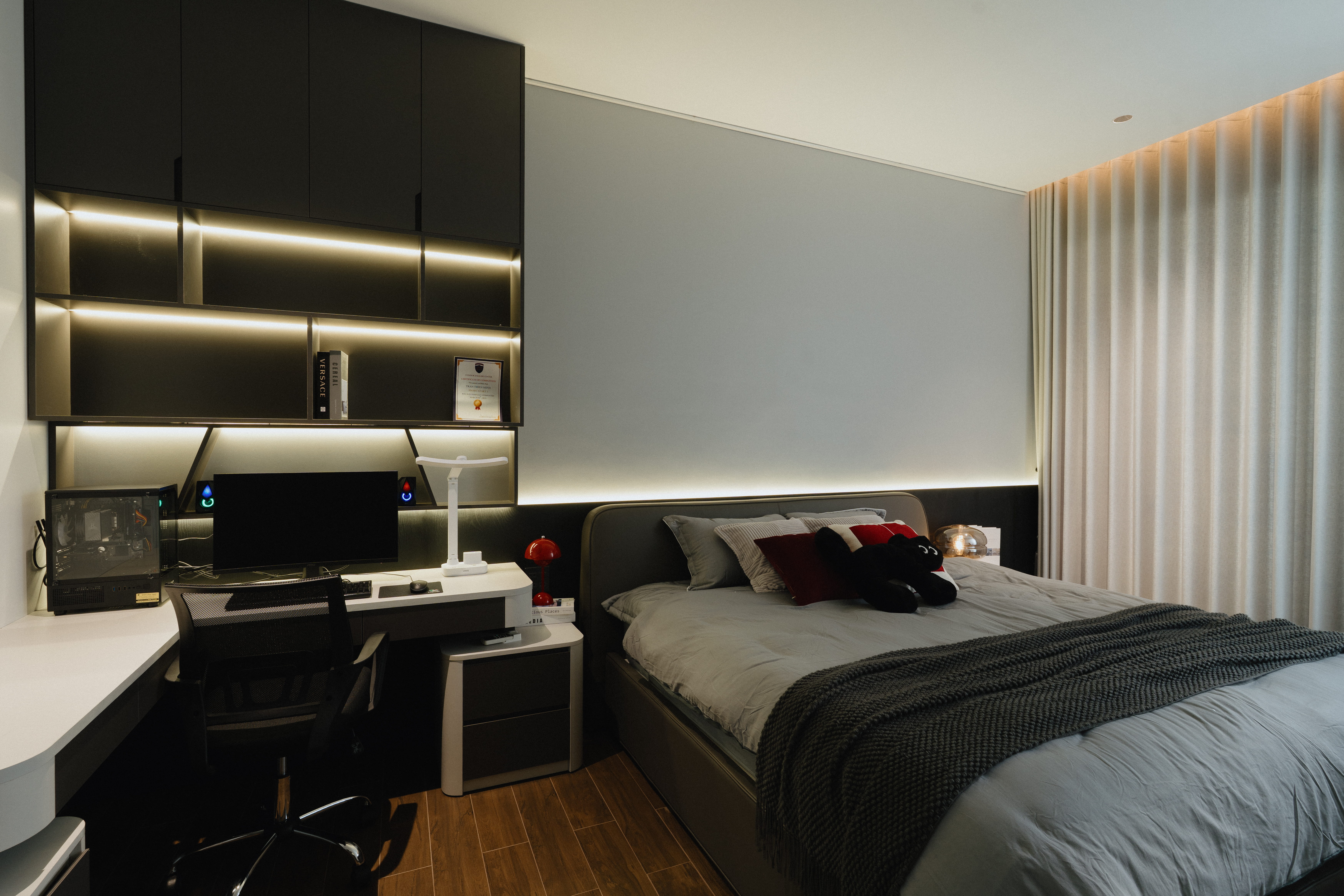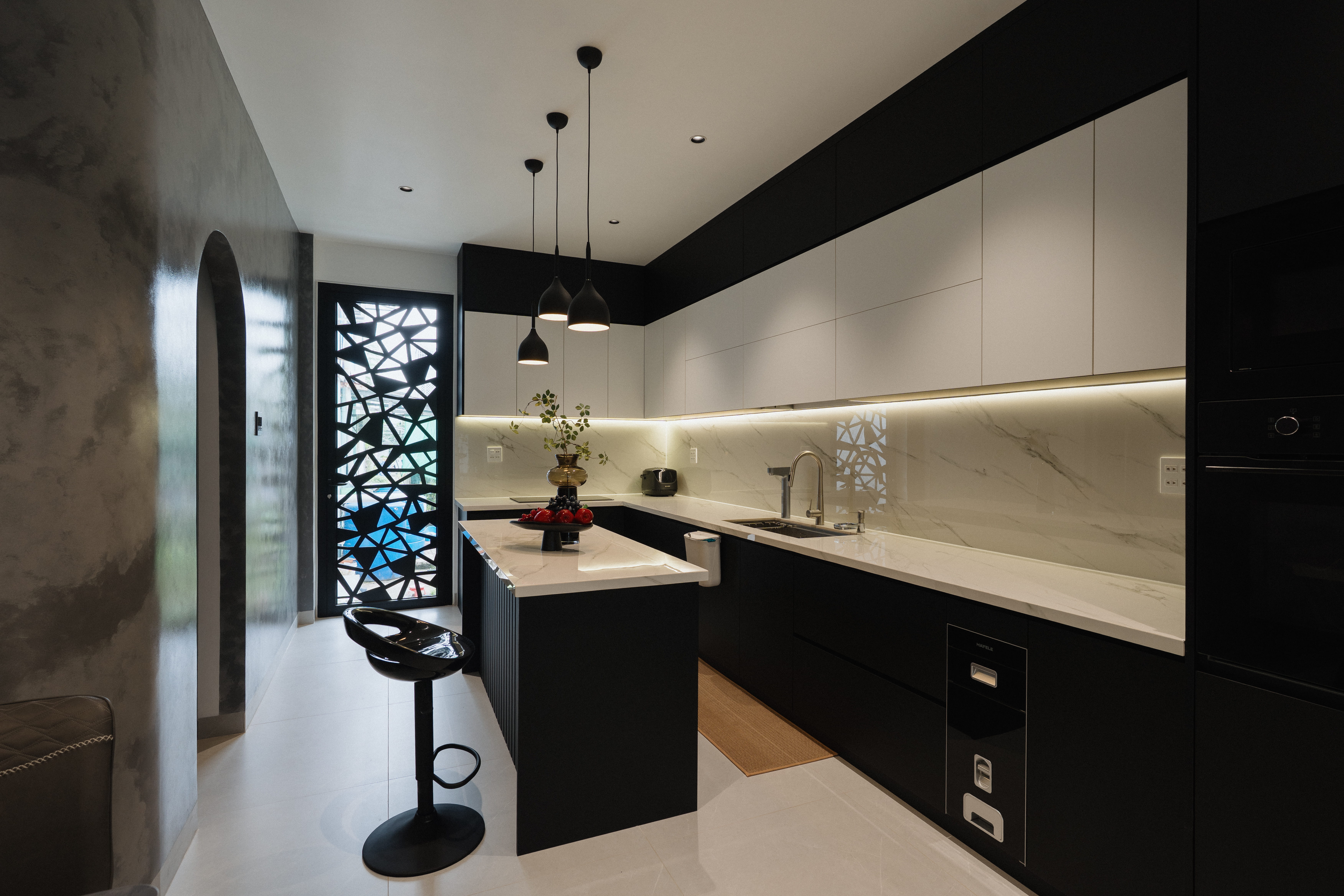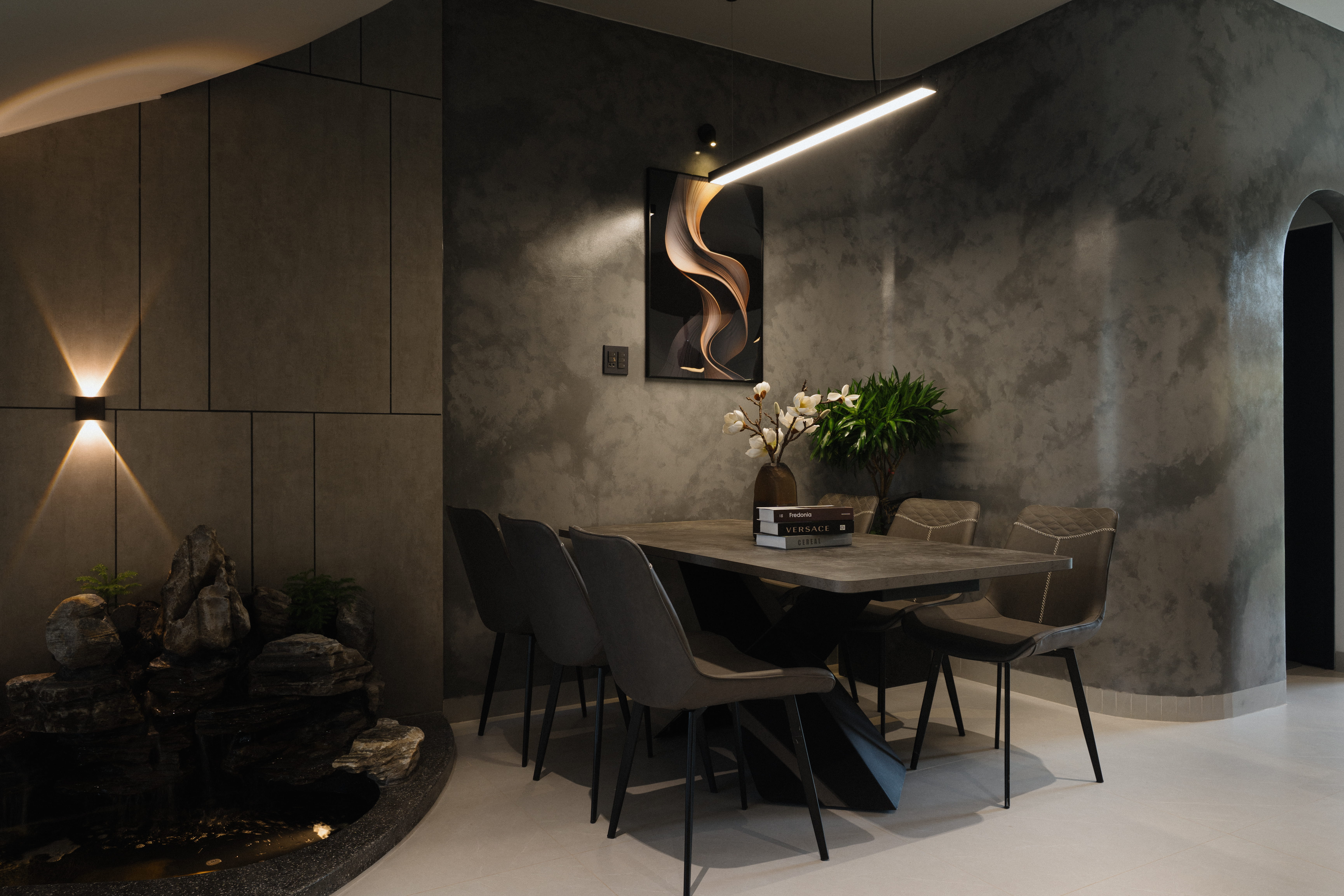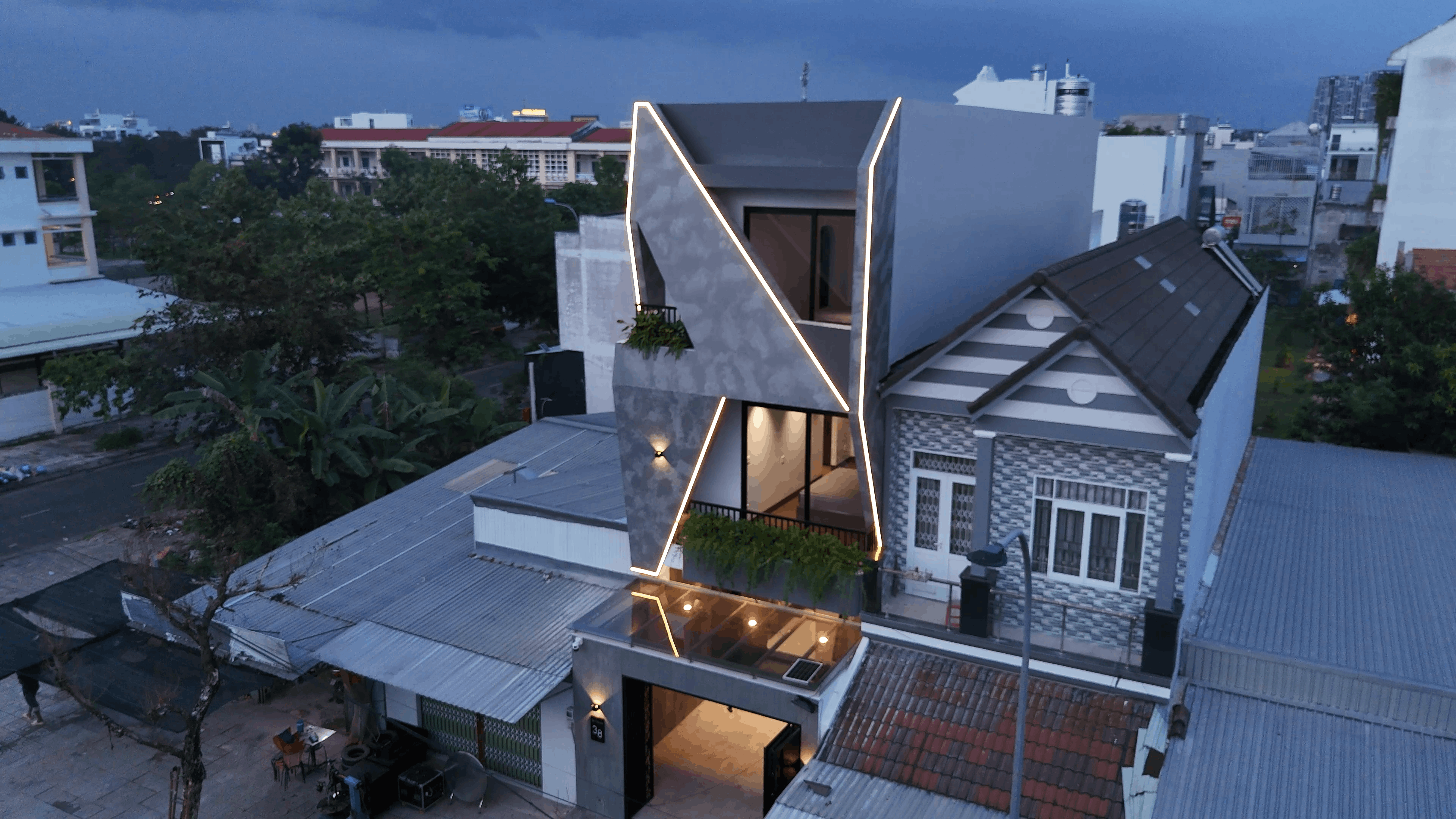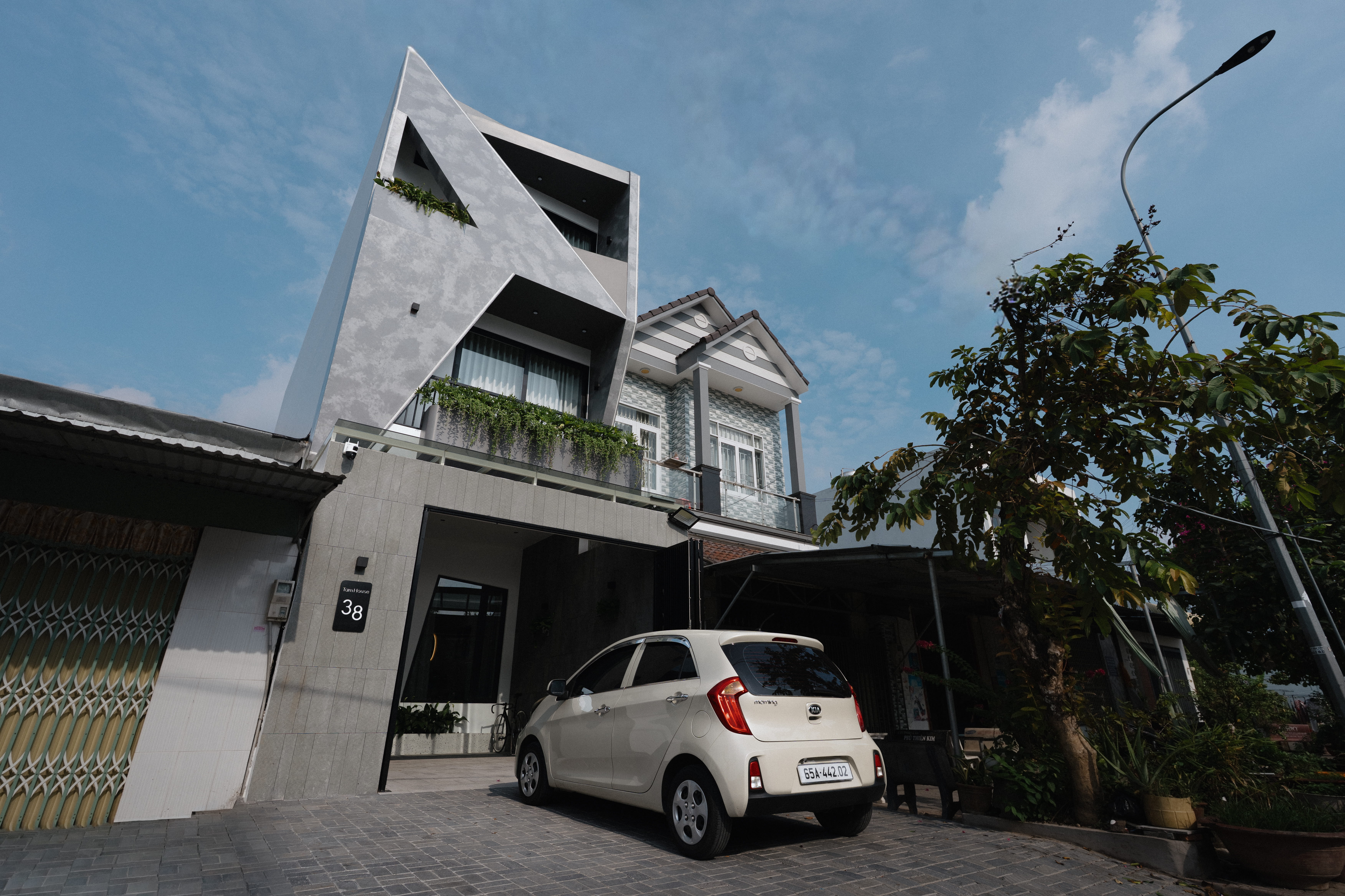 Ngôi nhà gây ấn tượng mạnh với mặt tiền sơn hiệu ứng xi măng và những đường cắt táo bạo.