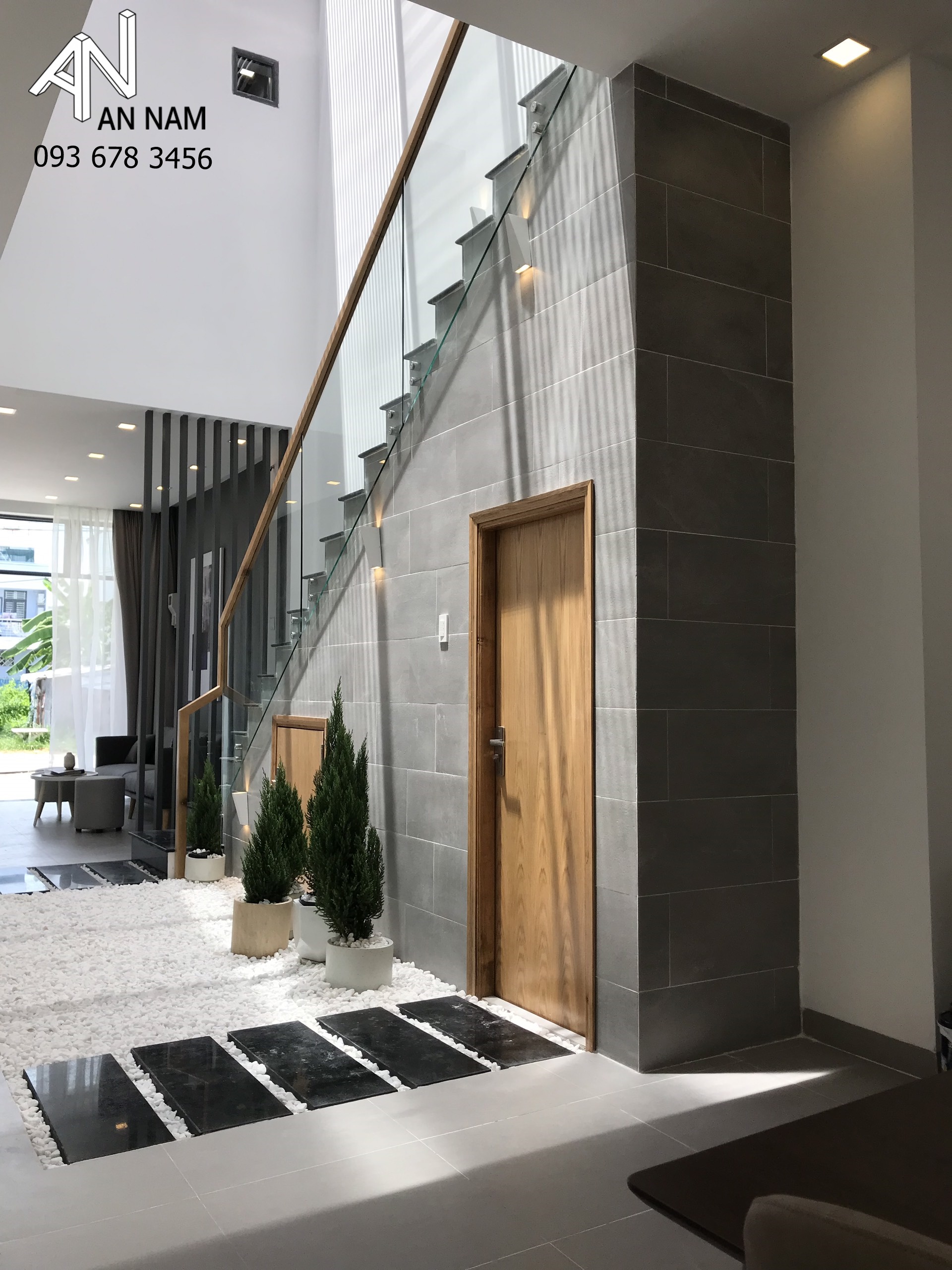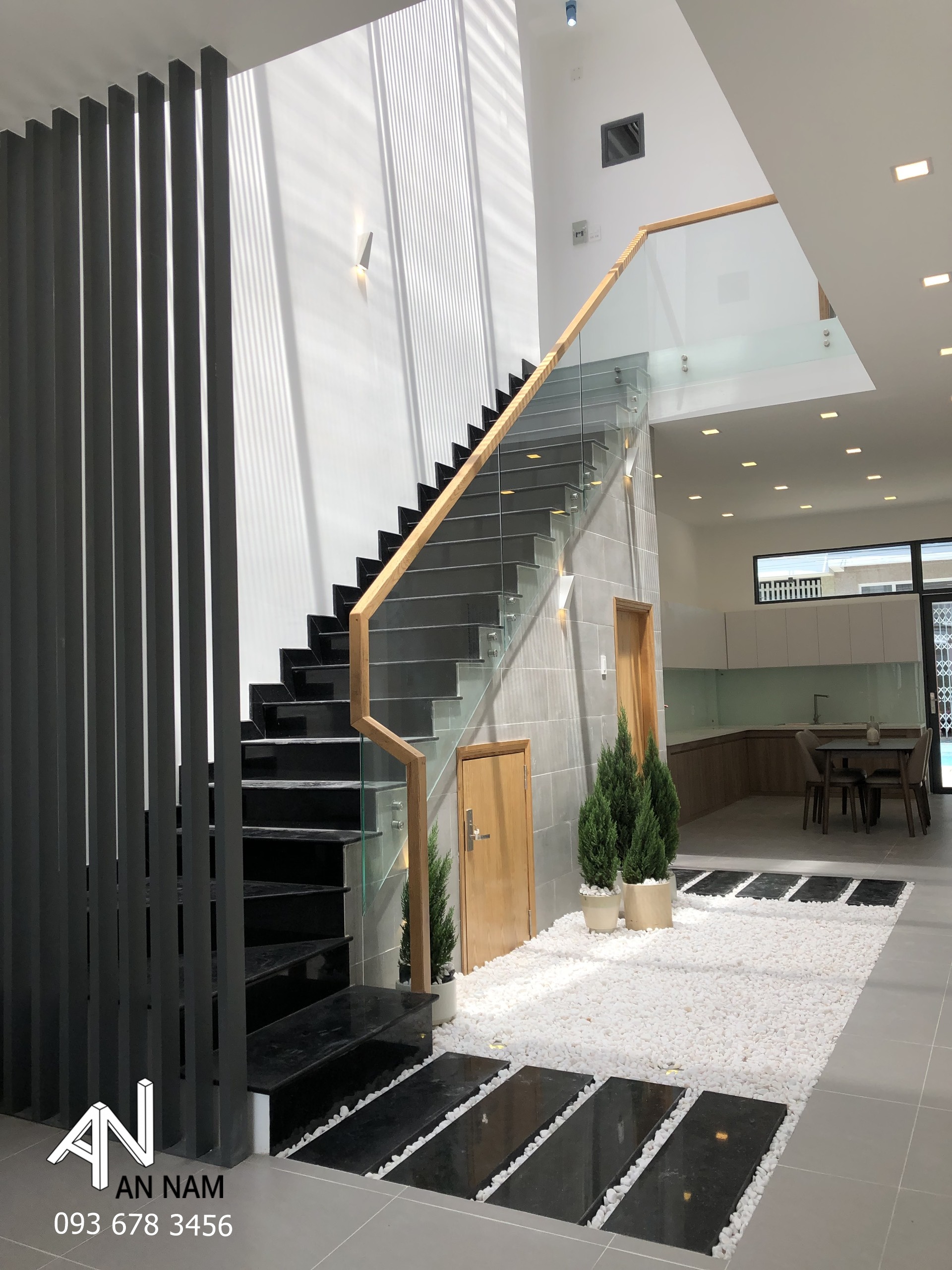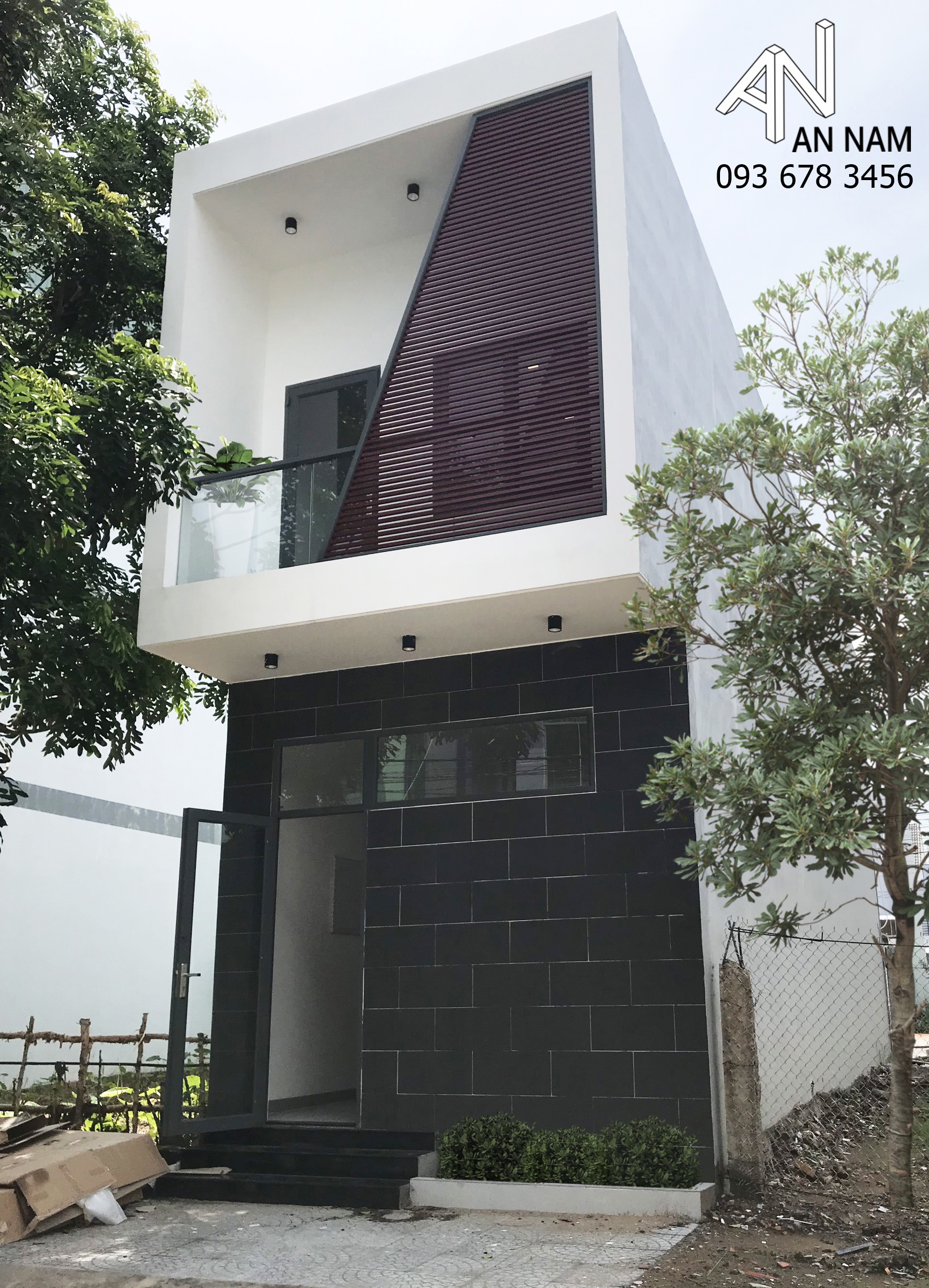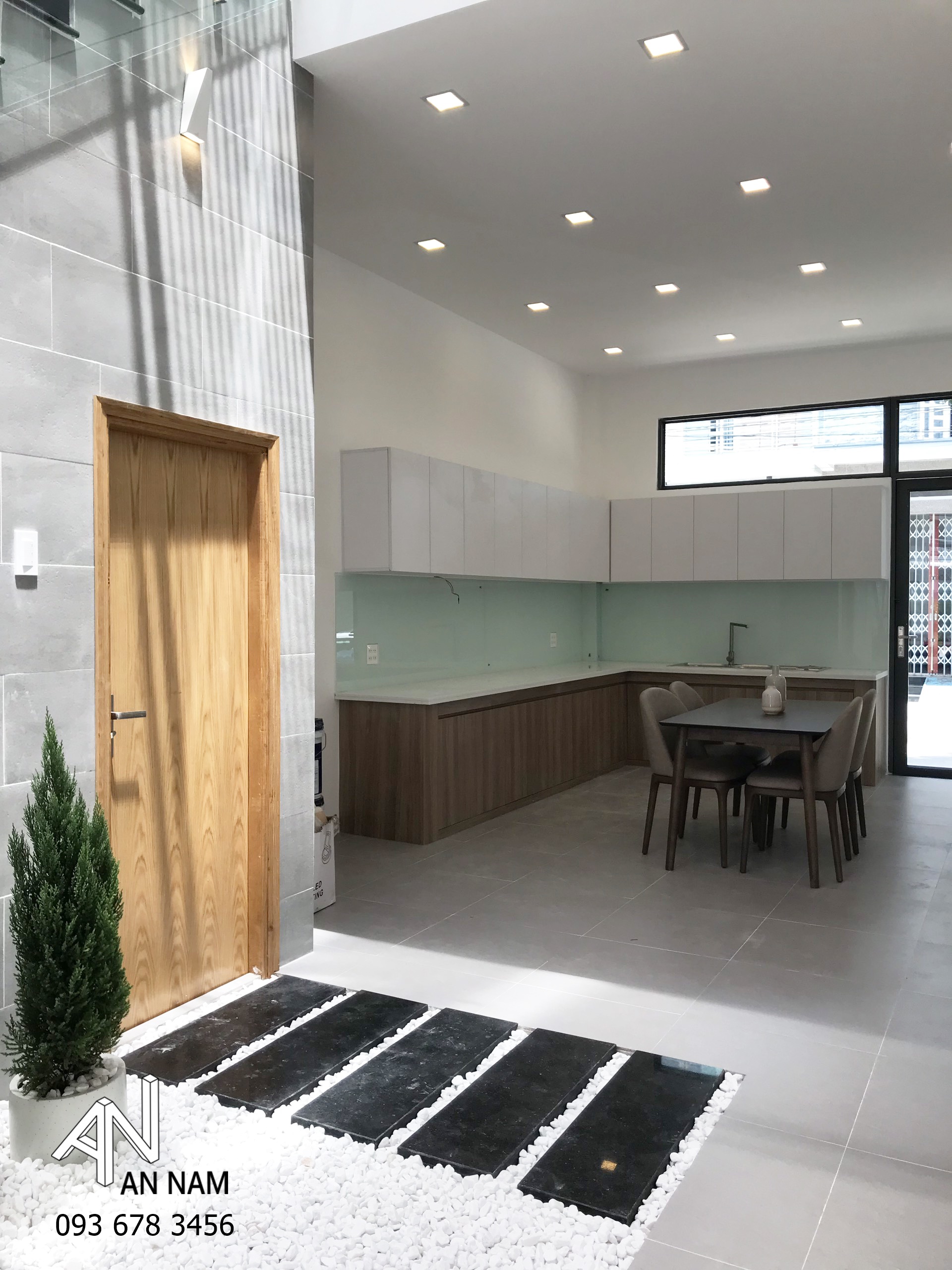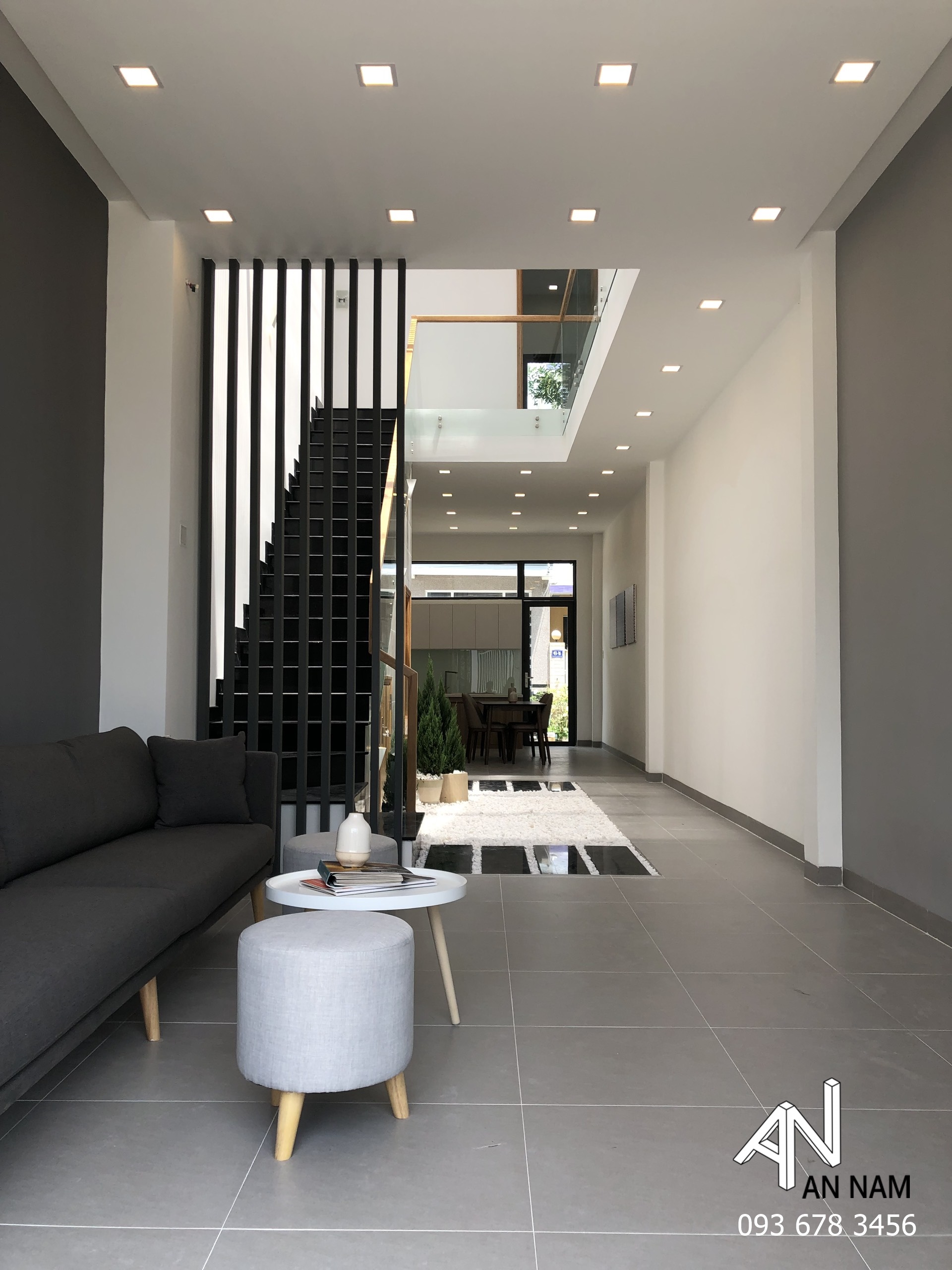 Hình khối vuông vắn, góc cạnh là điểm chung có thể bắt gặp ở những công trình kiến trúc nhà phố hiện đại. Mẫu nhà sau đây nhận được khá nhiều sự quan tâm từ phía khách hàng của An Nam khi được tạo hình chắc chắn phía bên ngoài, sang trọng và tinh tế. Gam màu xám trắng dưới ánh đèn hắt vàng là thủ pháp tạo nét sang trọng và sắc ấm cho kiến trúc rất hiệu quả, đã được kiến trúc sư ứng dụng vào phương án thiết kế.