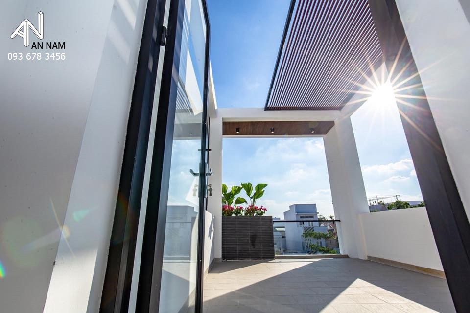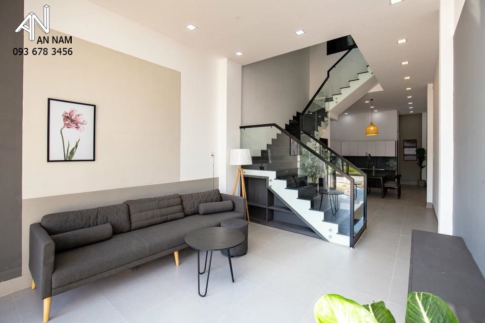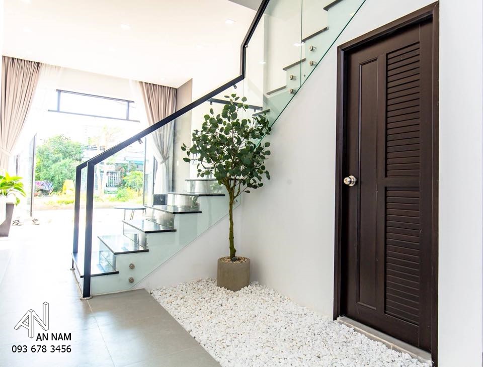 Nhà phố hiện đại với yêu cầu cao về sự thông thoáng. Giải pháp cho sự thông thoáng được sử dụng phổ biến nhất chính là thiết kế các lỗ thông tầng còn gọi là giếng trời, tận dụng khoản không gian này để trồng cây không những giúp ngôi nhà thêm xanh mát mà còn tạo ra giá trị thẩm mỹ cho ngôi nhà với lối kiến trúc thông minh và mới lạ. Sau đây là mẫu nhà An Nam thiết kế và xây dựng năm 2019 tại KDC Hưng Phú 1.