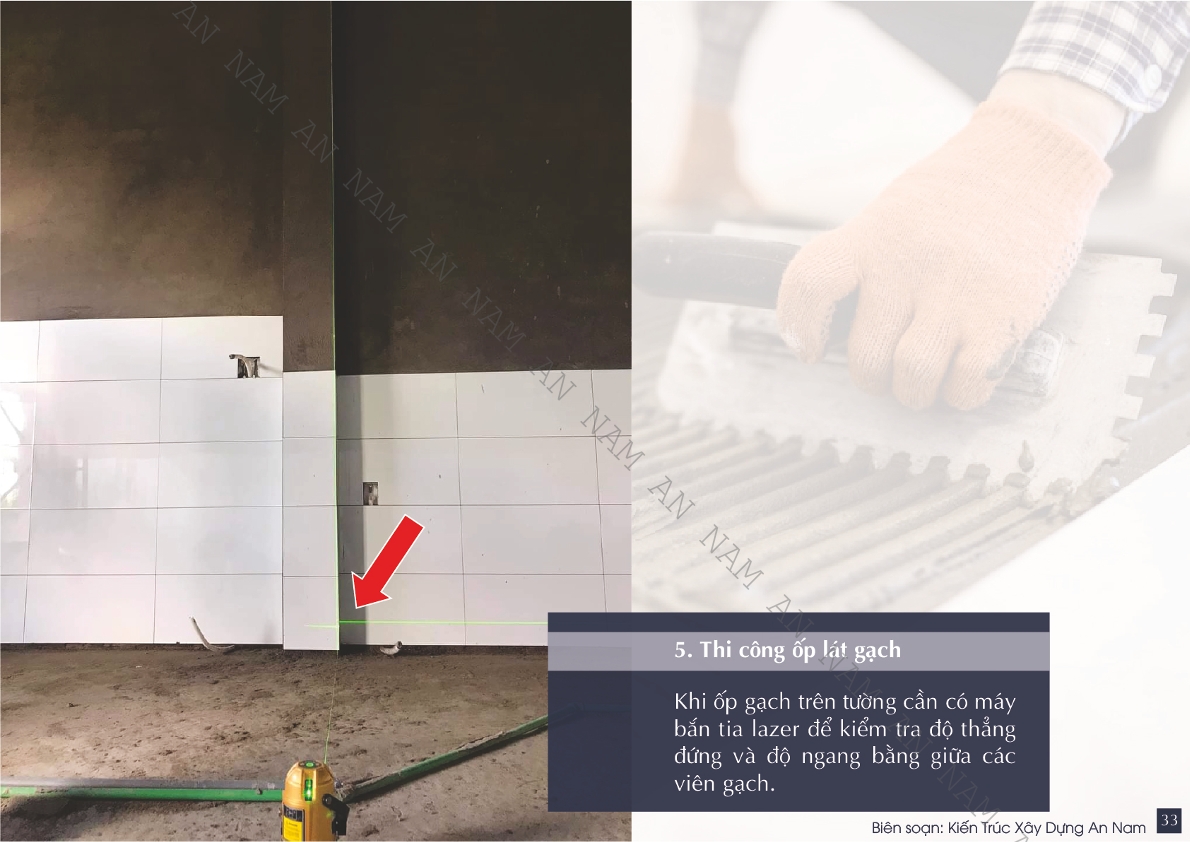 4. Ốp lát gạch cần sử dụng máy bắn tia lazer để kiểm tra độ thẳng đứng và độ ngang