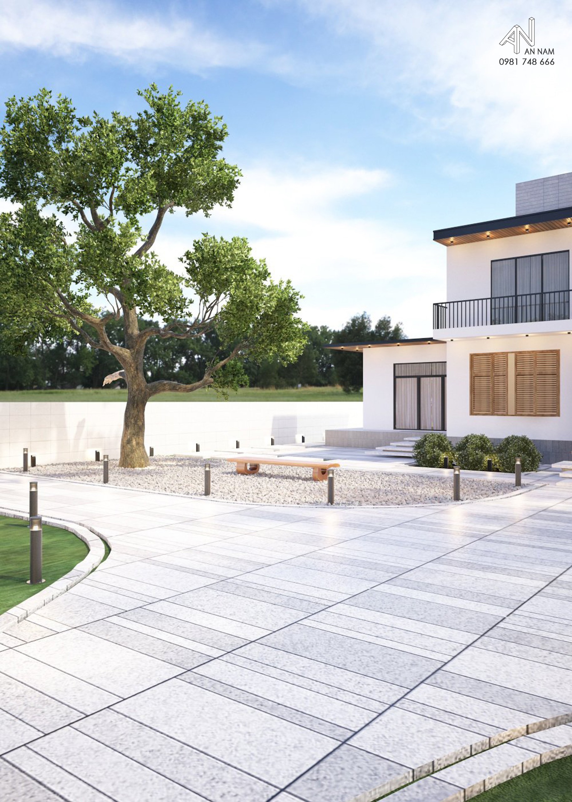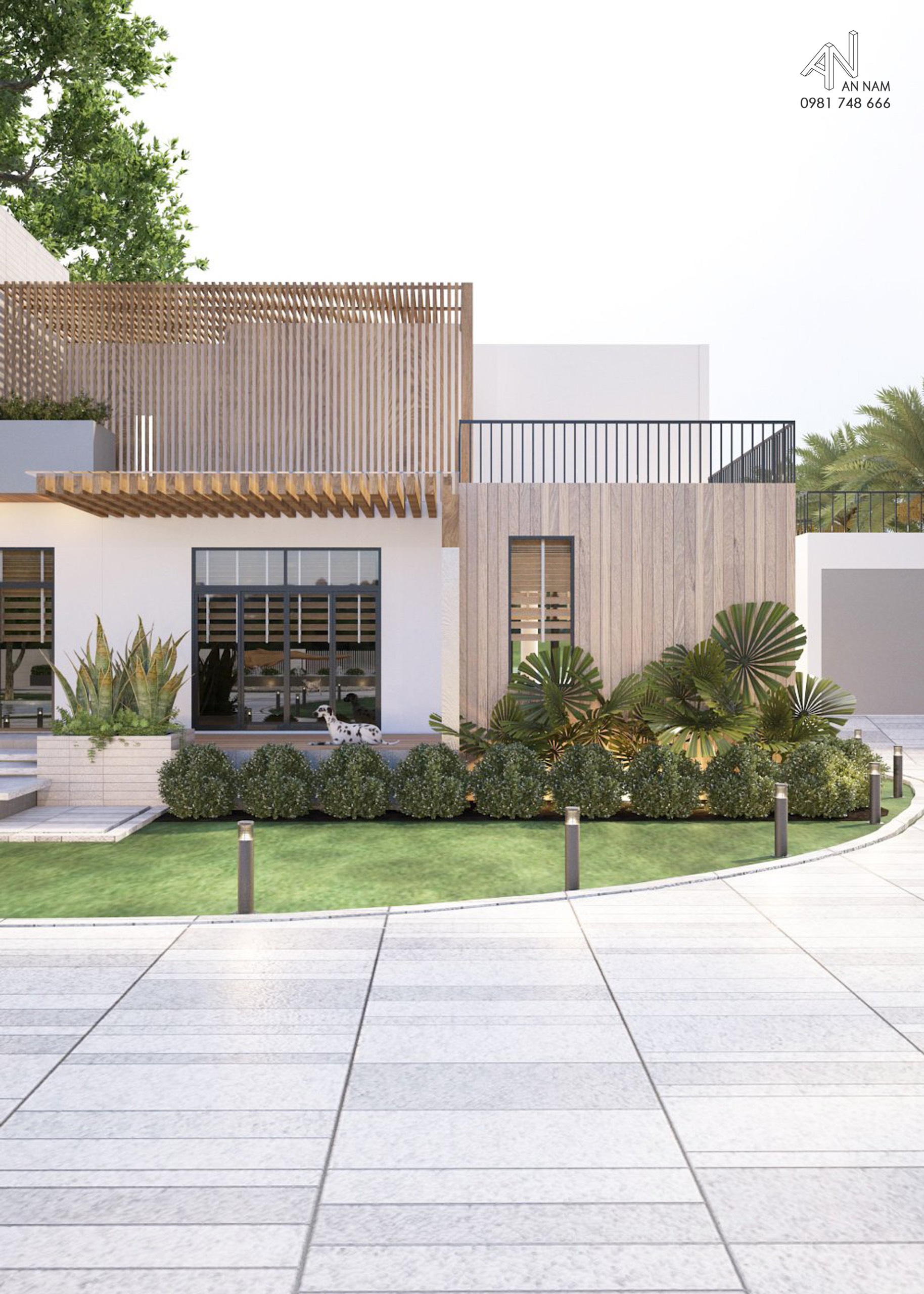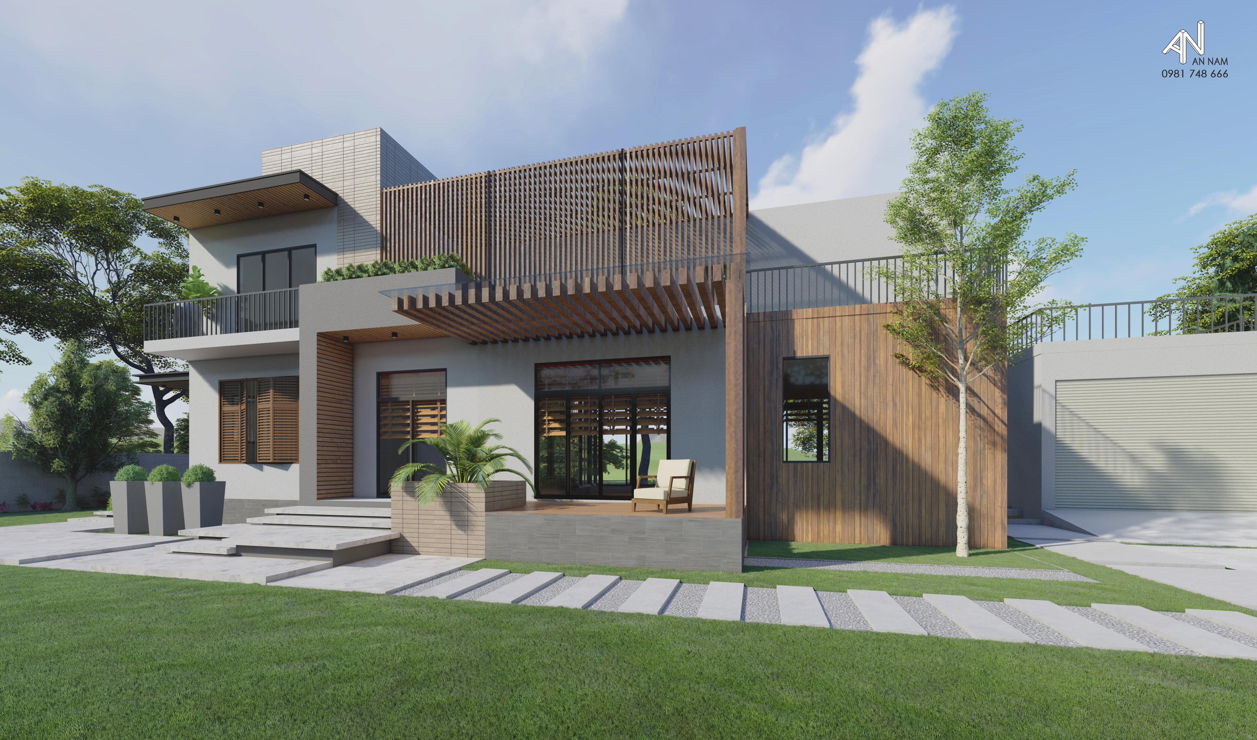 Khách hàng là một bác sĩ sống và làm việc tại Pháp, rất có gout và am hiểu kiến trúc tại nhiều quốc gia khác nhau. Bài toán KH đưa ra cho AN NAM là xây dựng 1 căn biệt thự hiện đại, sử dụng nhiều vật liệu đặc trưng của Việt Nam như gỗ, đá tự nhiên… không gian bố trí sao cho mang lại sự thoải mái cho từng thành viên trong gia đình.