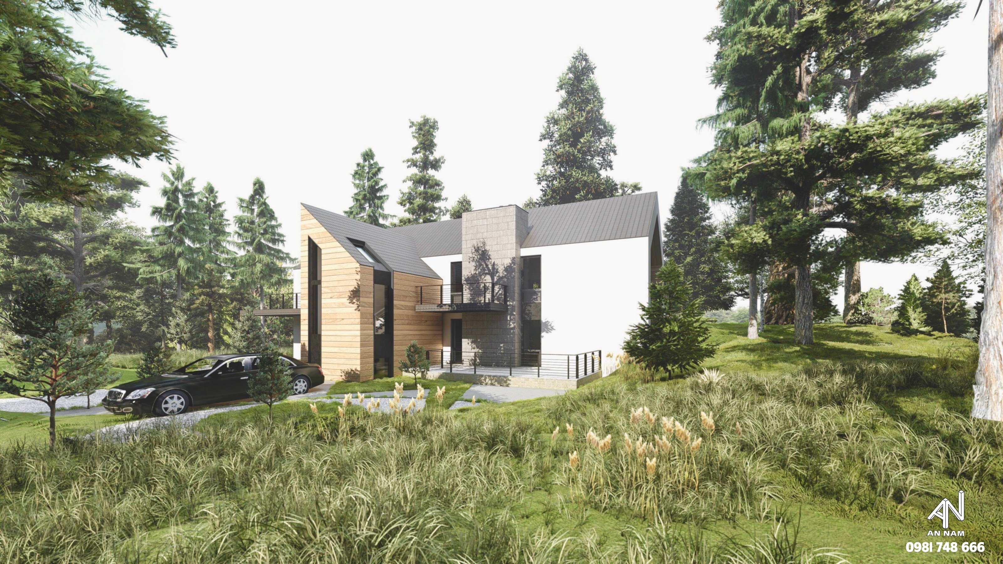 Biệt thự nằm trên khu vực Măng Đen - Kon Tum - đang là địa điểm du lịch hot. Biệt thự có diện tích lớn mang phong cách hiện đại, với vật liệu gỗ làm chủ đạo.