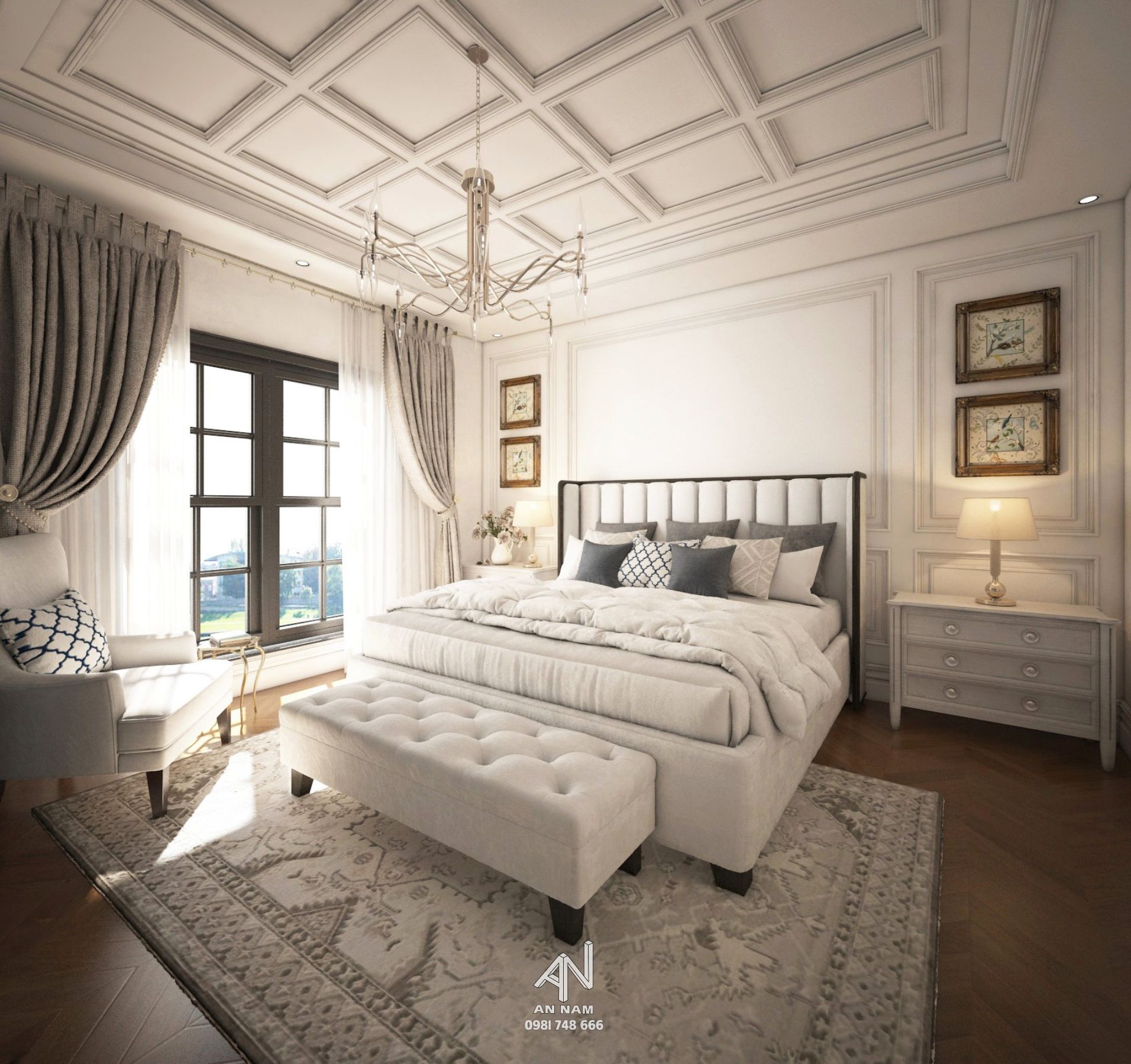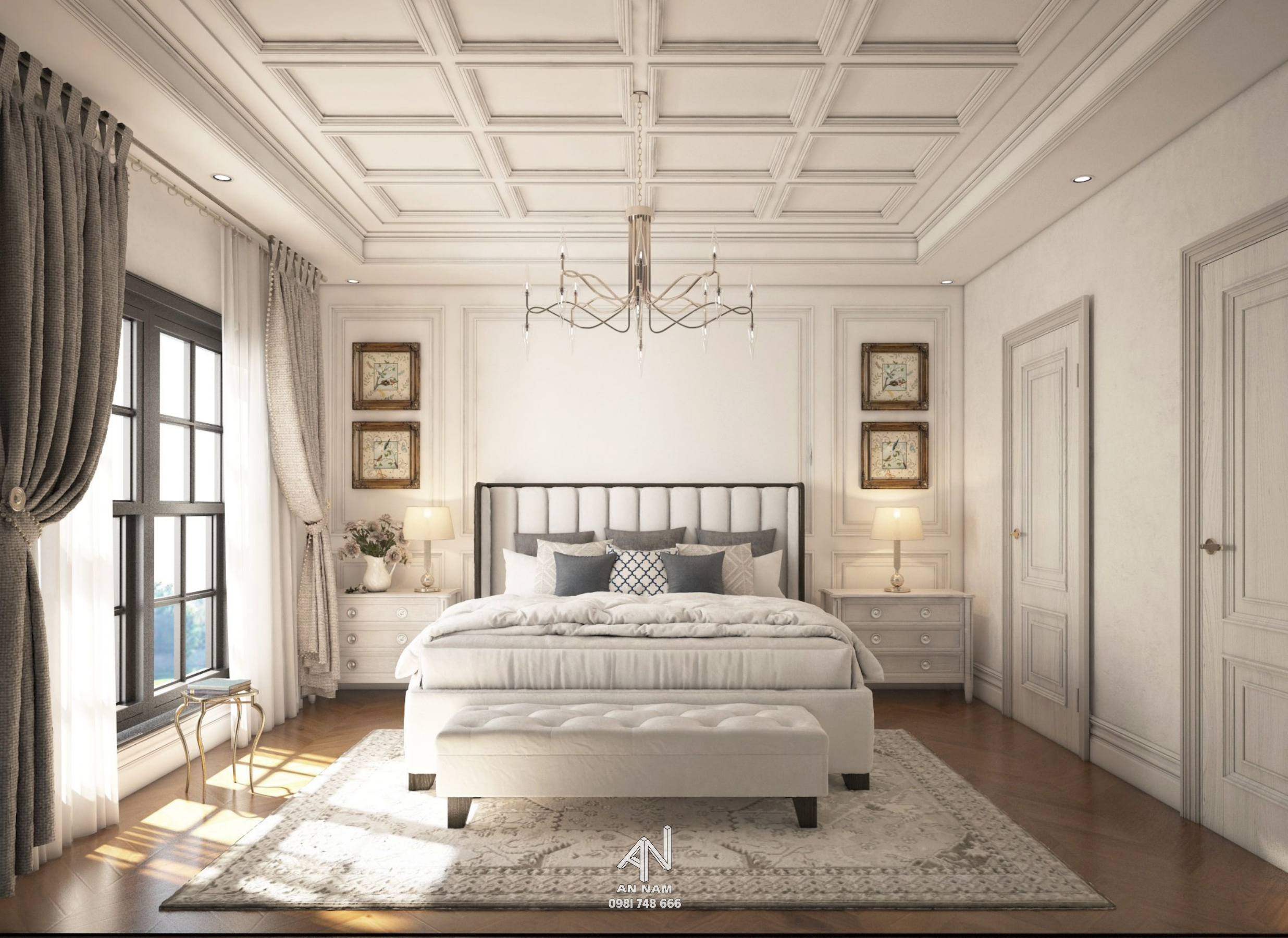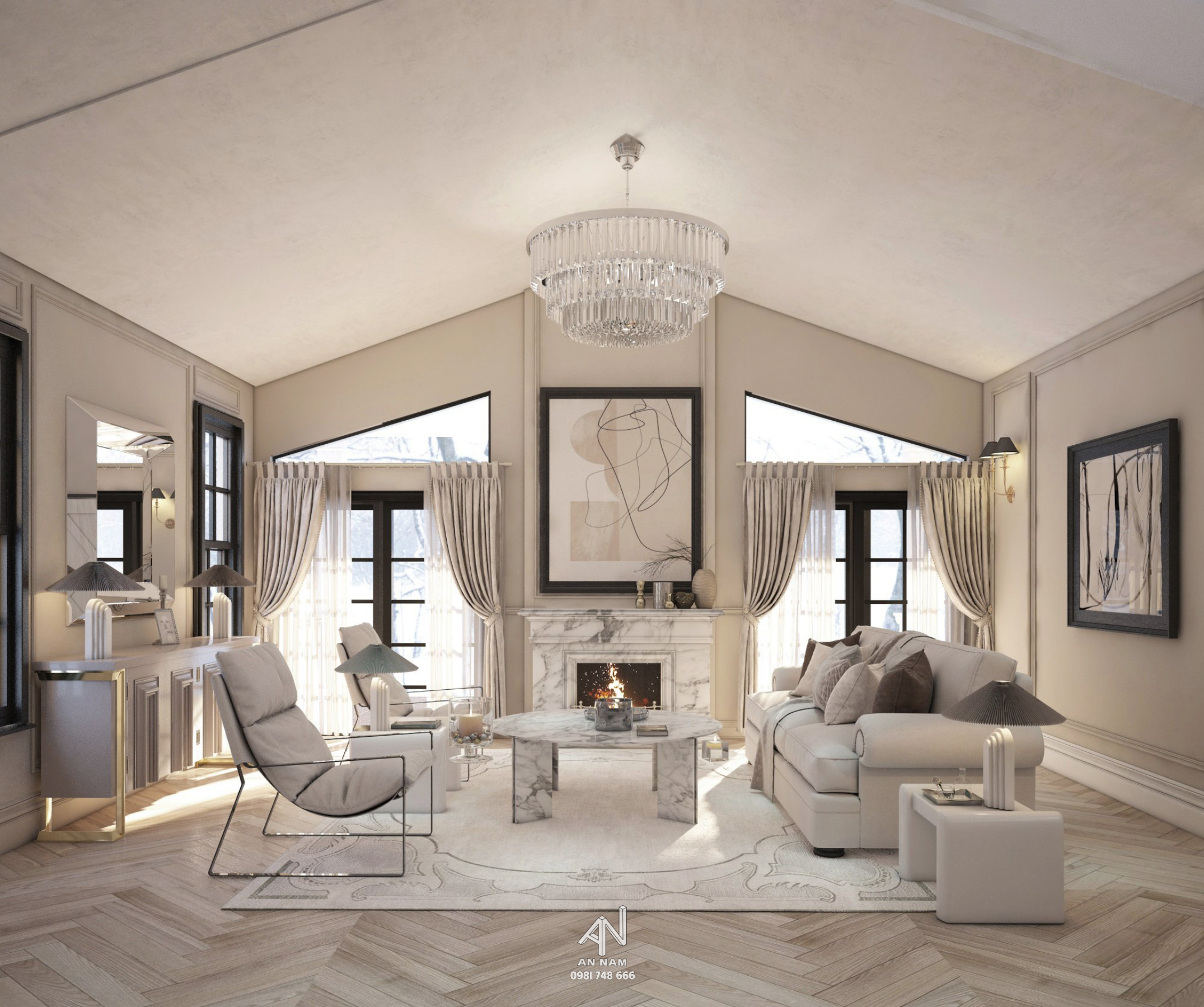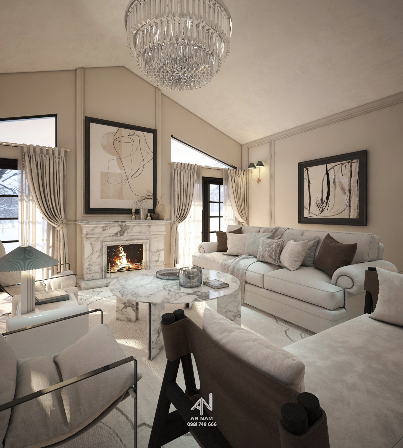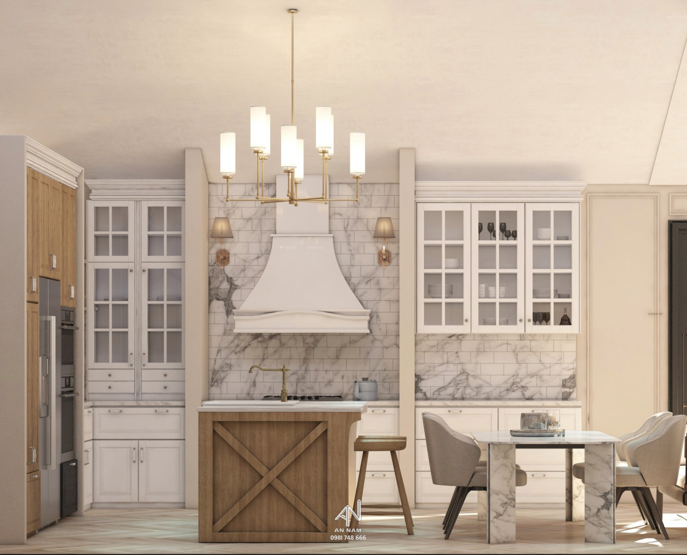 Một căn villa gam màu trắng chủ đạo trên chất liệu cổ điển phảng phất một chút farmhouse, tạo nên diện mạo mới vừa thanh lịch vượt thời gian, vừa đan xen đôi nét hoài niệm xưa cũ.