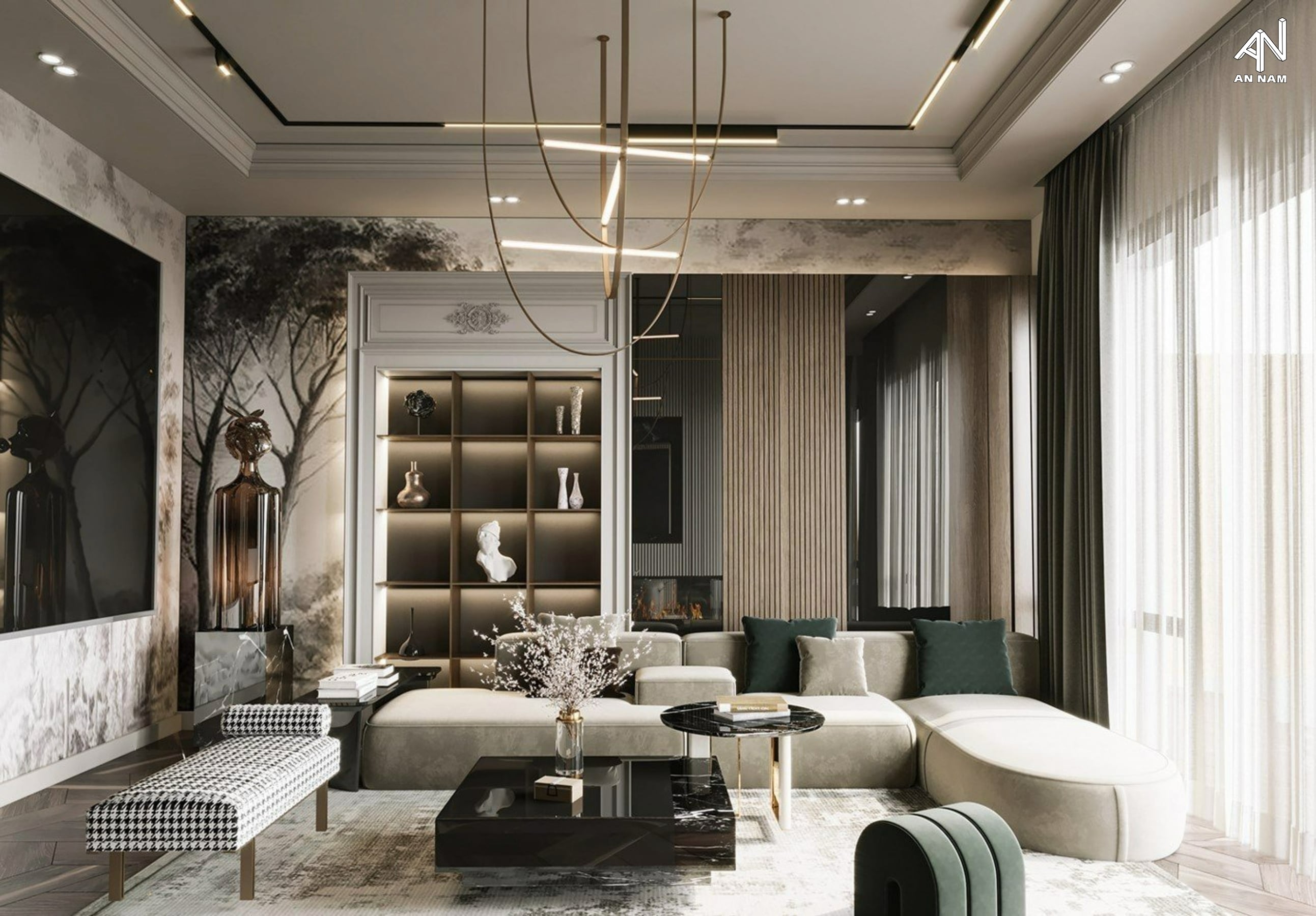 Phong hiện đại được đặc trưng bởi sự tối giản và sự tinh tế trong thiết kế, sự tập trung vào các đường thẳng, các hình học cơ bản và sự sáng tạo trong việc sử dụng ánh sáng, không gian và vật liệu.
