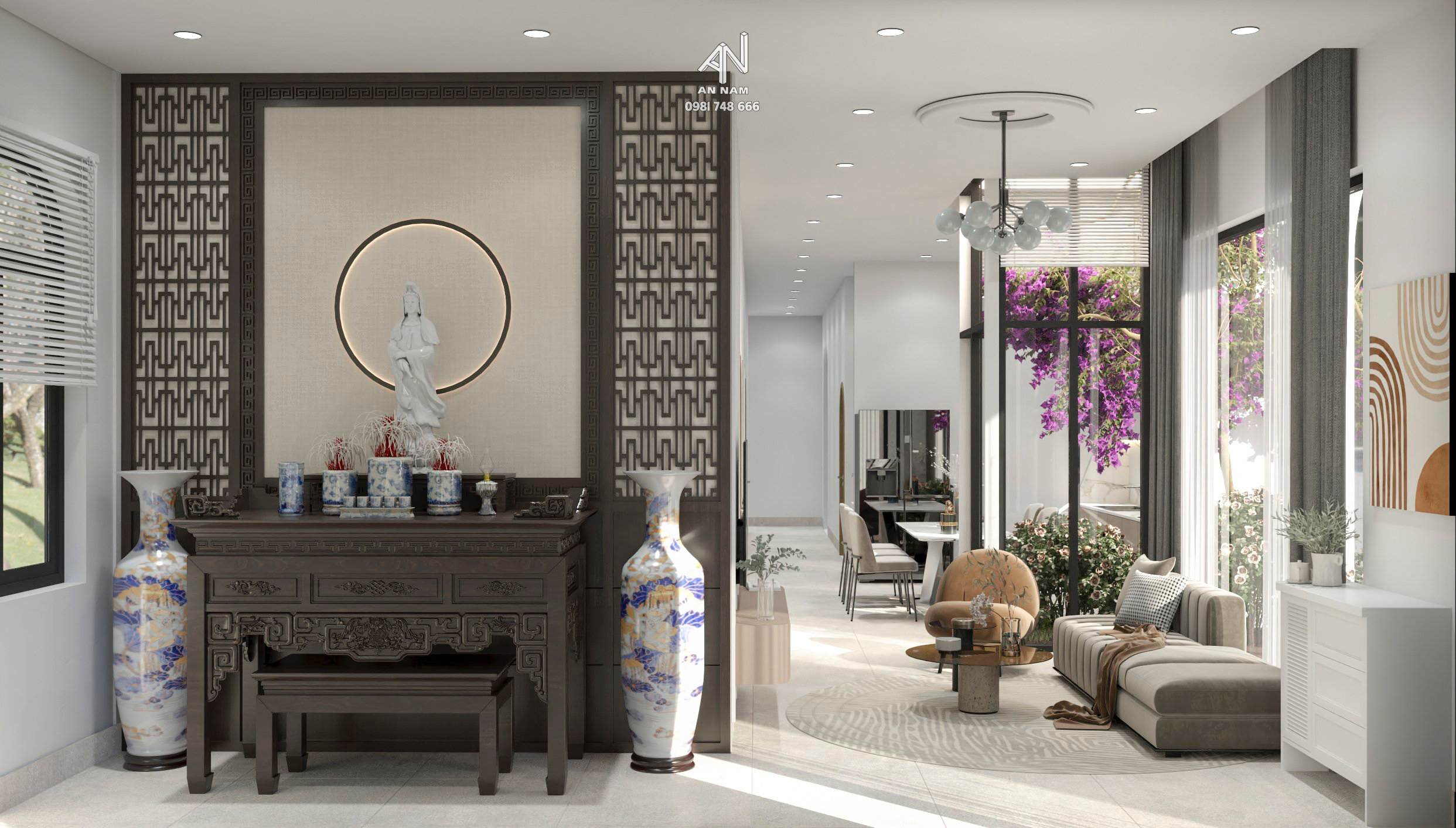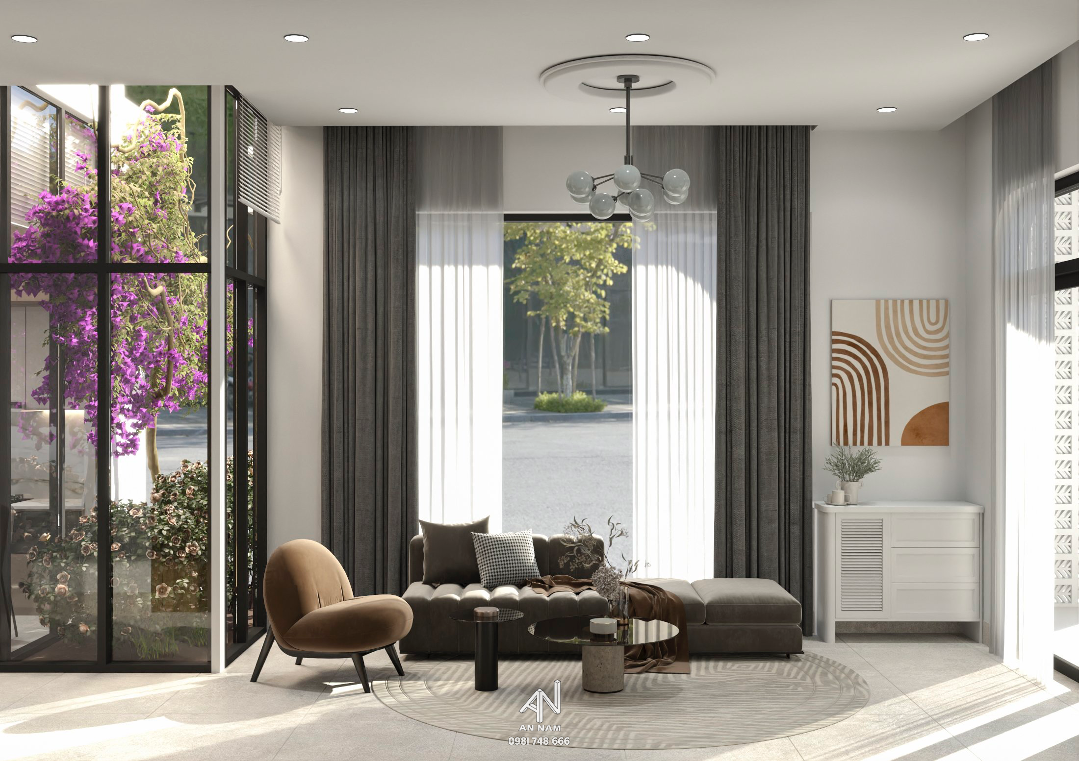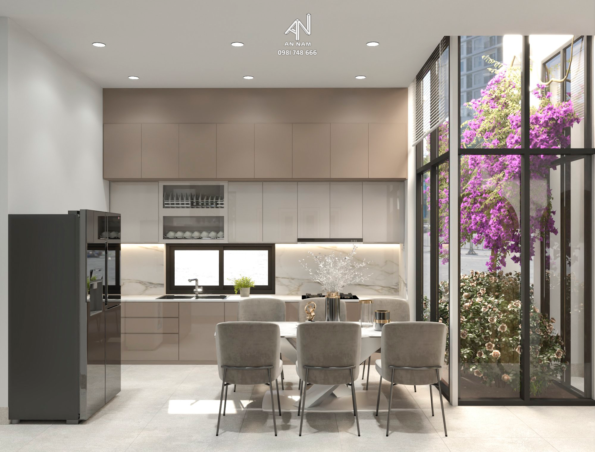 Với hai giếng trời được thiết kế khéo léo, không chỉ mang lại ánh sáng tự nhiên cho ngôi nhà mà còn tạo điều kiện lý tưởng cho việc trồng cây xanh mát. Các cửa sổ và vách kính được bố trí một cách thông minh để tối đa hóa việc lấy ánh sáng, tạo ra một môi trường sống thoáng đãng.