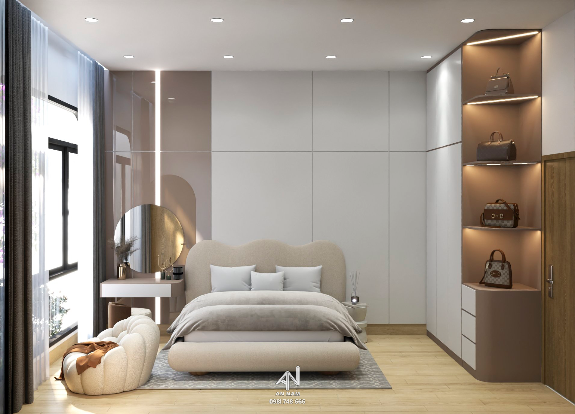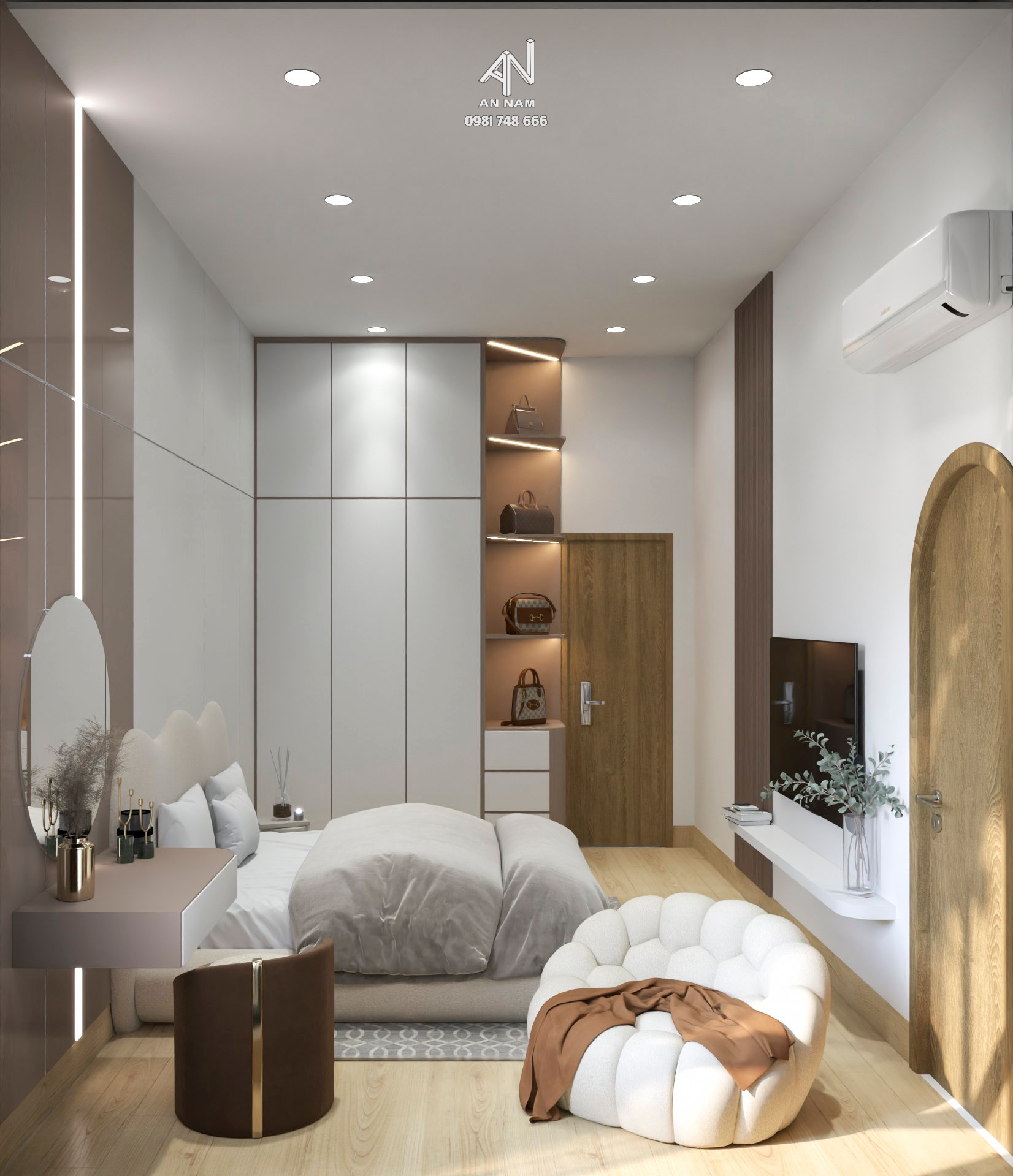 Nội thất của H’s House là sự kết hợp giữa hai tông màu là trắng và nâu, tạo ra một không gian ấm áp và sang trọng. Màu xám được sử dụng như là điểm nhấn, tạo nên sự cân bằng và sự độc đáo cho không gian.