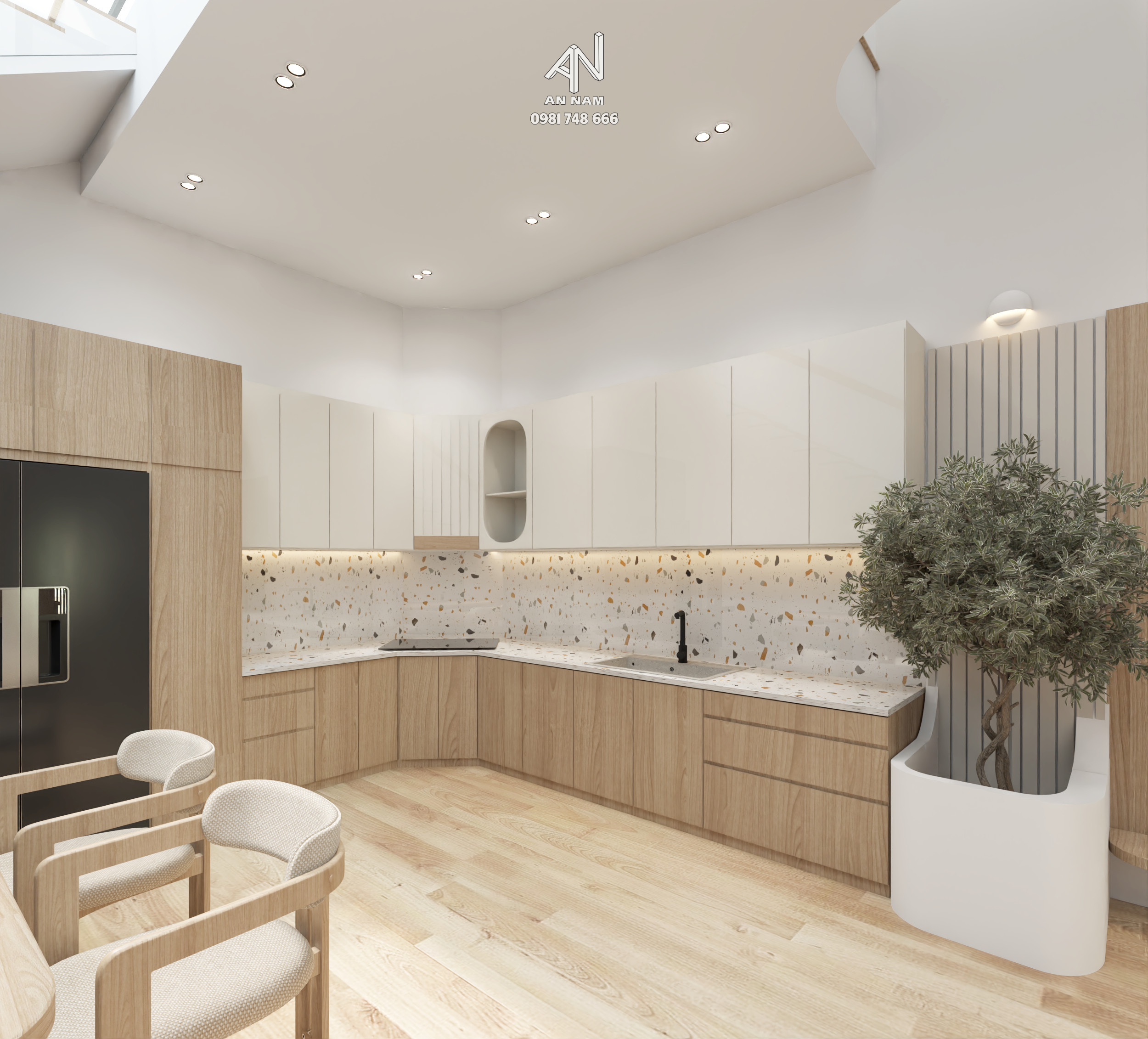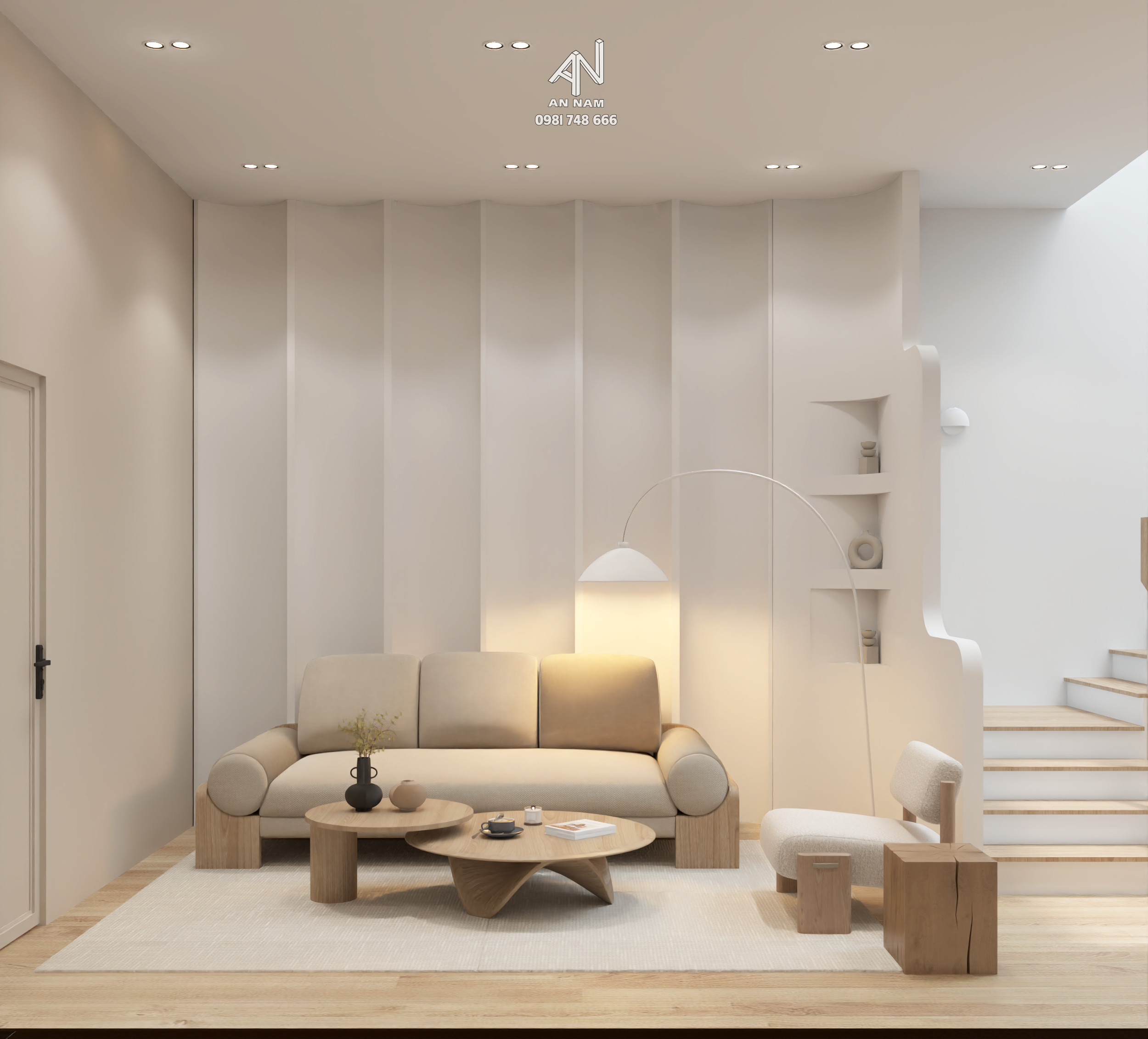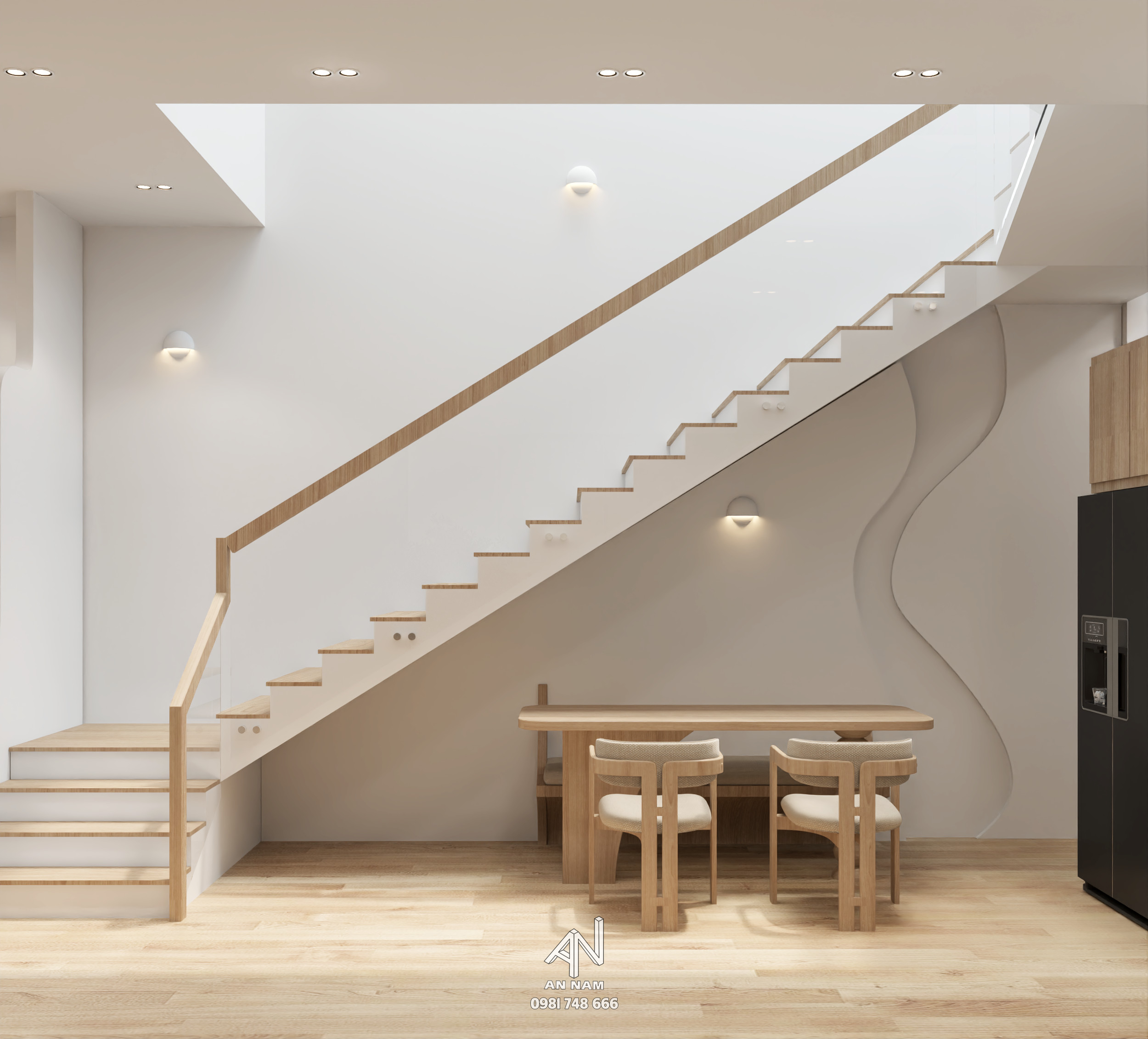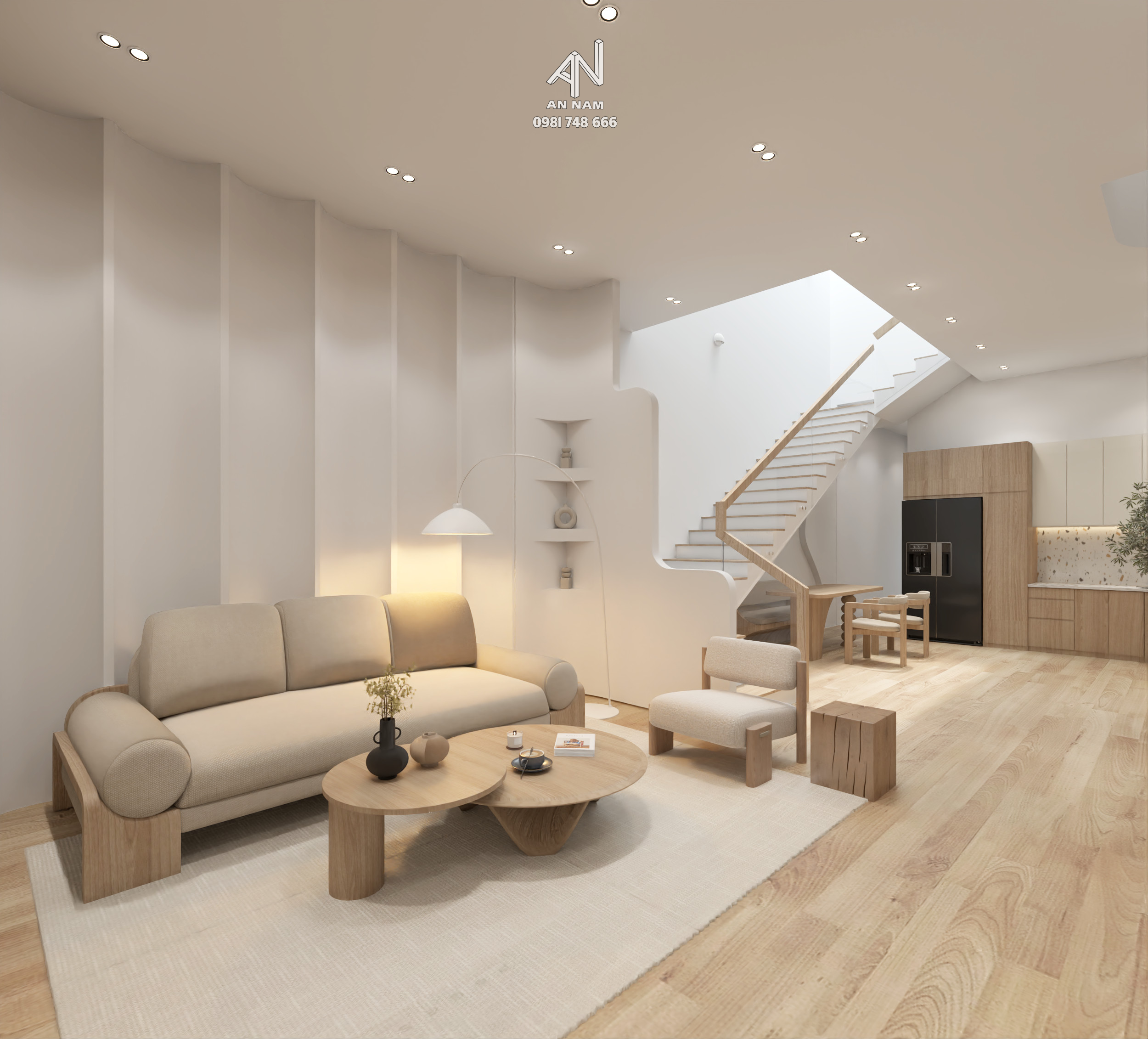 Không gian nội thất bên trong ấm áp được bao trùm bởi gam màu gỗ chủ đạo. Phong cách tối giản trong nội thất góp phần tôn lên vẻ đẹp thanh lịch và tinh tế của ngôi nhà.