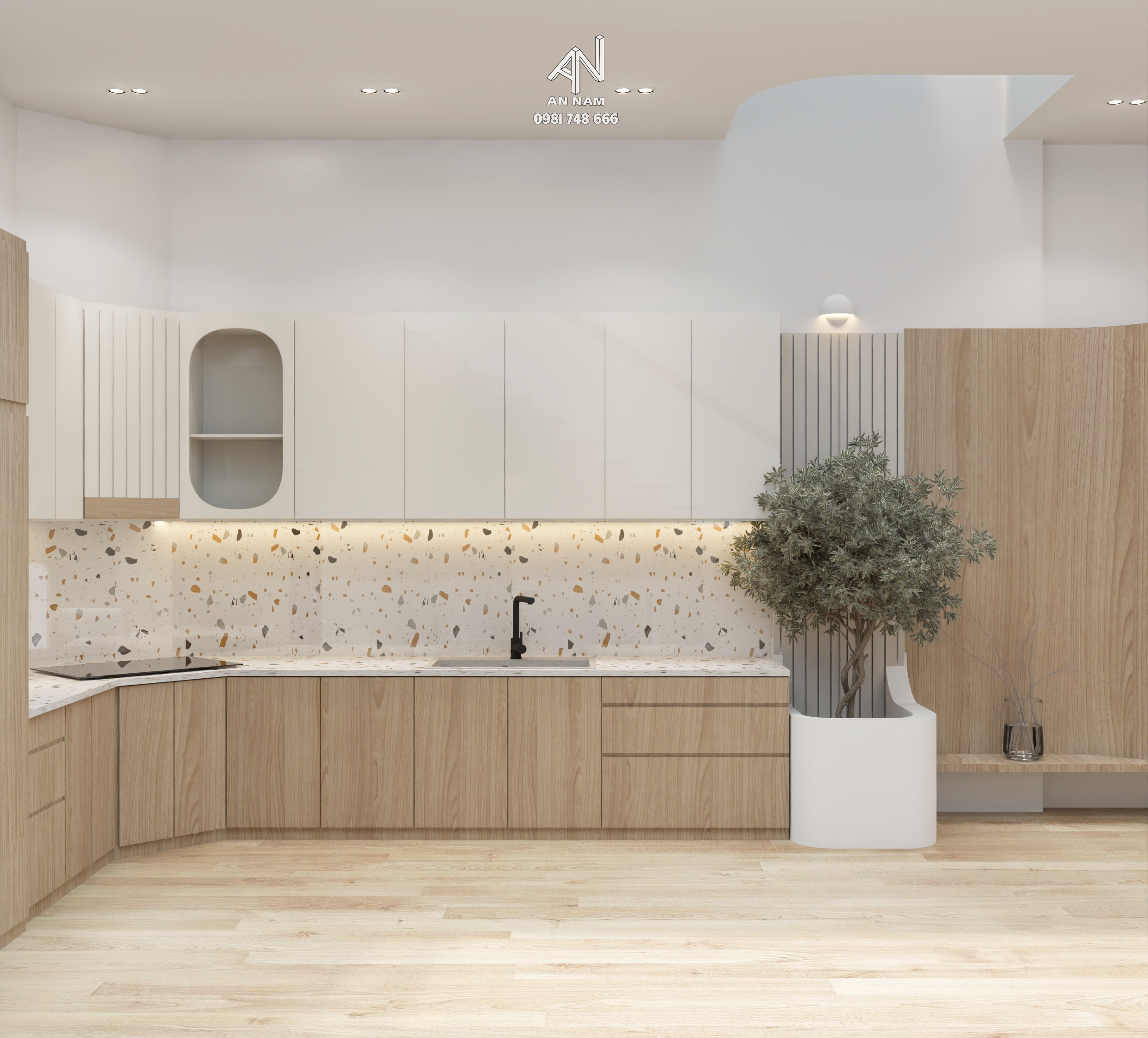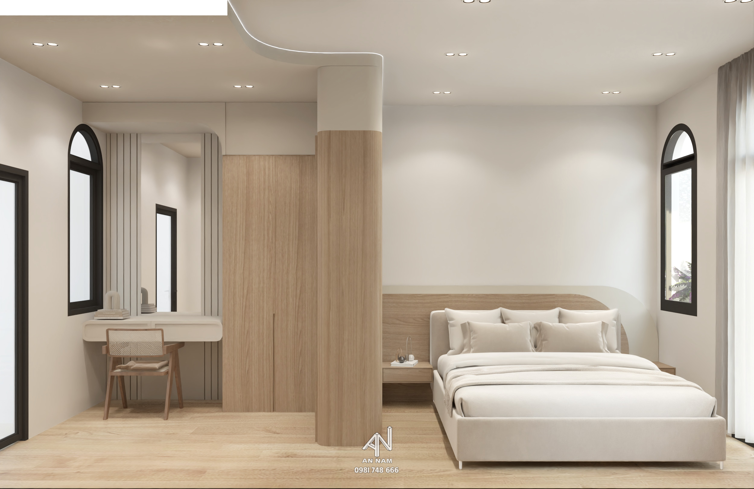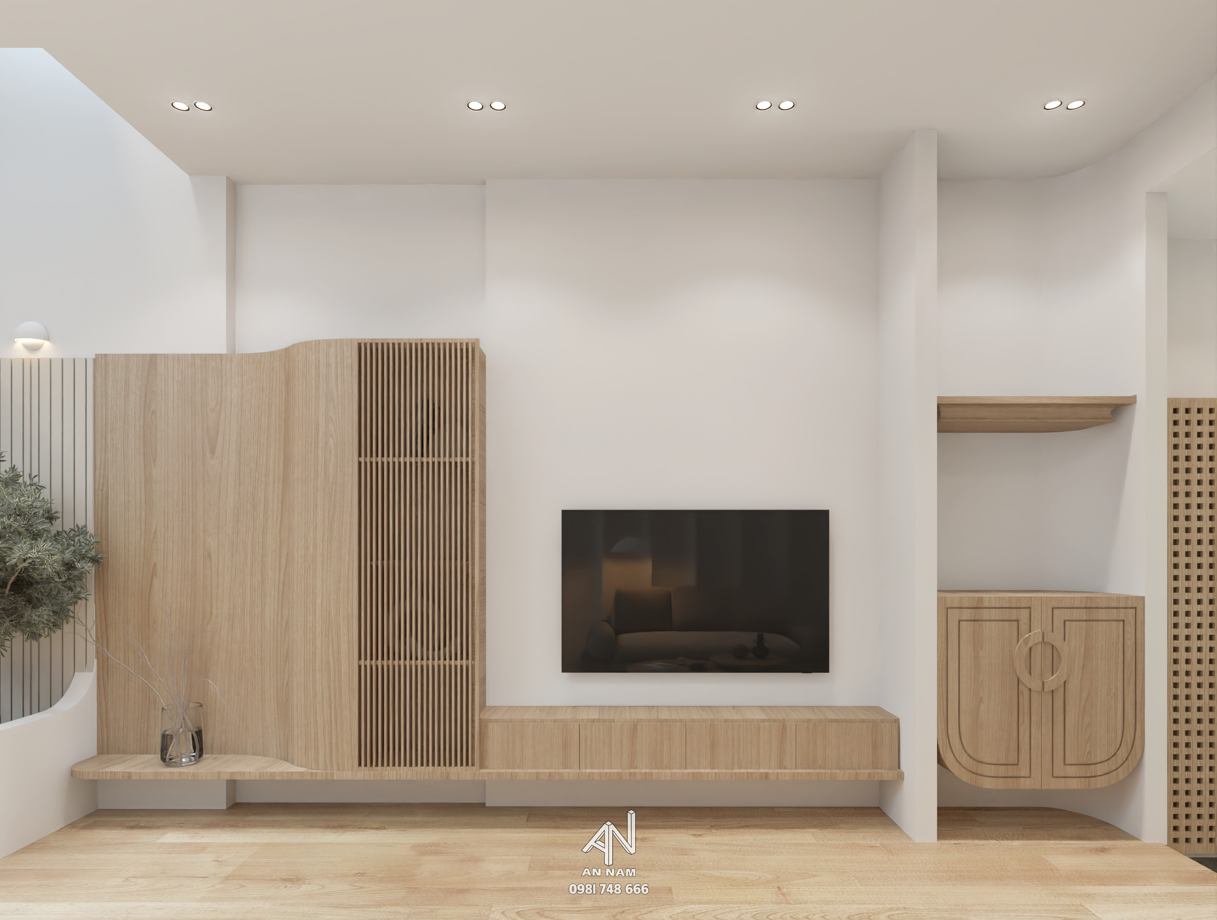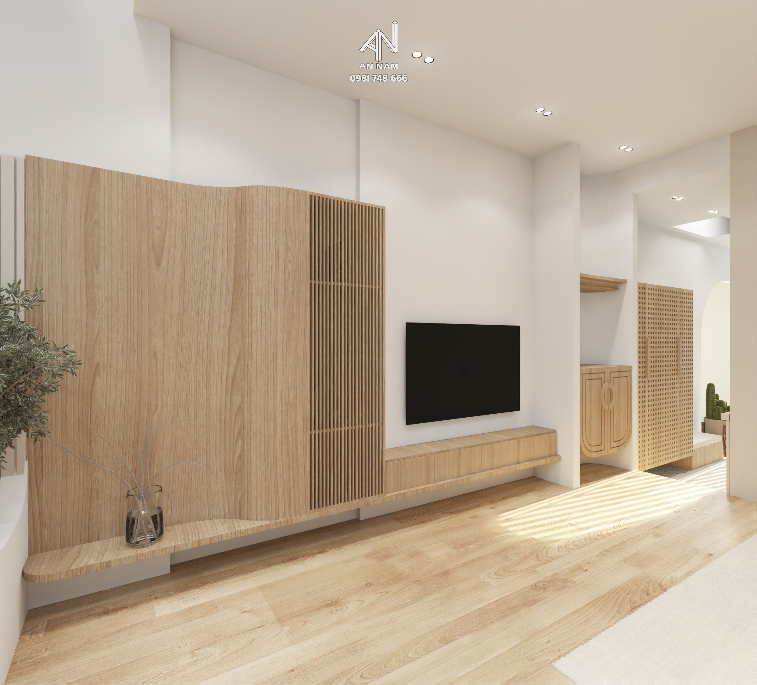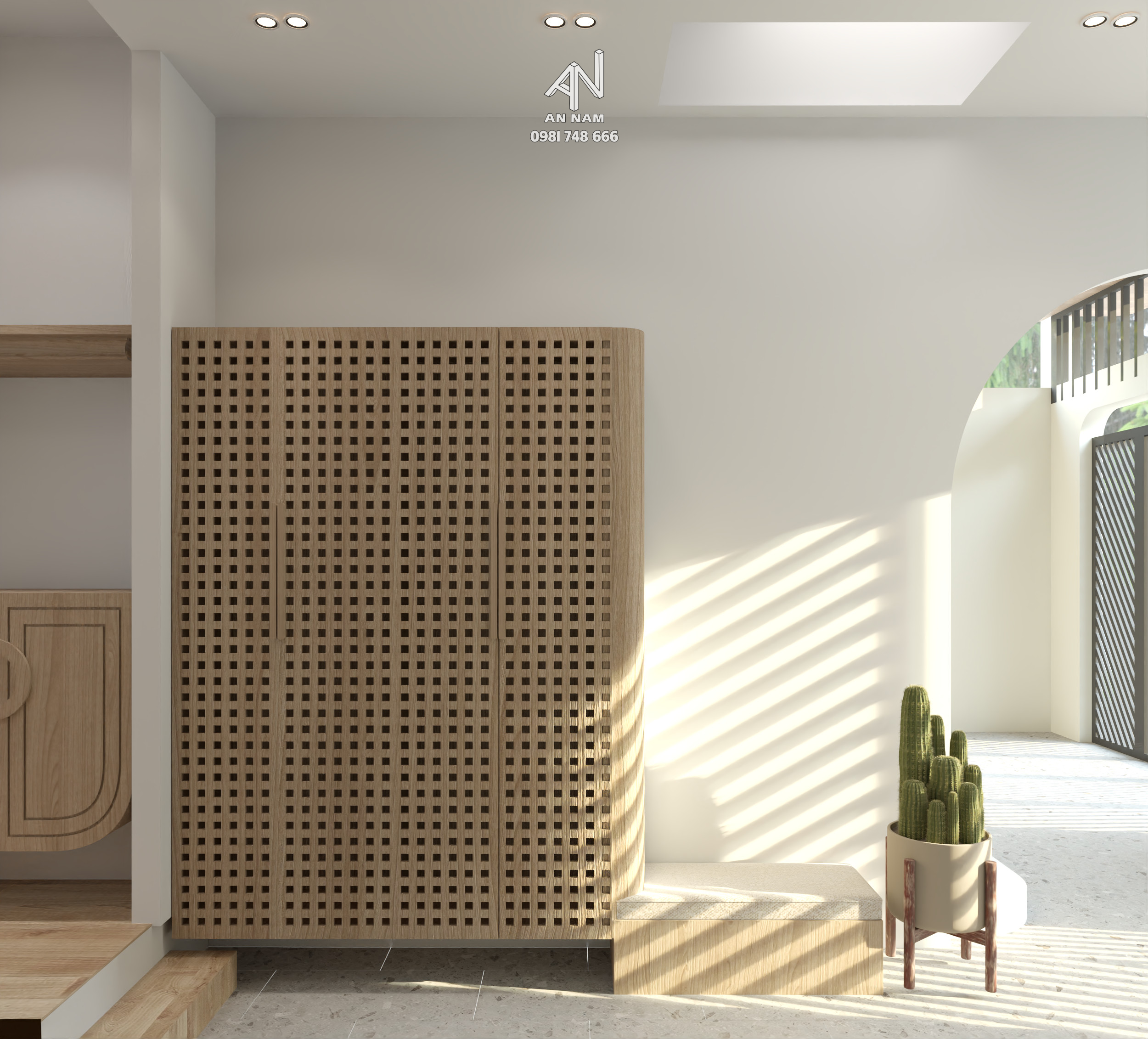 Không gian nội thất bên trong ấm áp được bao trùm bởi gam màu gỗ chủ đạo. Phong cách tối giản trong nội thất góp phần tôn lên vẻ đẹp thanh lịch và tinh tế của ngôi nhà.