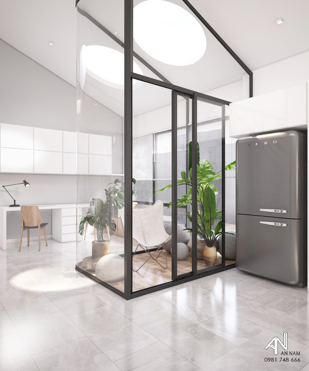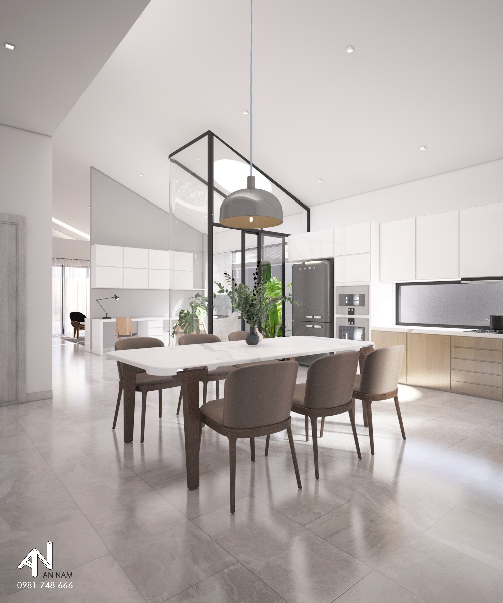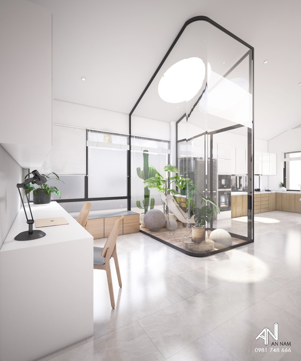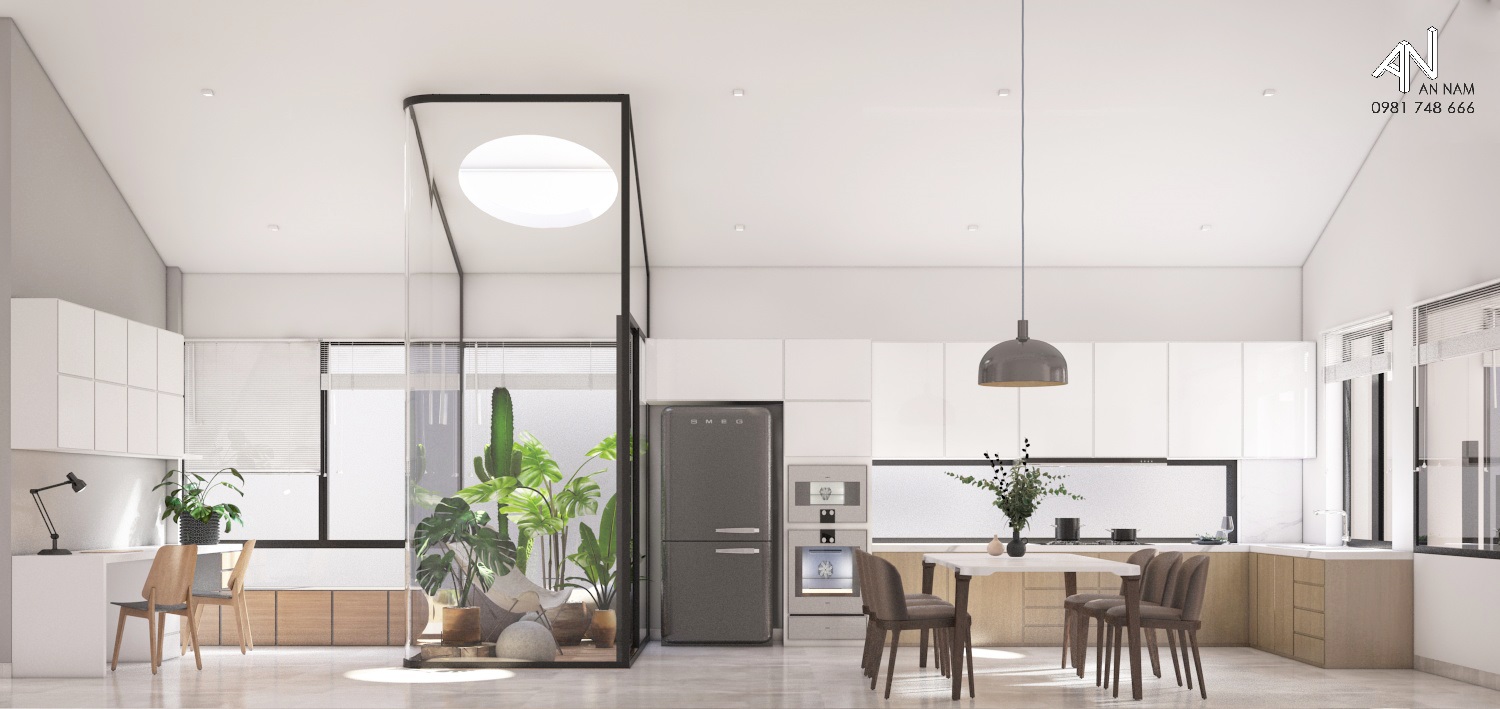 Lấy cảm hứng từ sự đơn giản, mộc mạc và phong cách tối giản, An Nam đề xuất phương án thiết kế một ngôi nhà mang những nét truyền thống của mái dốc và giếng trời, không gian kết nối giữa phòng khách và nhà bếp. |Việc kết hợp tổ hợp hình khối tối giản, khúc triết và tone màu trắng chủ đạo sẽ mang lại một căn nhà vừa đơn giản, vừa sang trọng cho chủ đầu tư.
