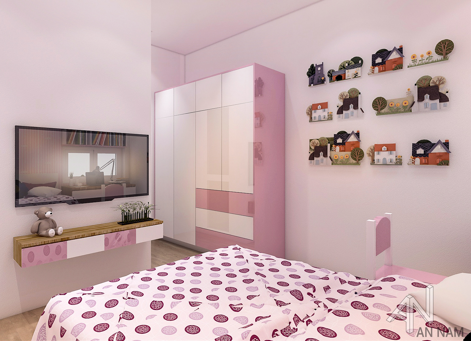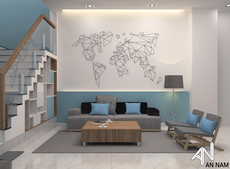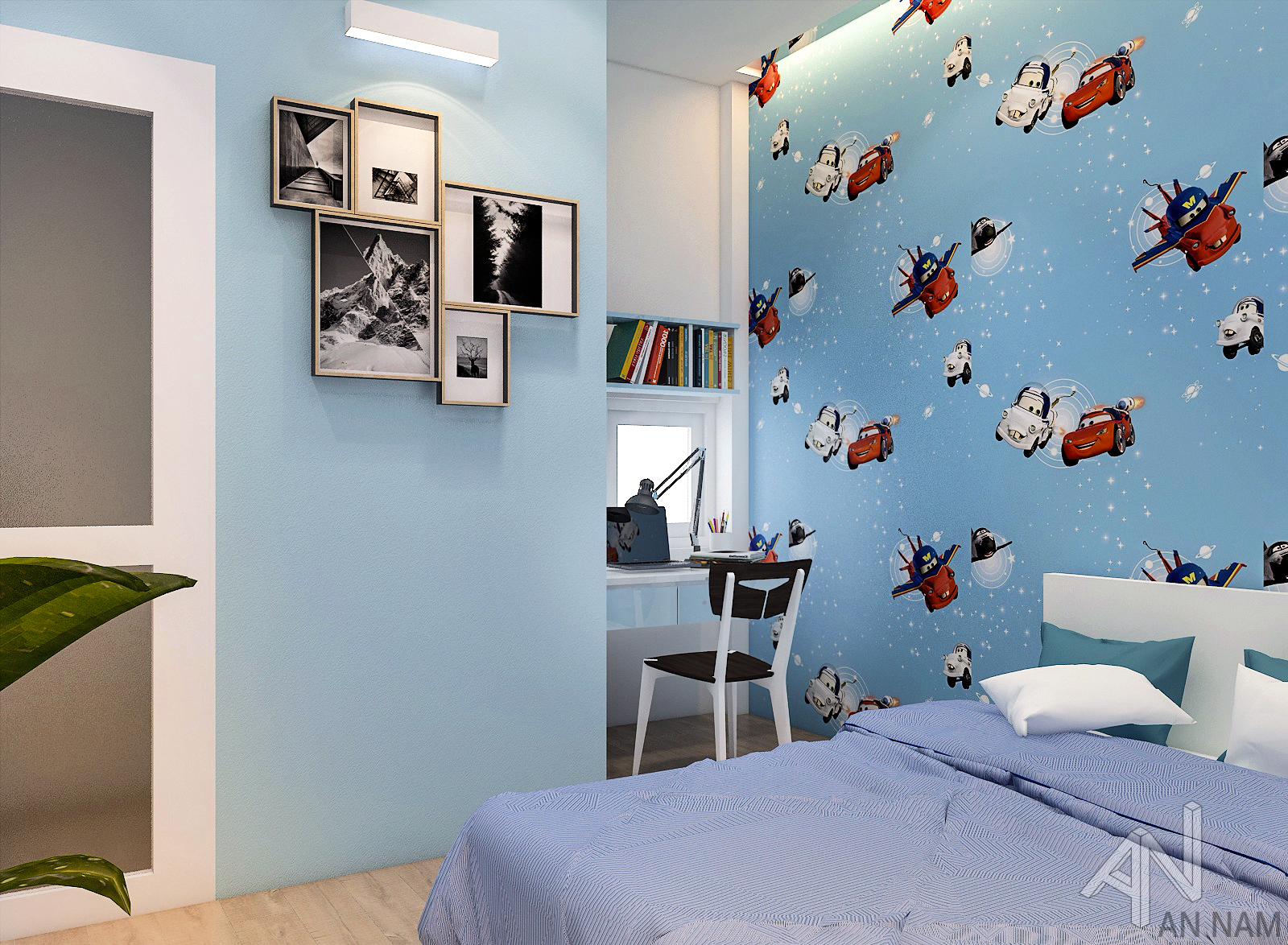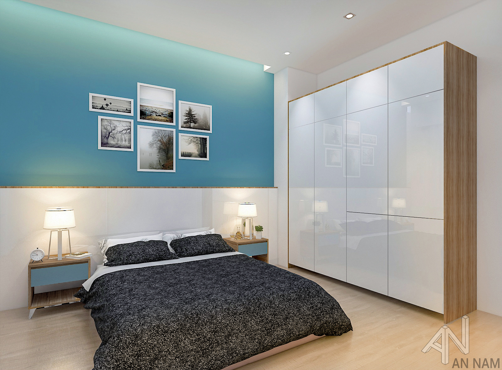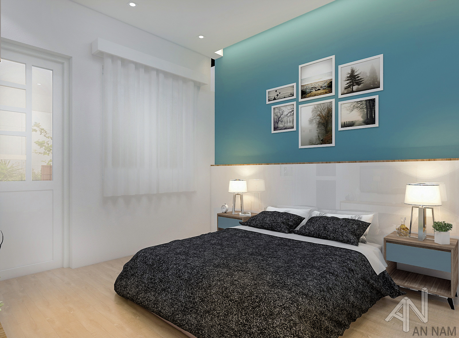 Màu sắc chủ đạo: Xanh pastel, trắng (theo phong thủy chủ nhà).