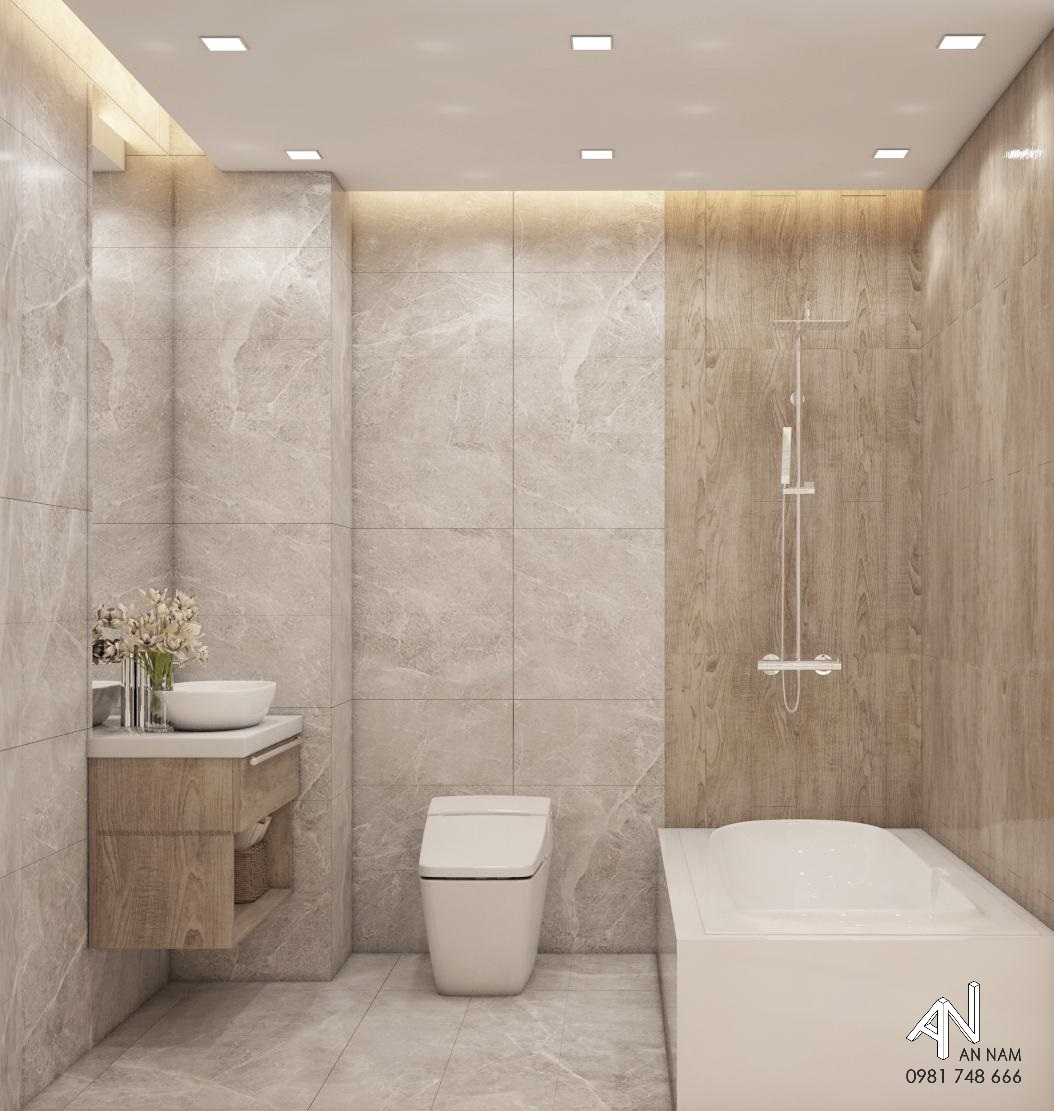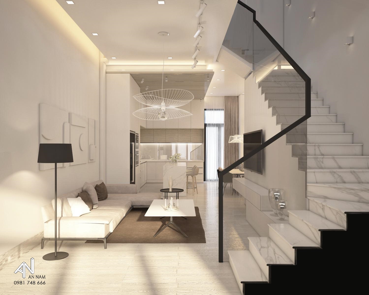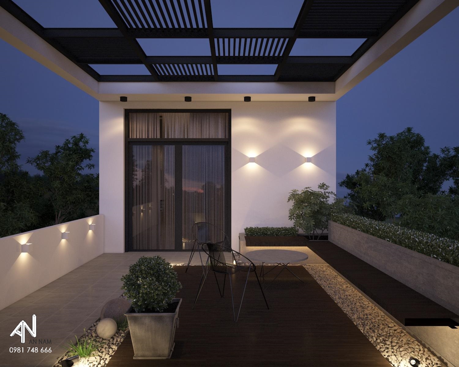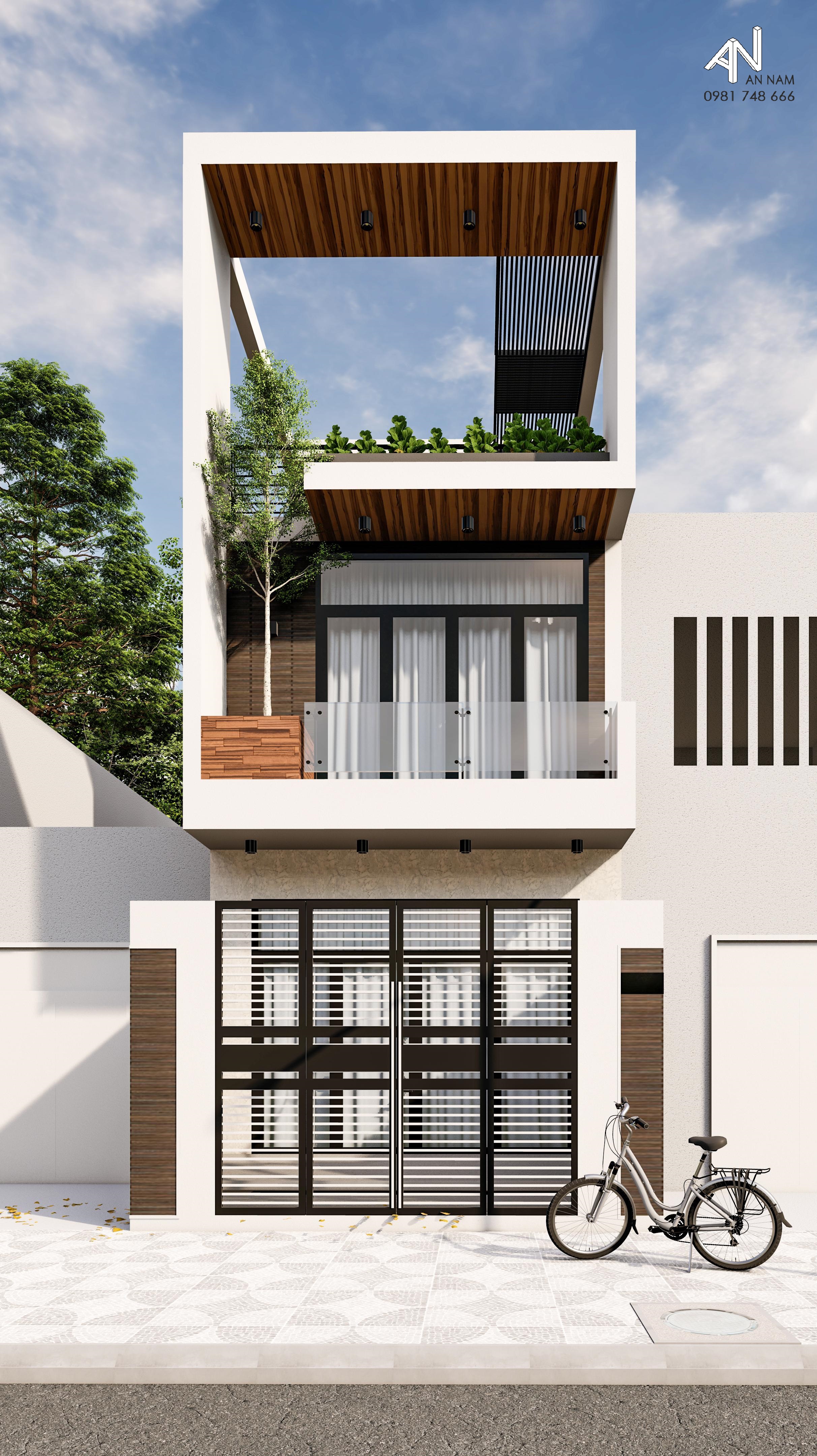Tại các khu dân cư, các mẫu nhà ống phong cách hiện đại vẫn là lựa chọn hàng đầu của các khách hàng.| Với thiết kế này, AN NAM ưu tiên sử dụng tấm xi măng conwood giả gỗ ngoài trời, kết hợp gạch ốp inax màu nâu để vừa tạo cảm giác ấm cúng, vừa bền theo thời gian.| Thêm một chút cây xanh giúp cân bằng màu sắc và giúp tổng thể hài hòa hơn.