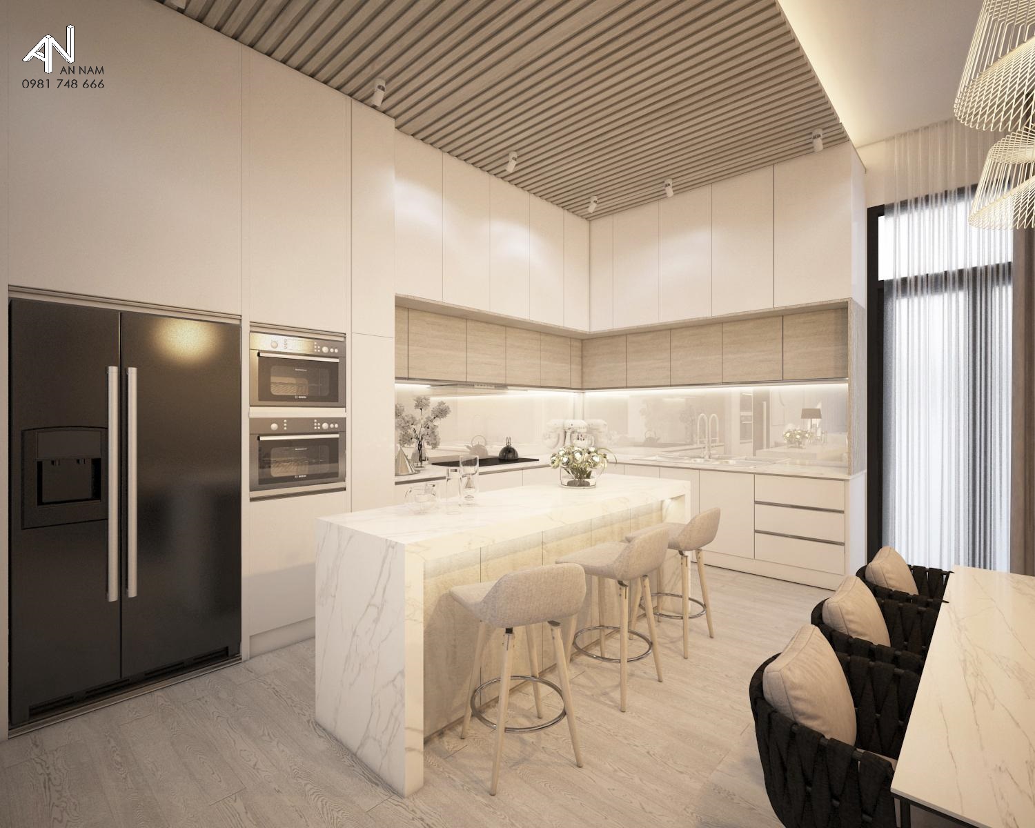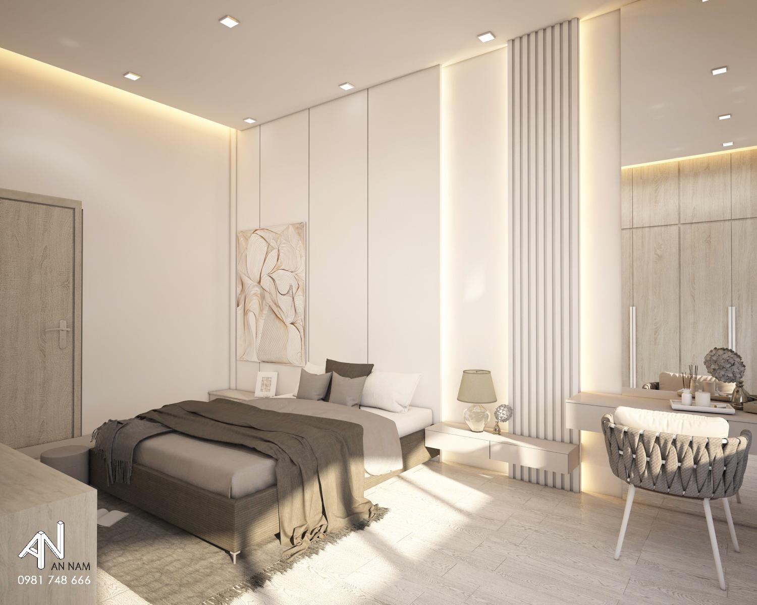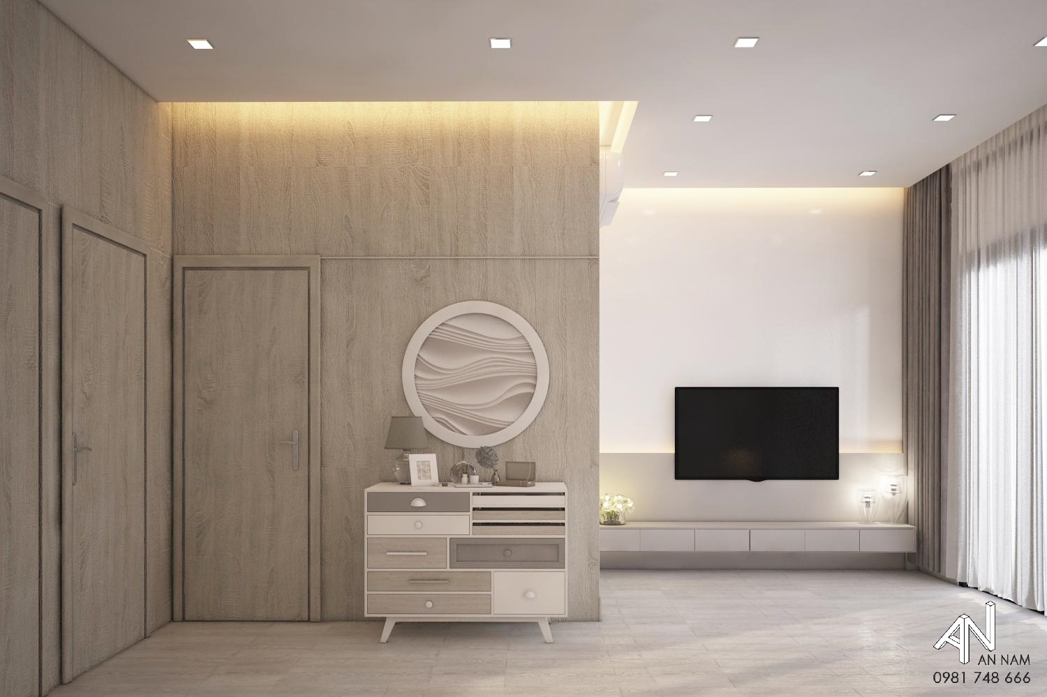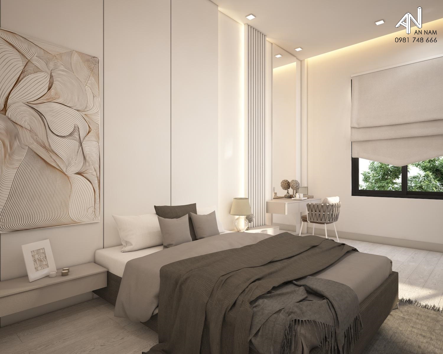 Tại các khu dân cư, các mẫu nhà ống phong cách hiện đại vẫn là lựa chọn hàng đầu của các khách hàng.| Với thiết kế này, AN NAM ưu tiên sử dụng tấm xi măng conwood giả gỗ ngoài trời, kết hợp gạch ốp inax màu nâu để vừa tạo cảm giác ấm cúng, vừa bền theo thời gian.| Thêm một chút cây xanh giúp cân bằng màu sắc và giúp tổng thể hài hòa hơn.