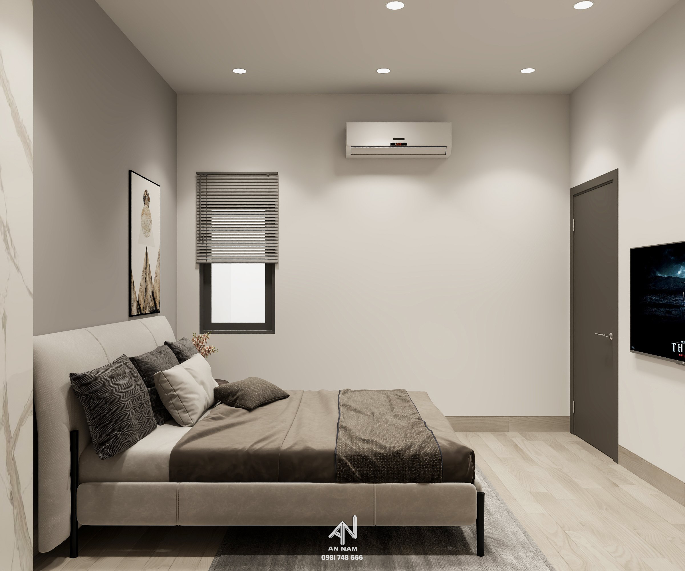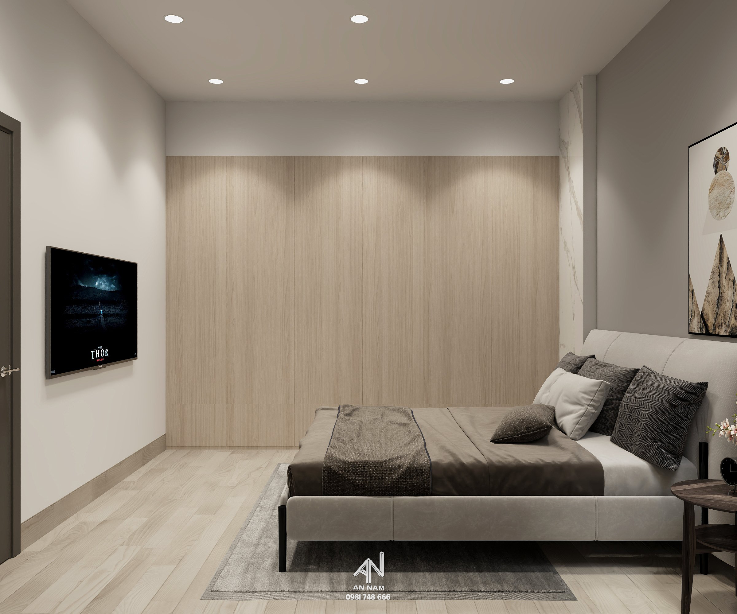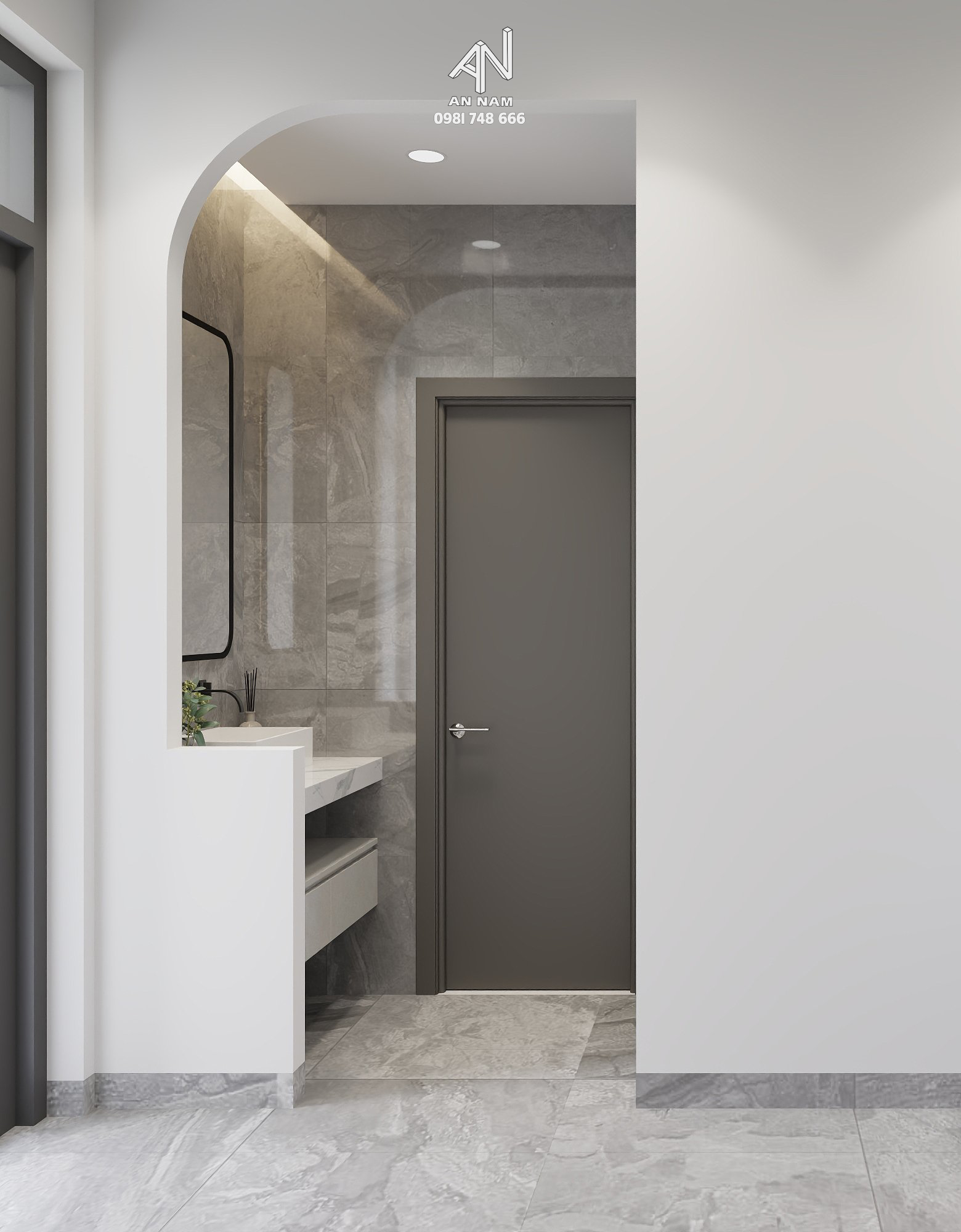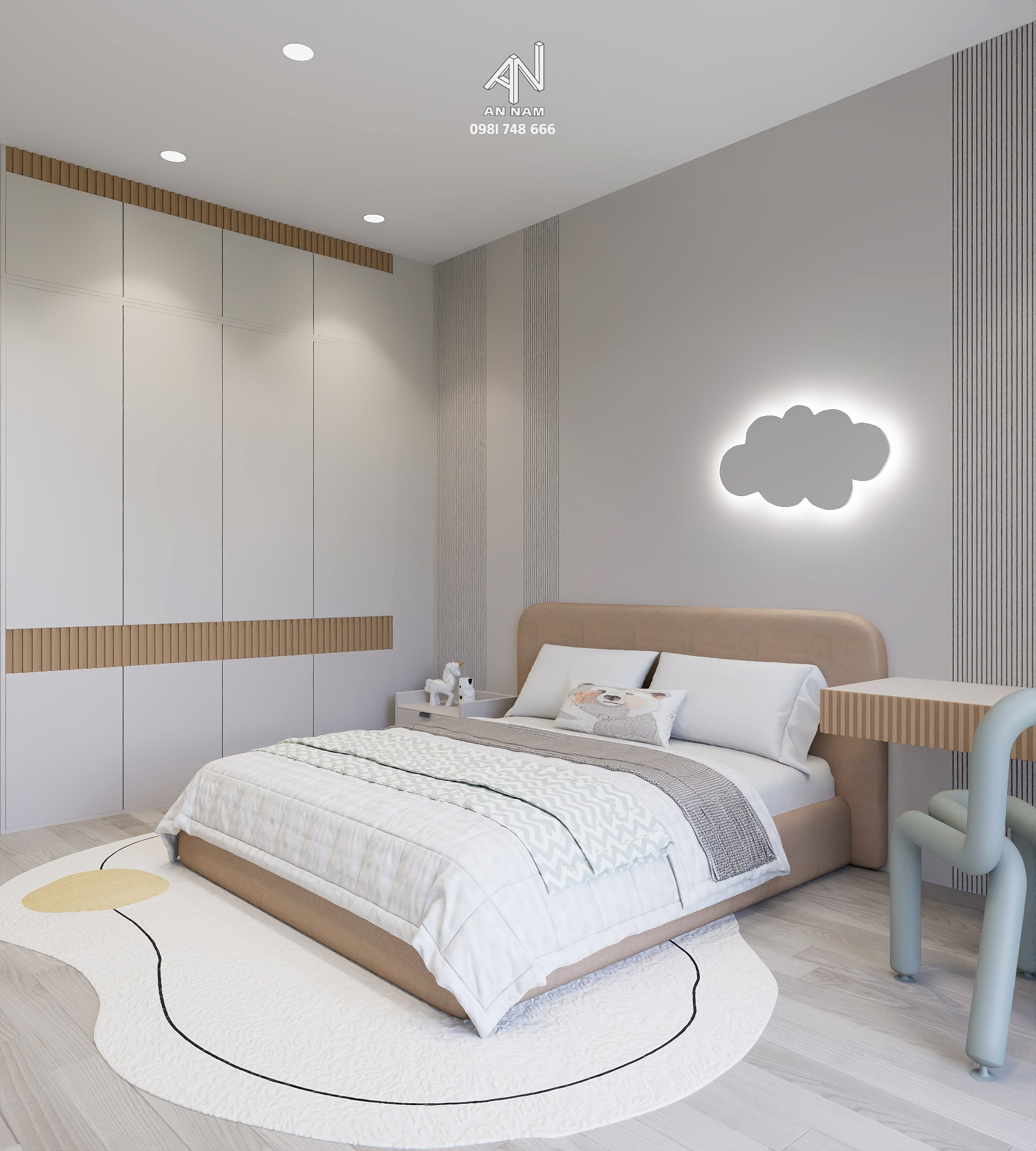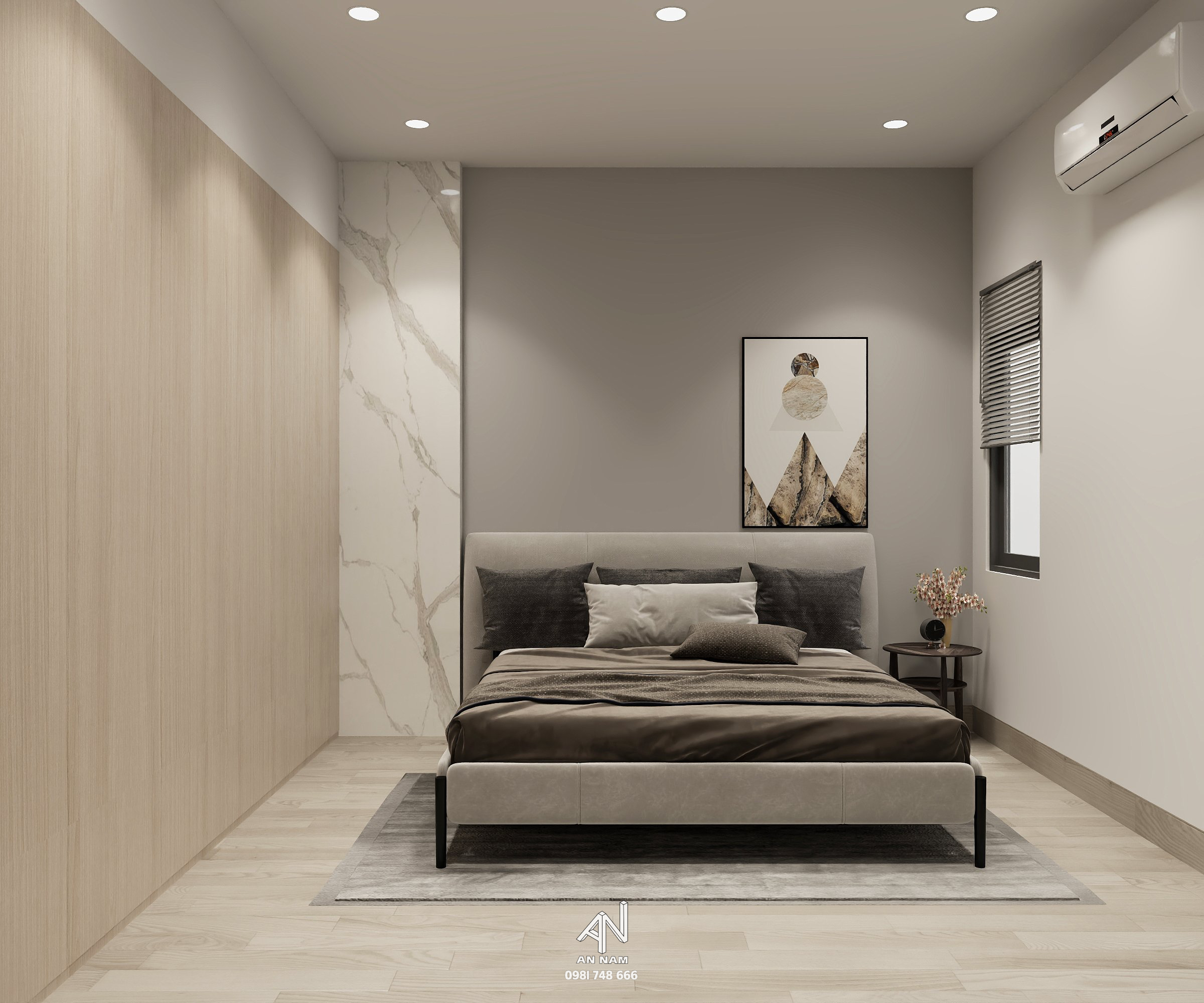 Điểm nhấn của nội thất chính là phần cầu thang, với tay vịn được làm từ cường lực màu đen khói, tạo nên sự sang trọng và đồng thời đảm bảo tính thẩm mỹ. Đèn led được bố trí tinh tế tại các bậc cầu thang không chỉ làm tôn lên vẻ đẹp của không gian mà còn tạo ra ánh sáng mềm mại, tạo điểm nhấn cho không gian.