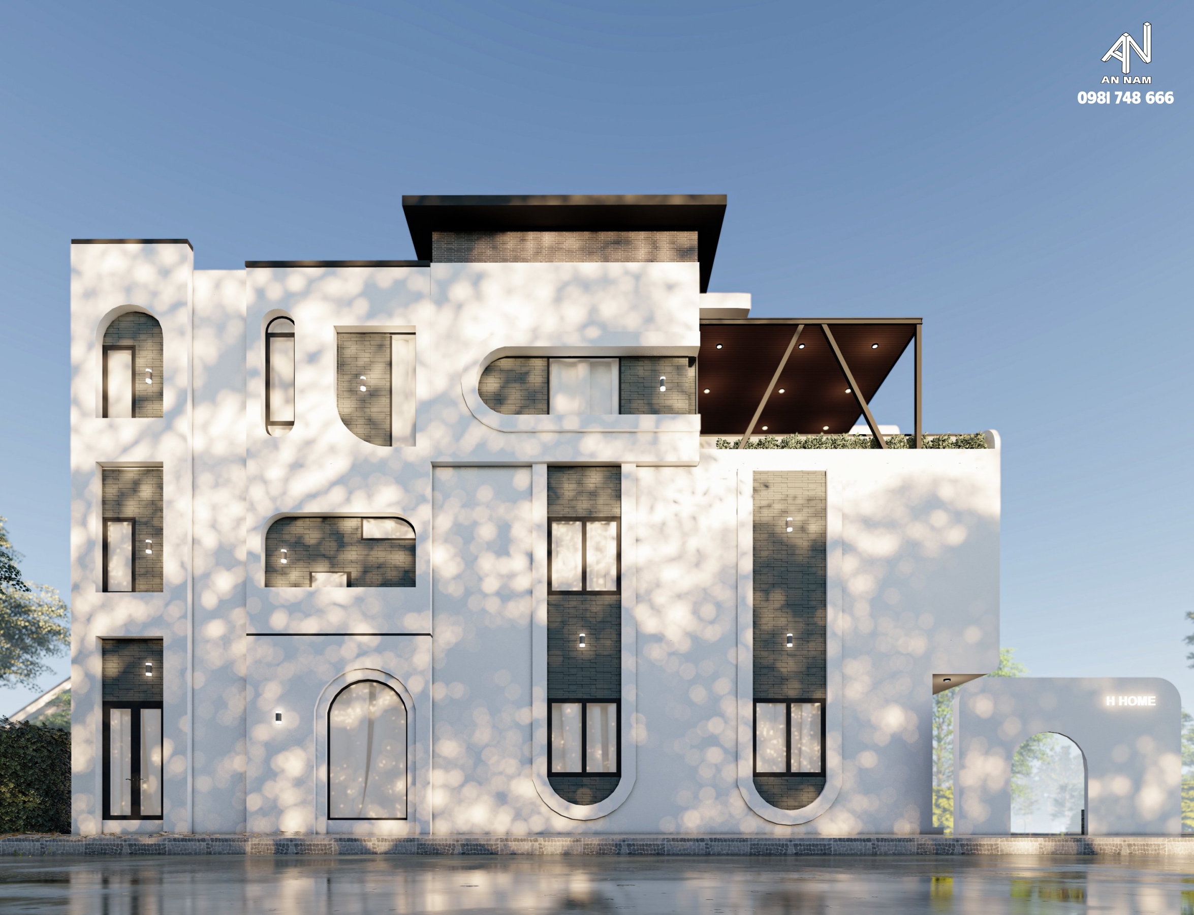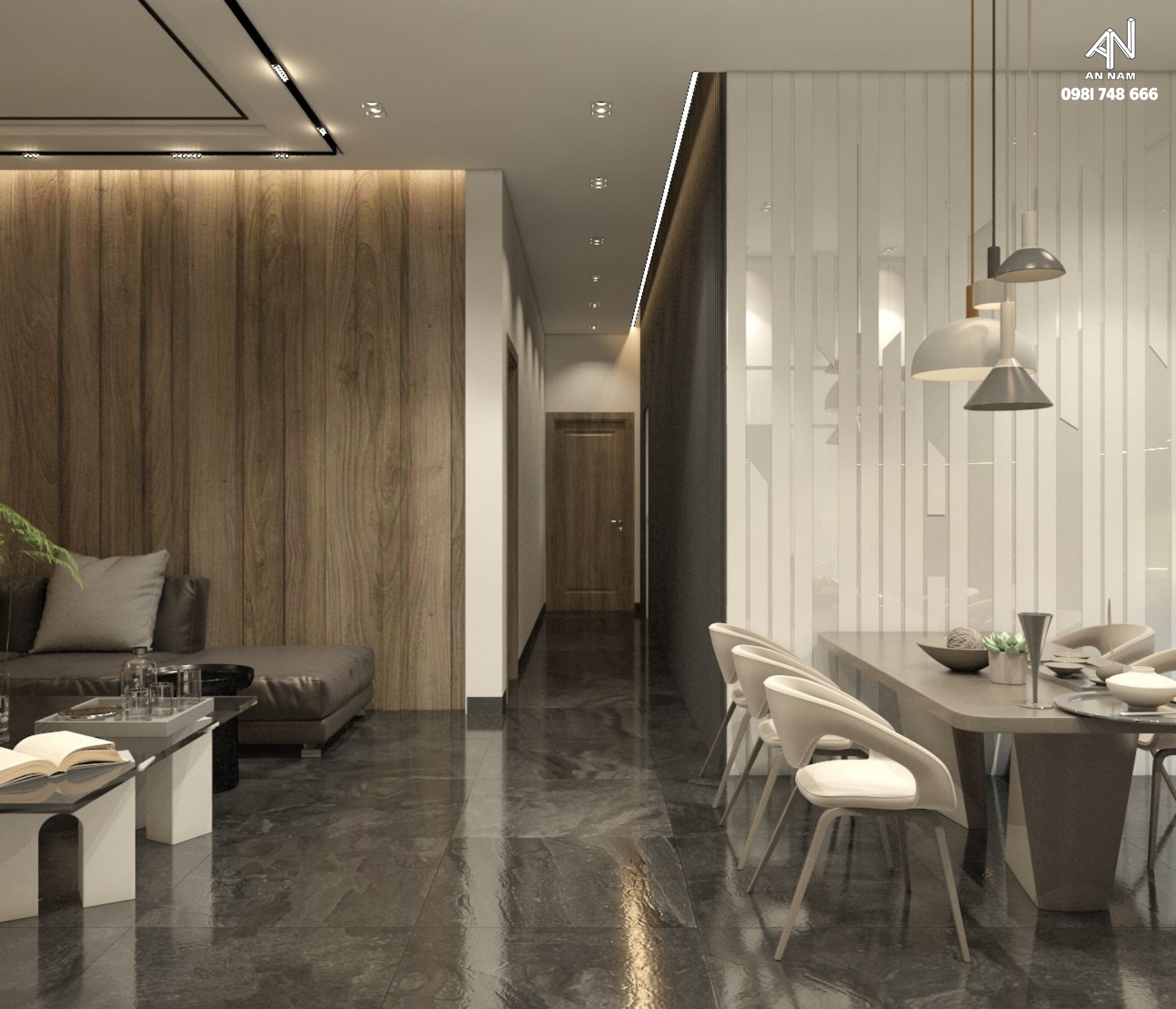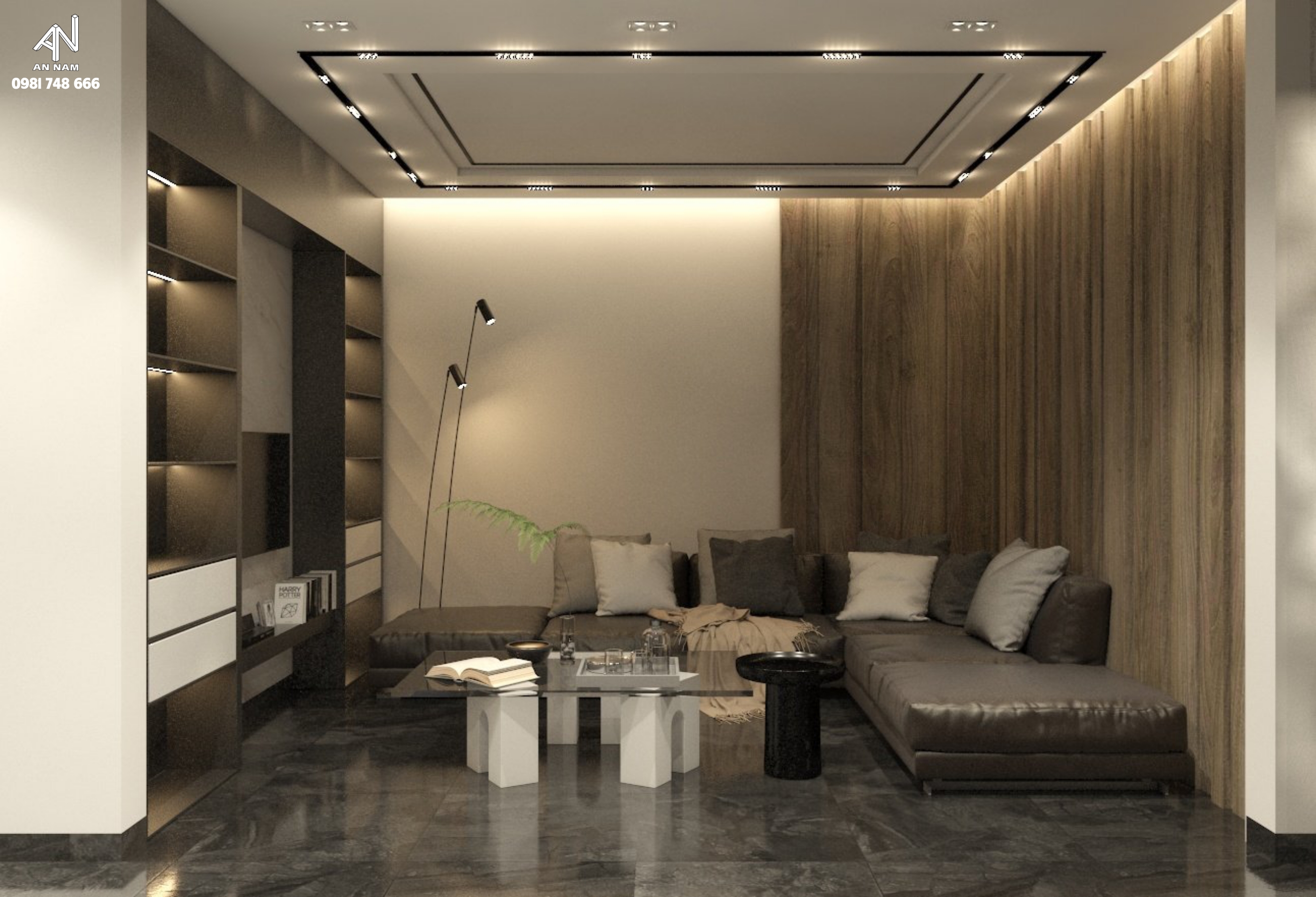 Ngôi nhà 2 mặt tiền với diện tích 8.4mx18m, được thiết kế theo phong cách hiện đại, tối giản và sang trọng. Nội thất phòng khách và phòng ngủ sử dụng gam màu tối, mang lại nét cá tính và sang trọng cho chủ đầu tư.