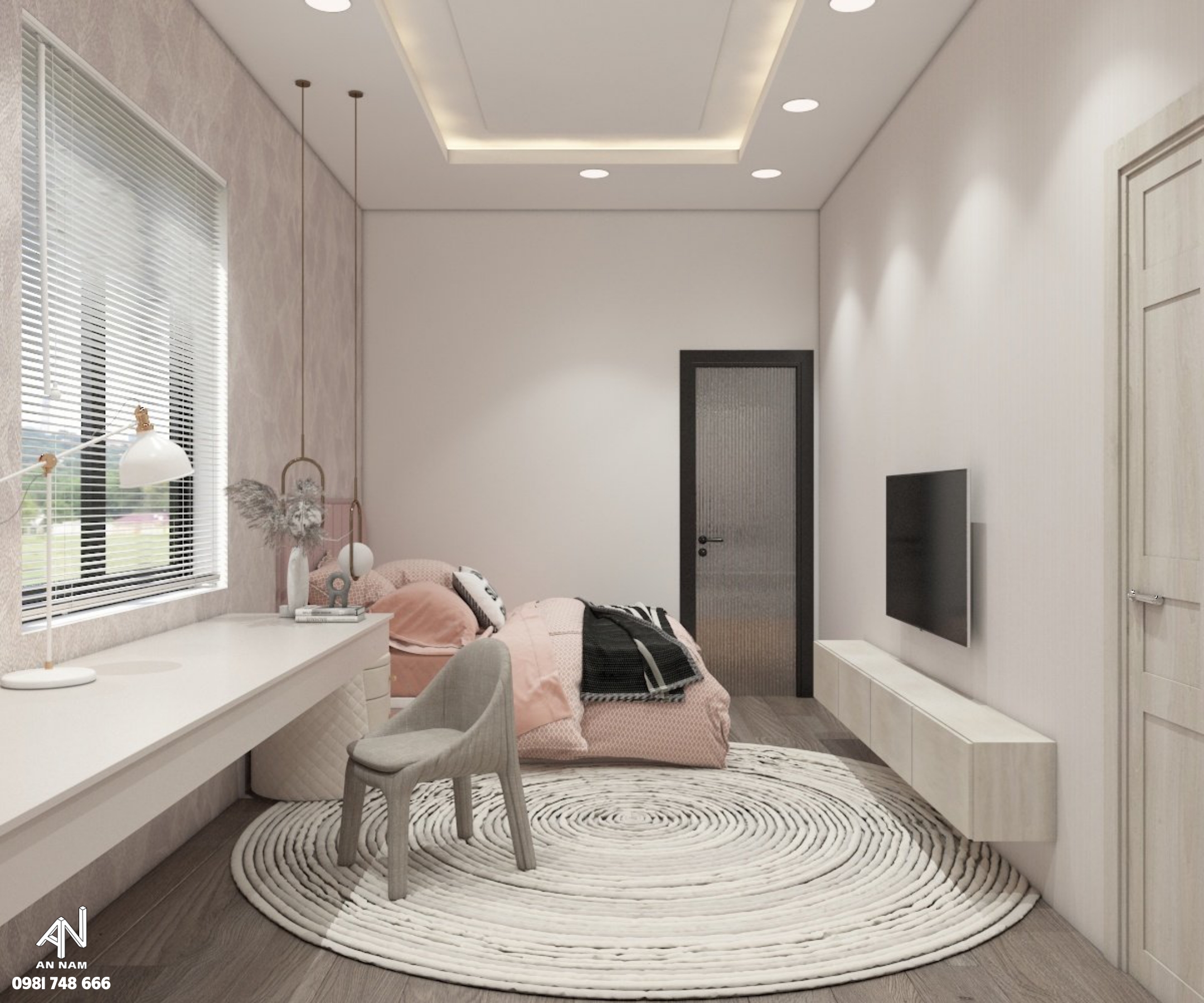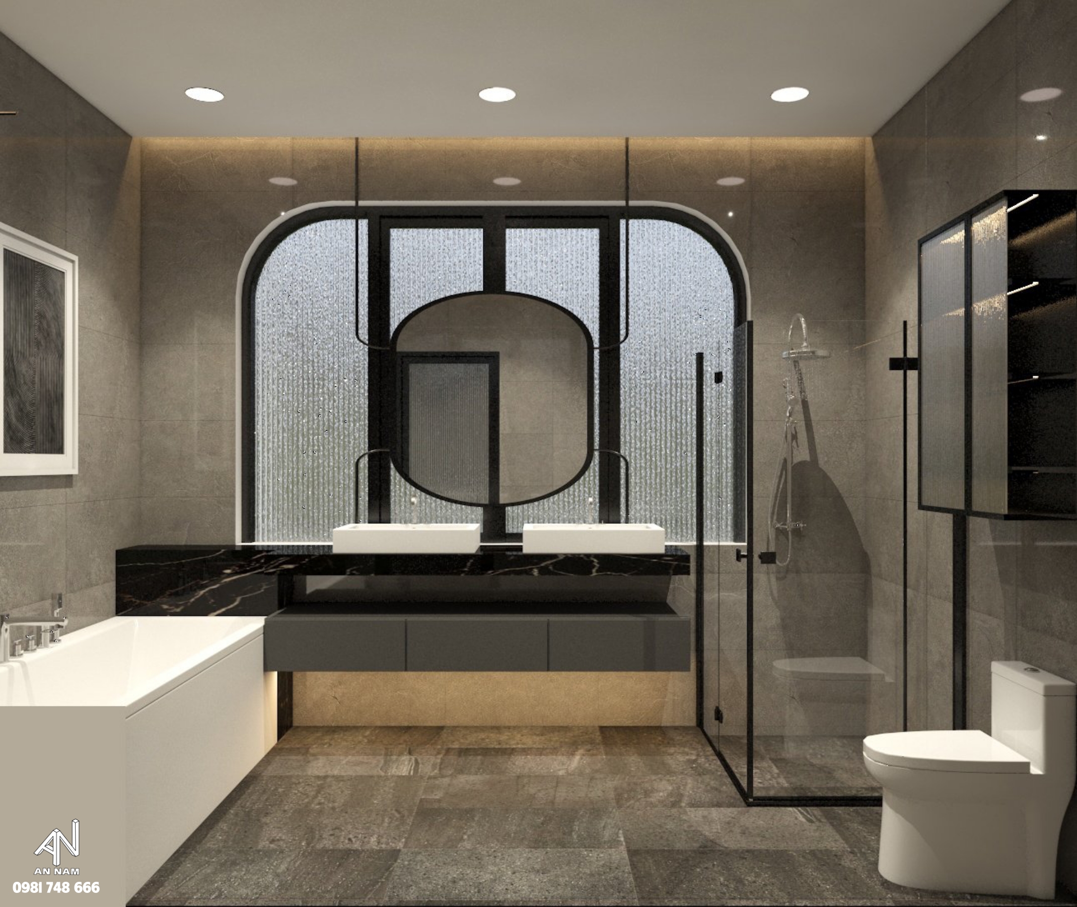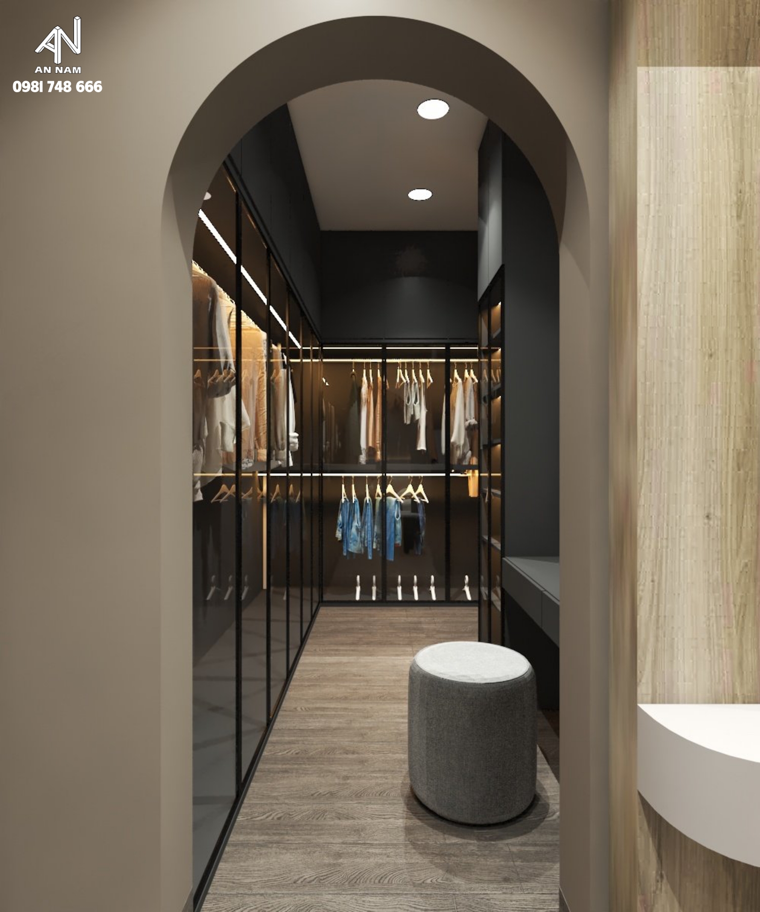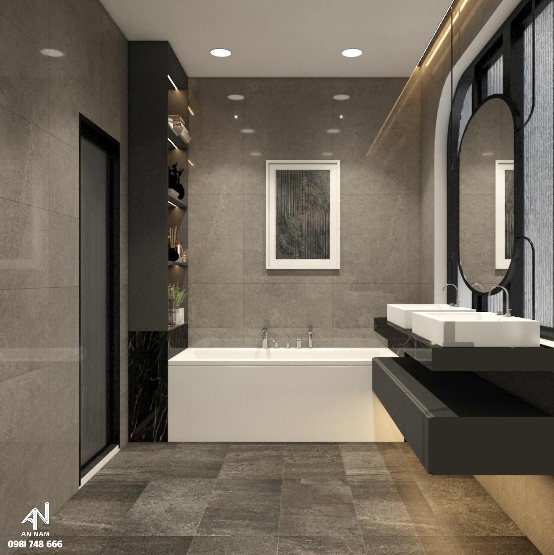 Ngôi nhà 2 mặt tiền với diện tích 8.4mx18m, được thiết kế theo phong cách hiện đại, tối giản và sang trọng. Nội thất phòng khách và phòng ngủ sử dụng gam màu tối, mang lại nét cá tính và sang trọng cho chủ đầu tư.