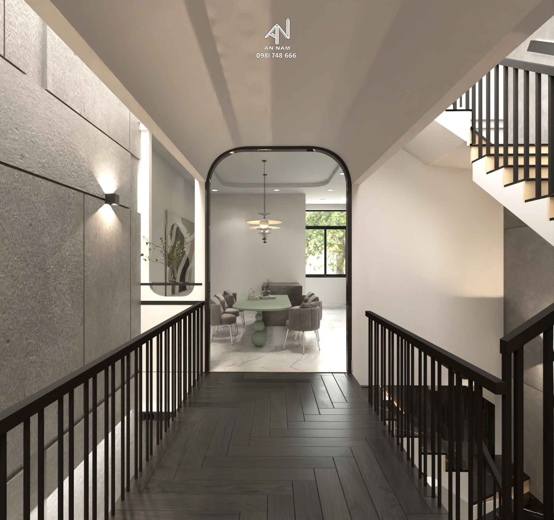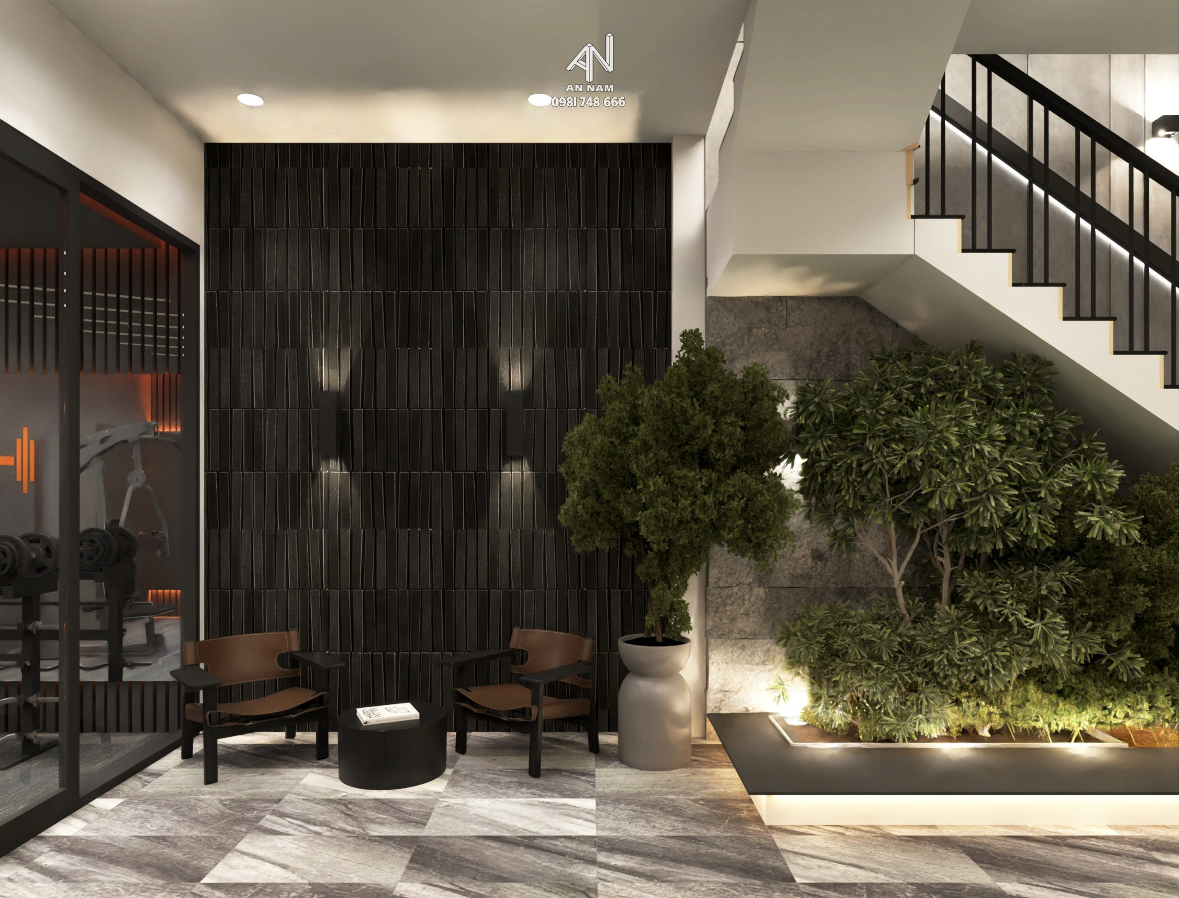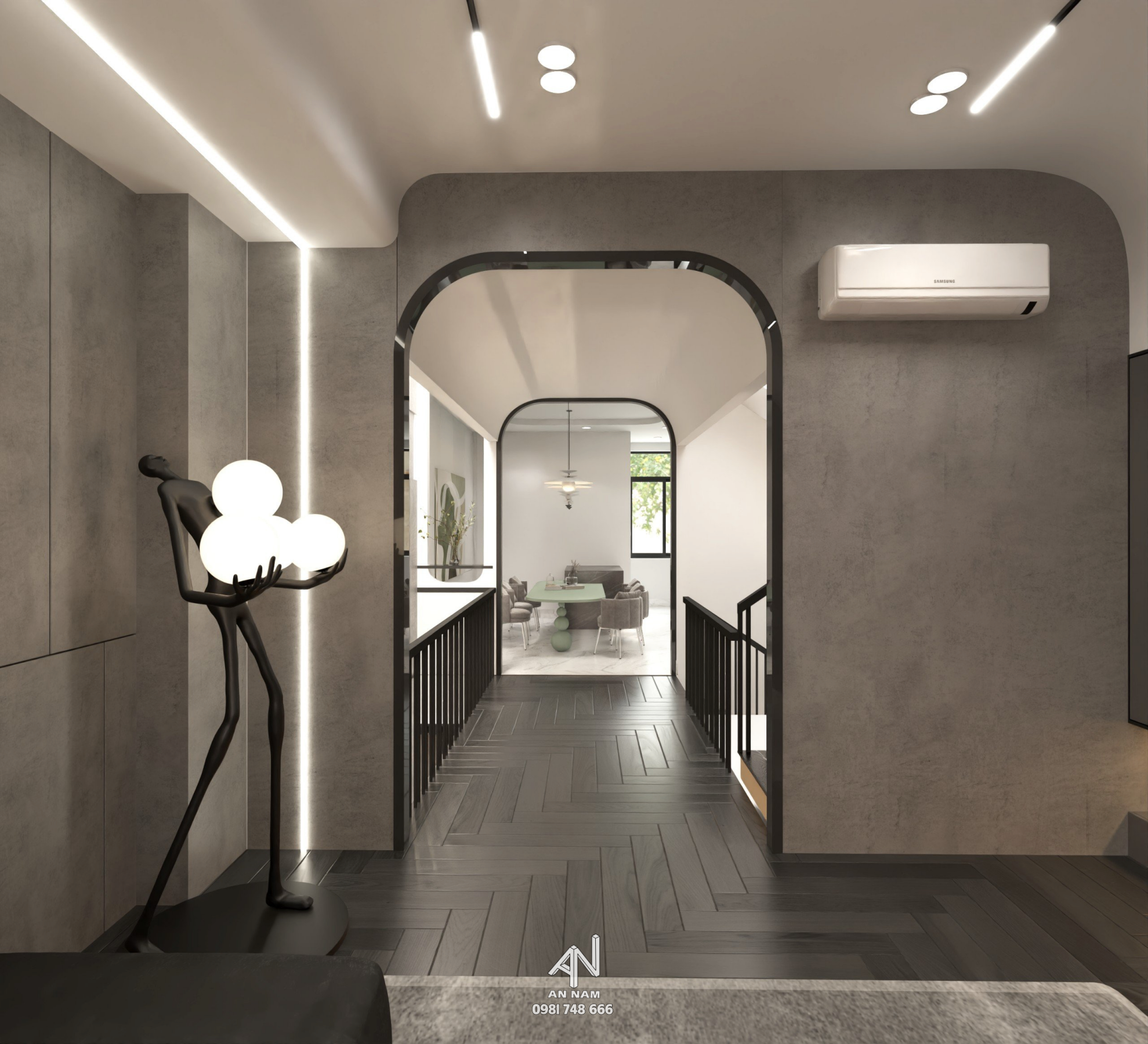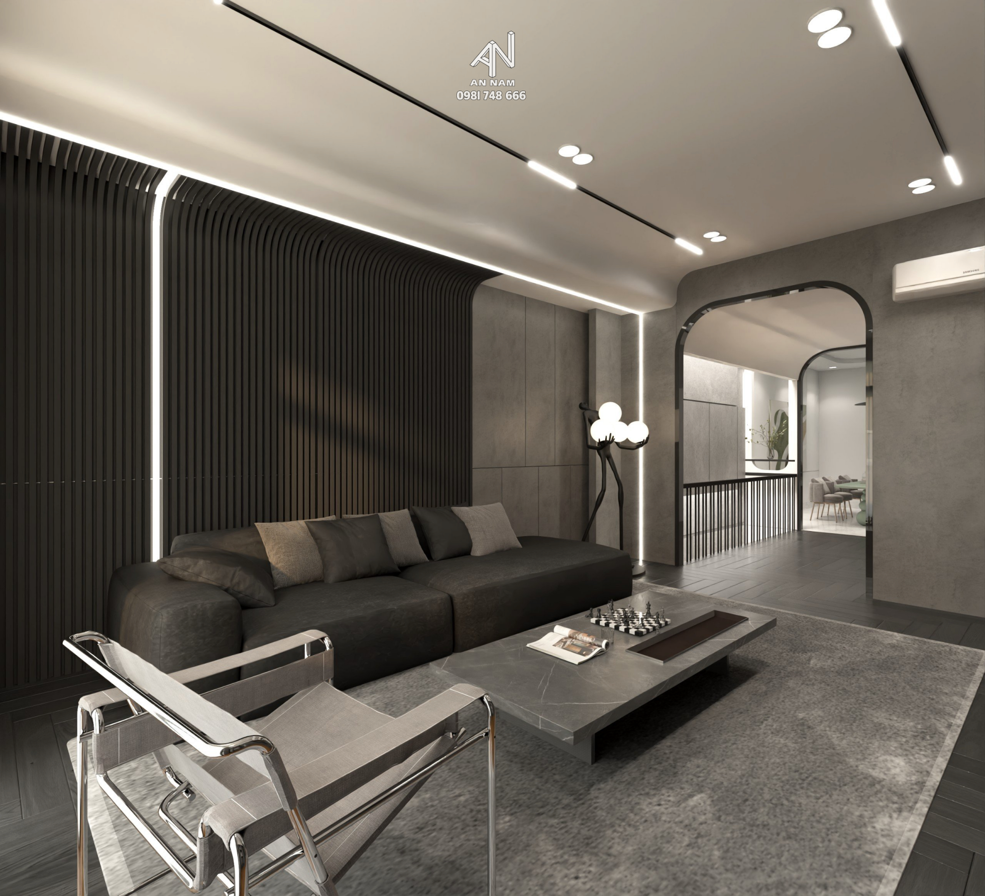 Ngoài ra, kiến trúc lệch tầng độc đáo cũng khiến không gian ngôi nhà thông thoáng và thú vị hơn. Tông màu đen xám chủ đạo thể hiện sự cá tính của chủ nhà.