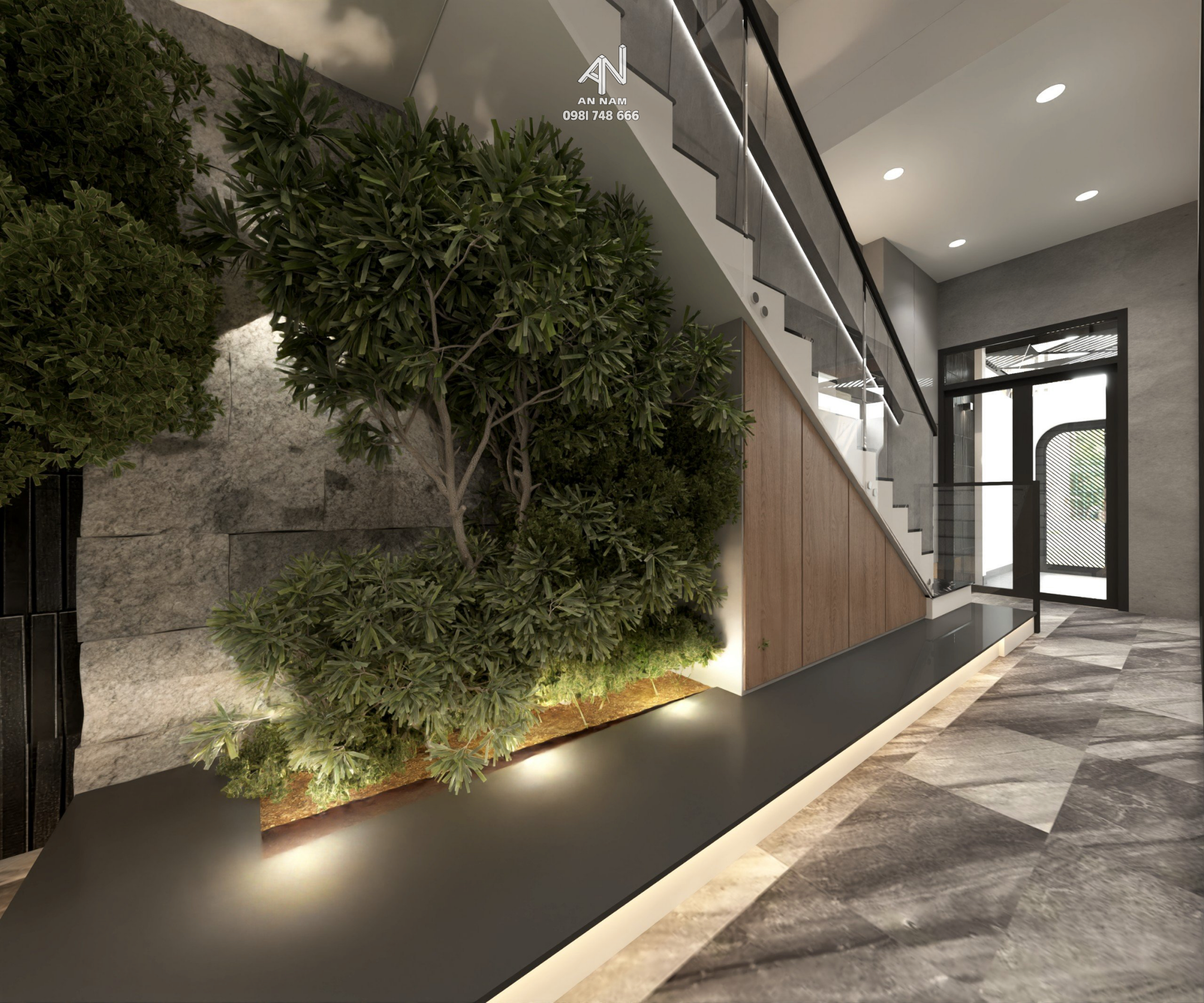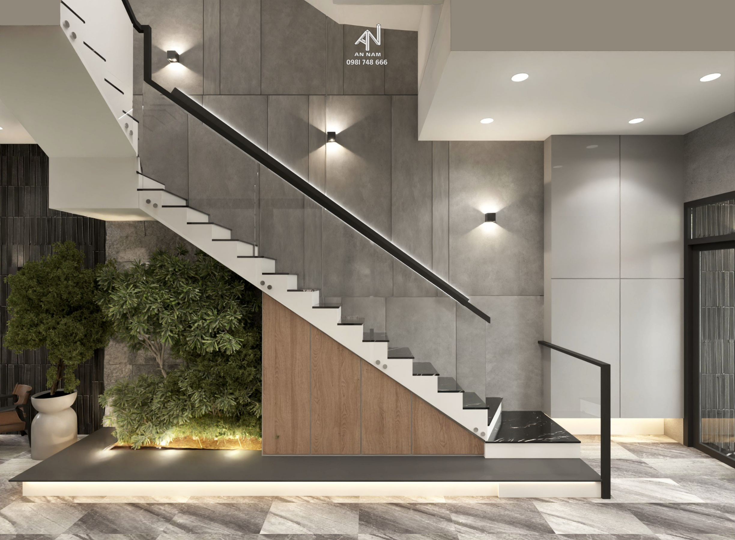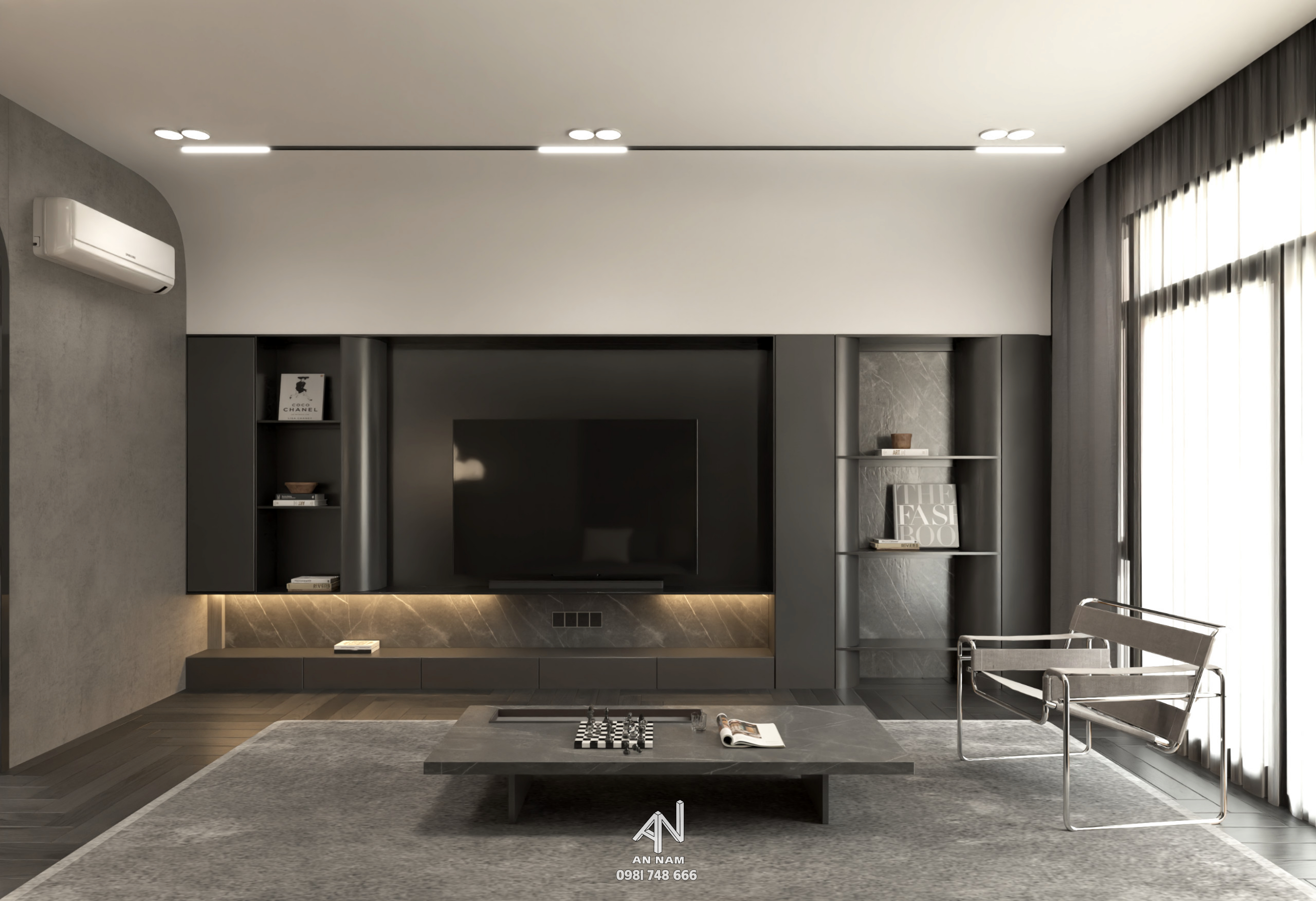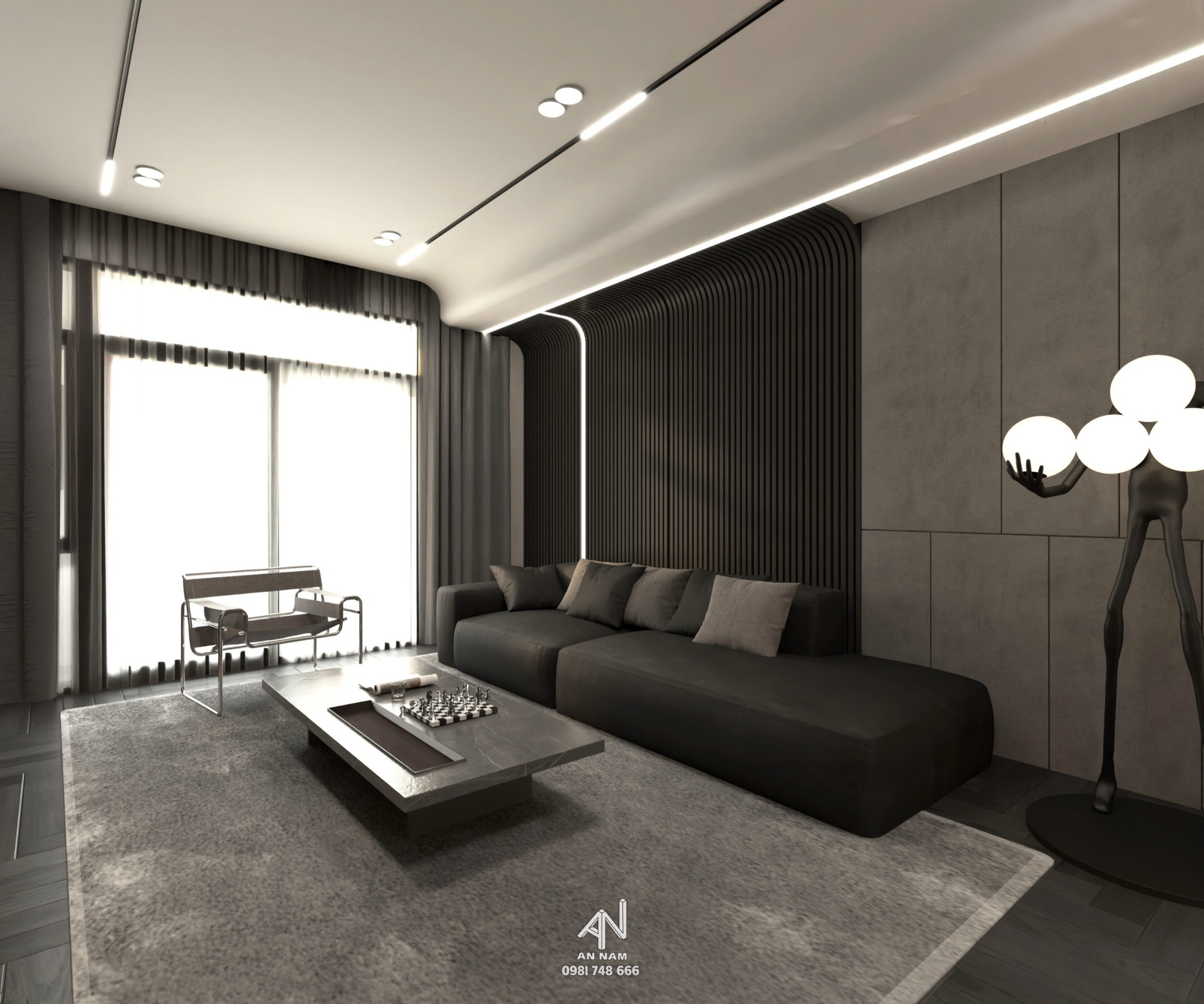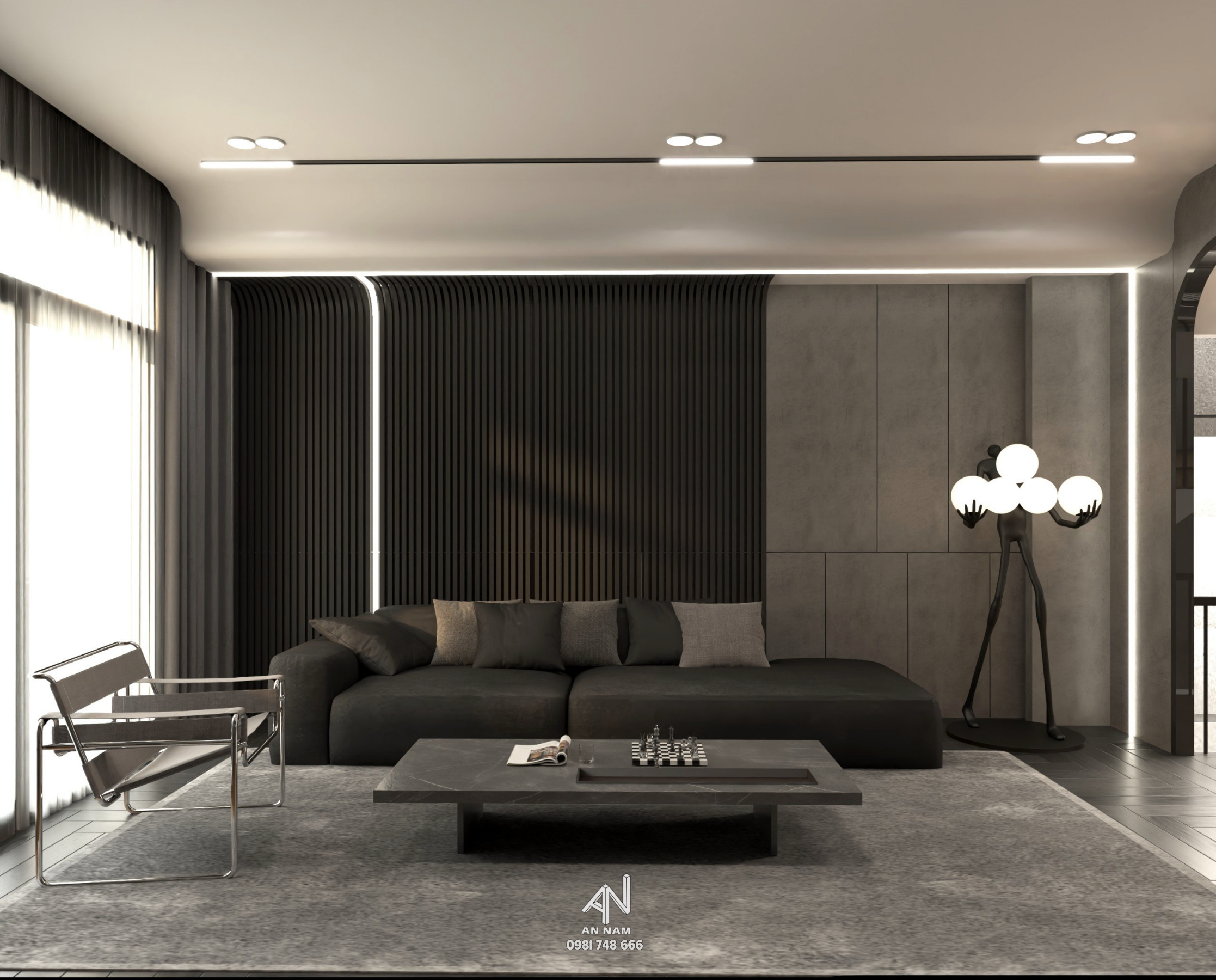 Ngoài ra, kiến trúc lệch tầng độc đáo cũng khiến không gian ngôi nhà thông thoáng và thú vị hơn. Tông màu đen xám chủ đạo thể hiện sự cá tính của chủ nhà.