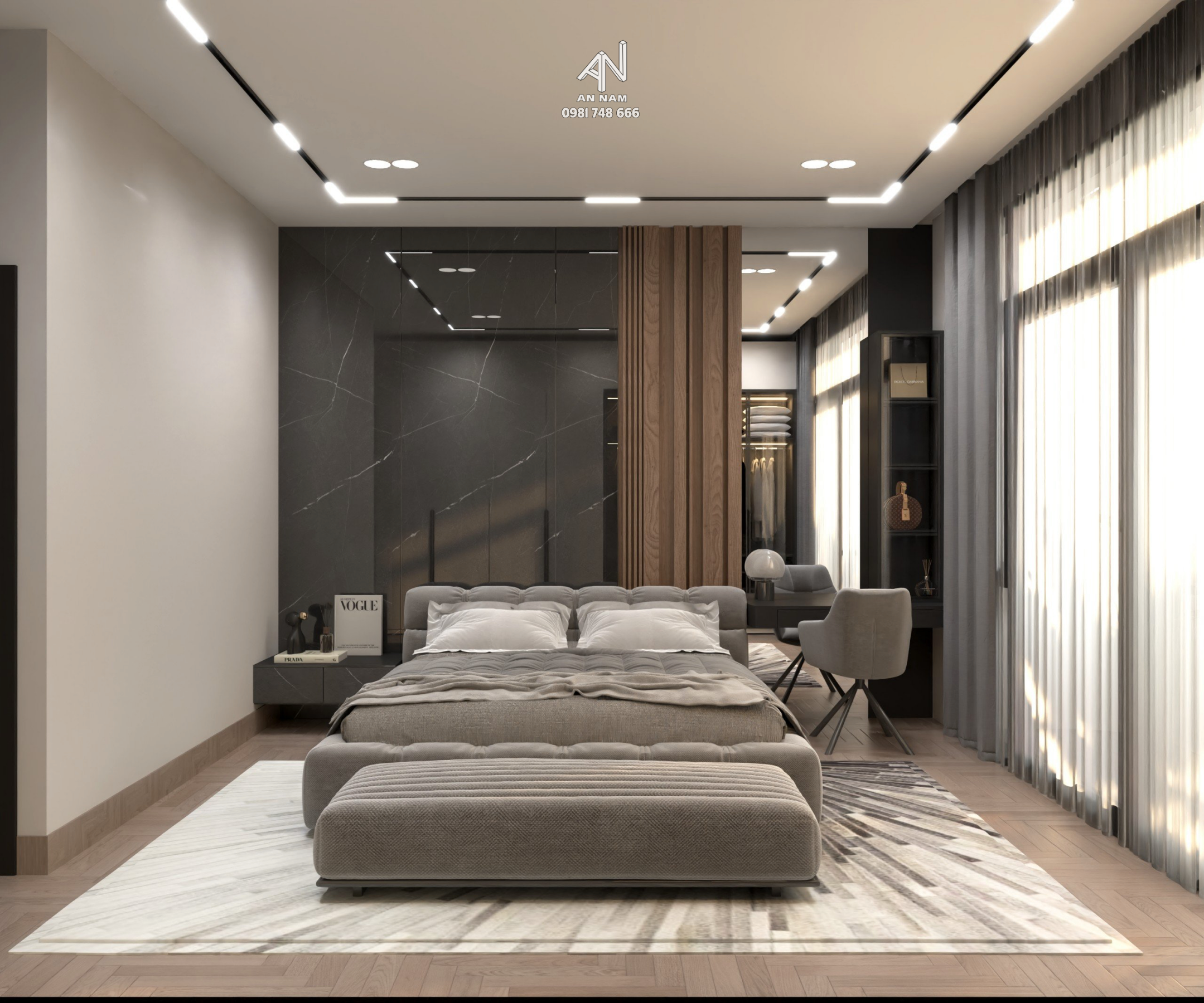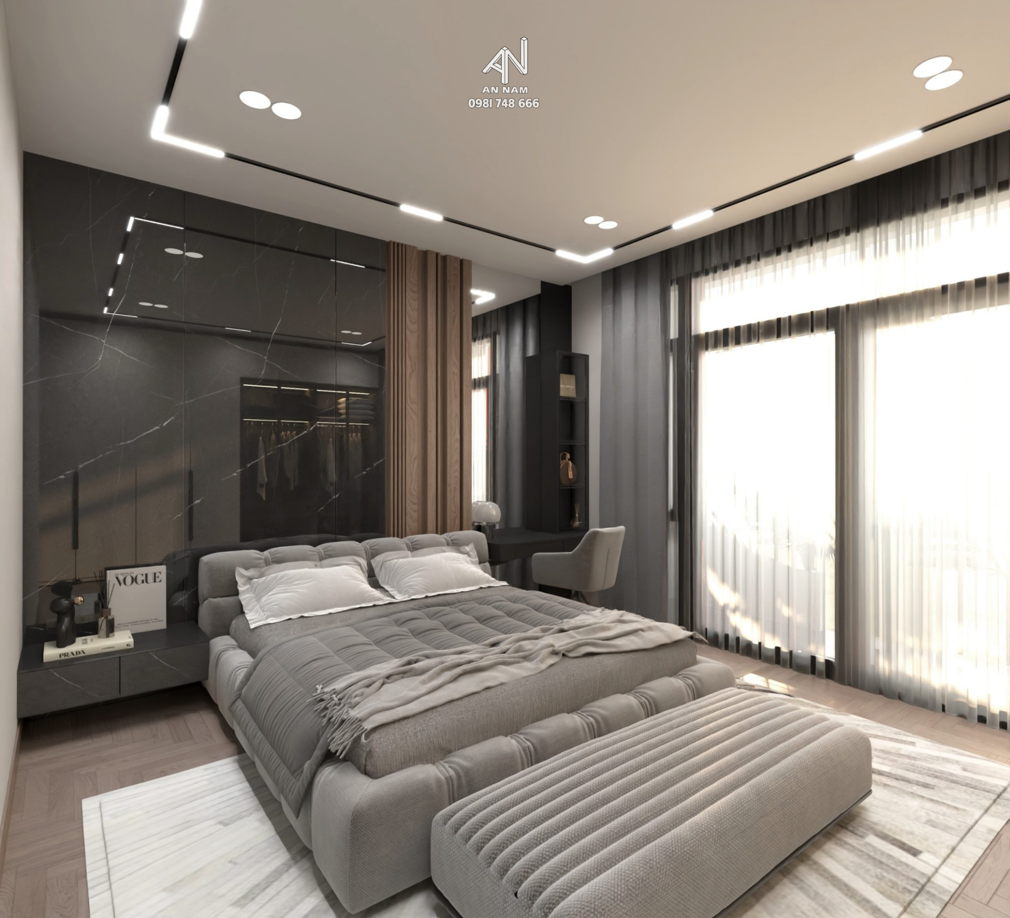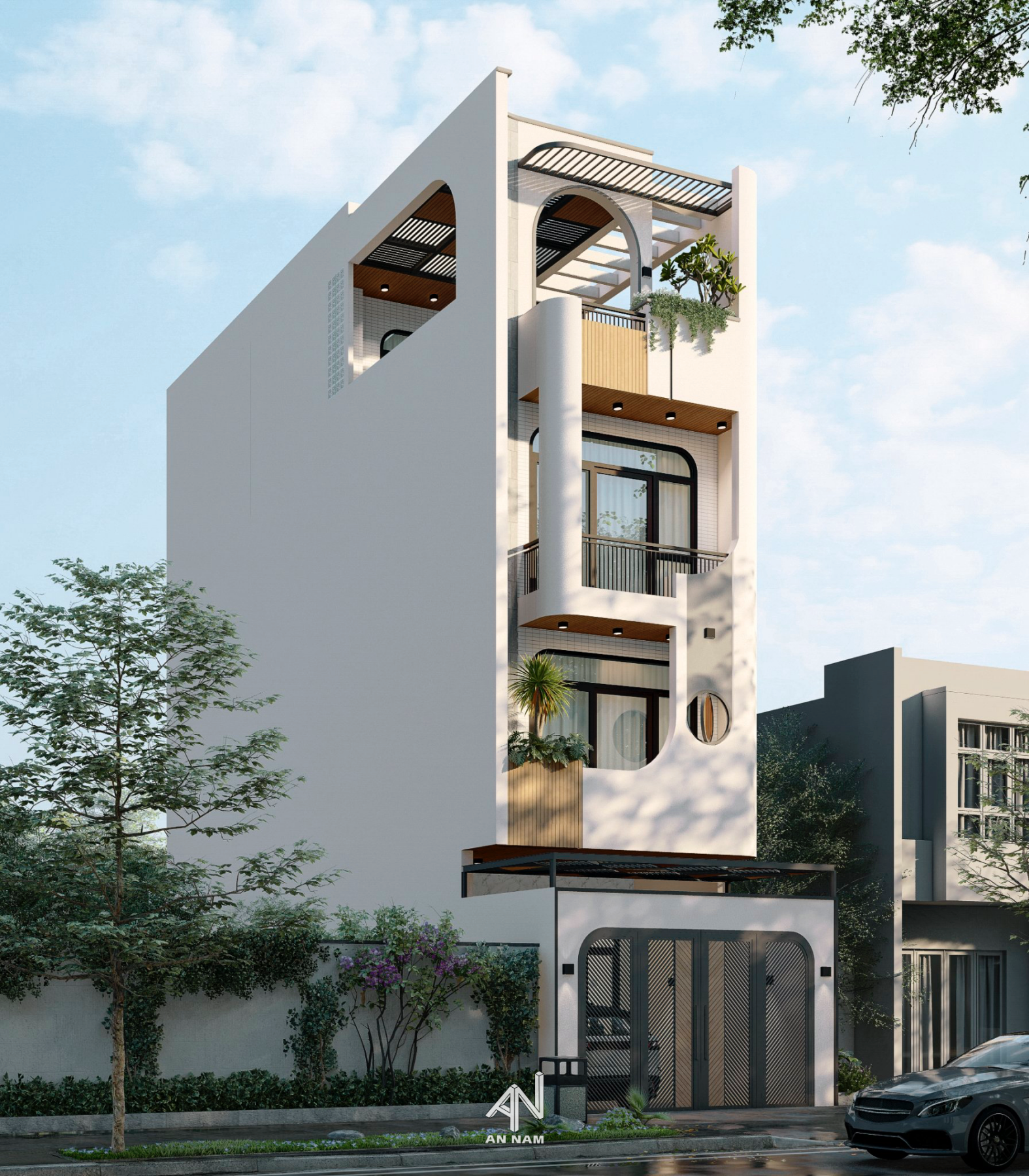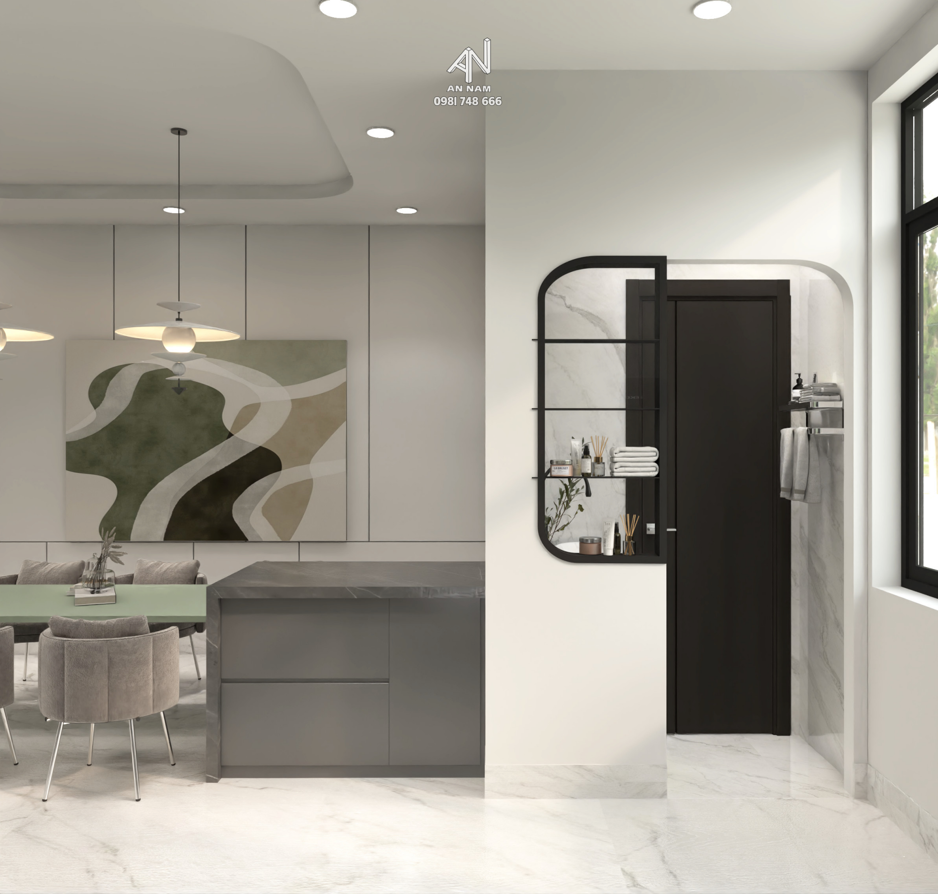 Ngoài ra, kiến trúc lệch tầng độc đáo cũng khiến không gian ngôi nhà thông thoáng và thú vị hơn. Tông màu đen xám chủ đạo thể hiện sự cá tính của chủ nhà.