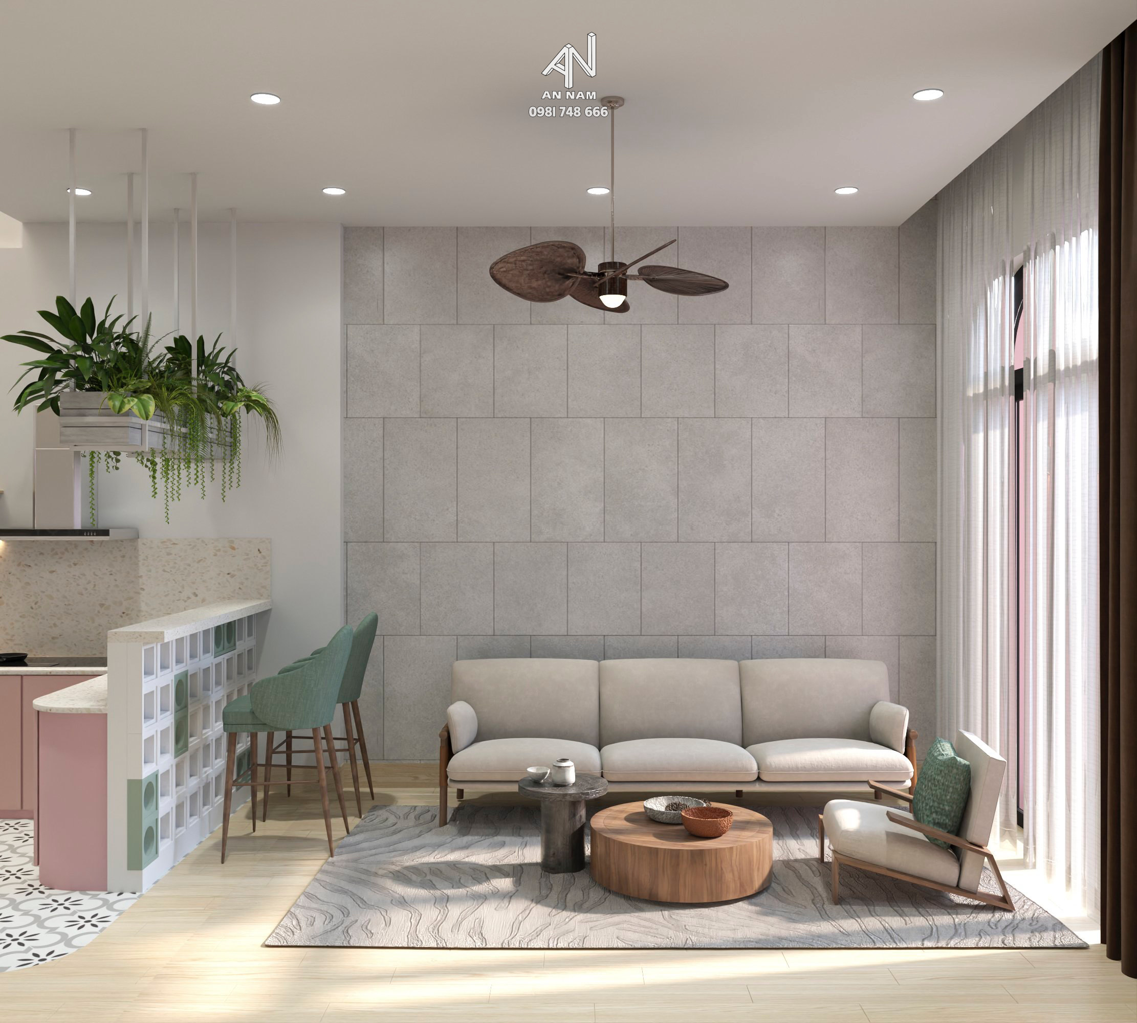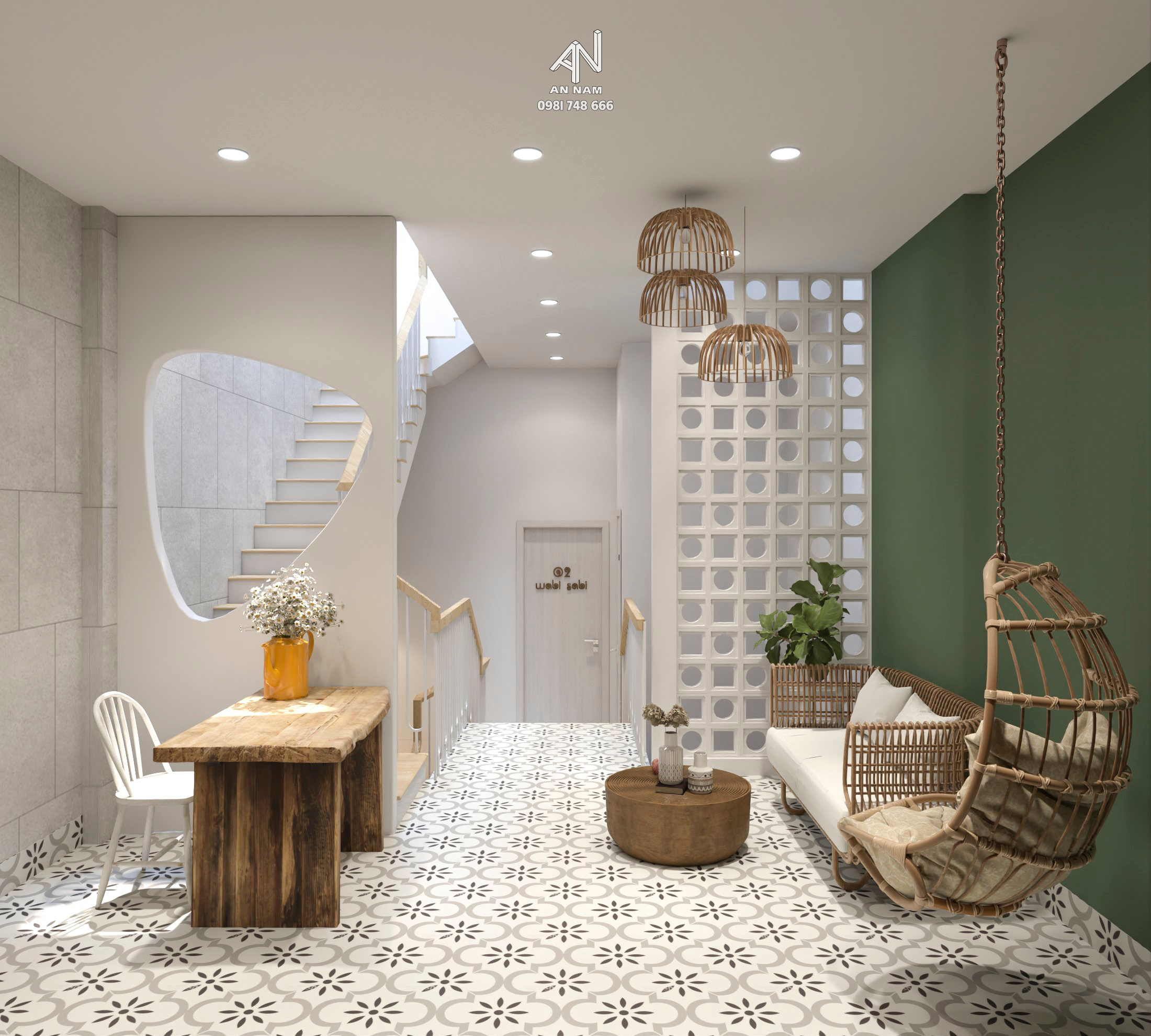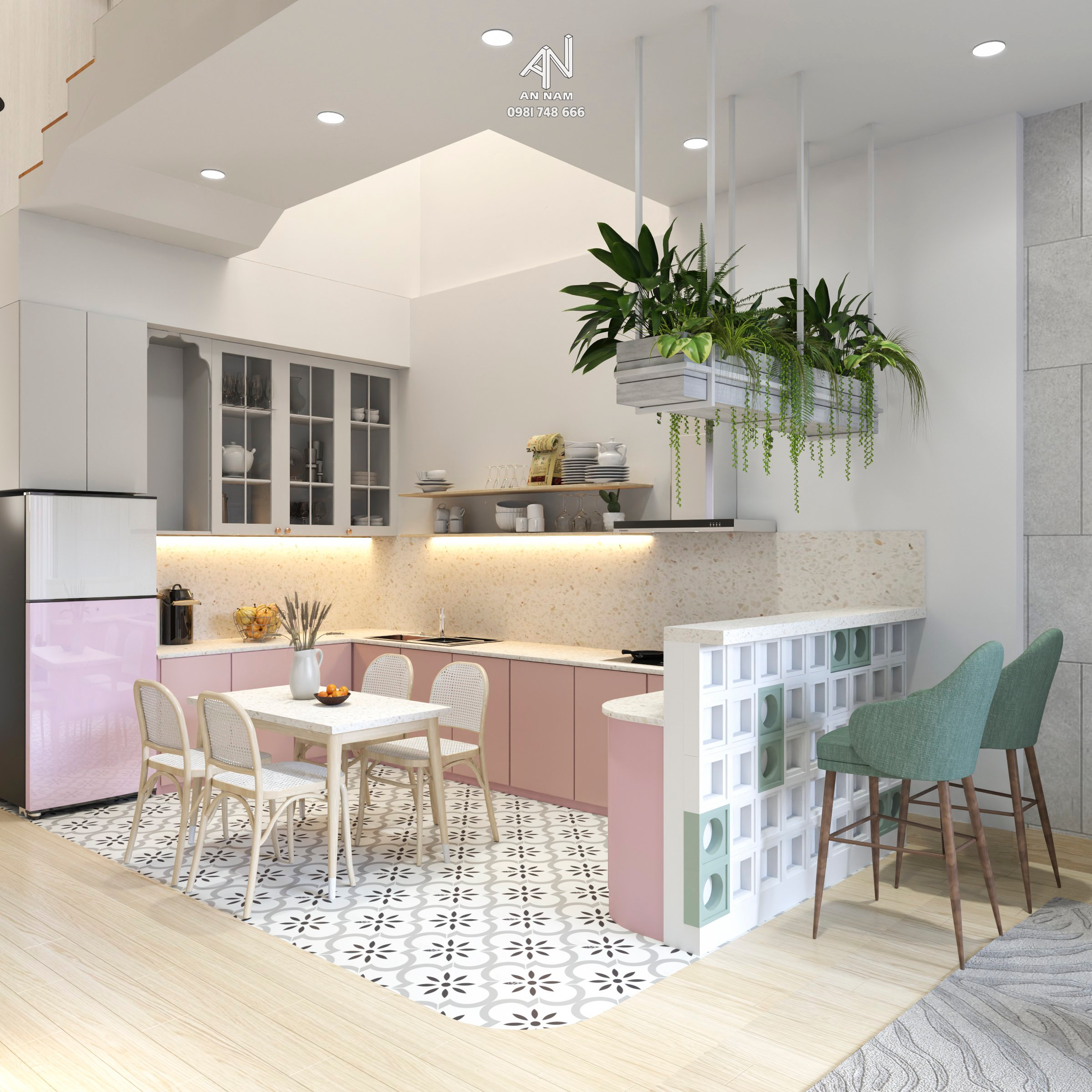 An Nam đã tối đa hóa ánh sáng mặt trời, sử dụng vật liệu tự nhiên như gỗ, cây xanh, thêm các tone màu chủ đạo tươi sáng như hồng và xanh lá để tạo không gian tươi mát, gần gũi với thiên nhiên.