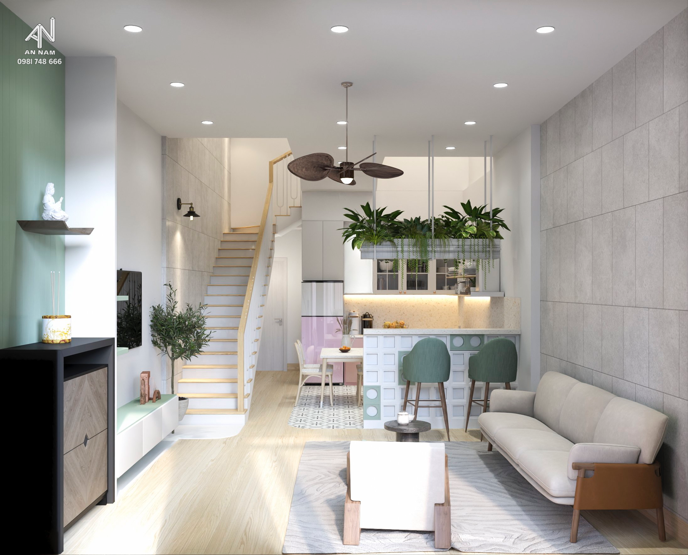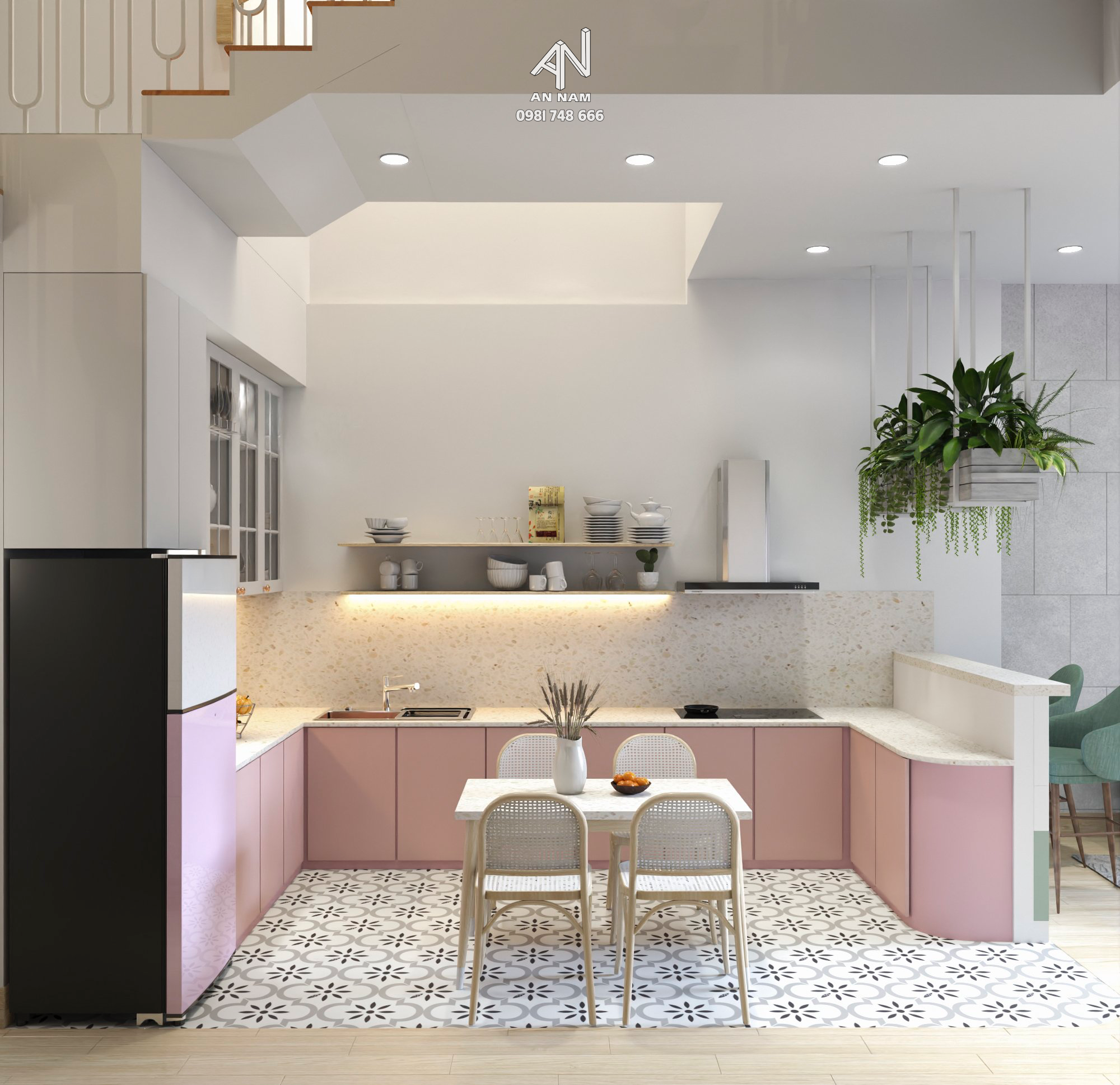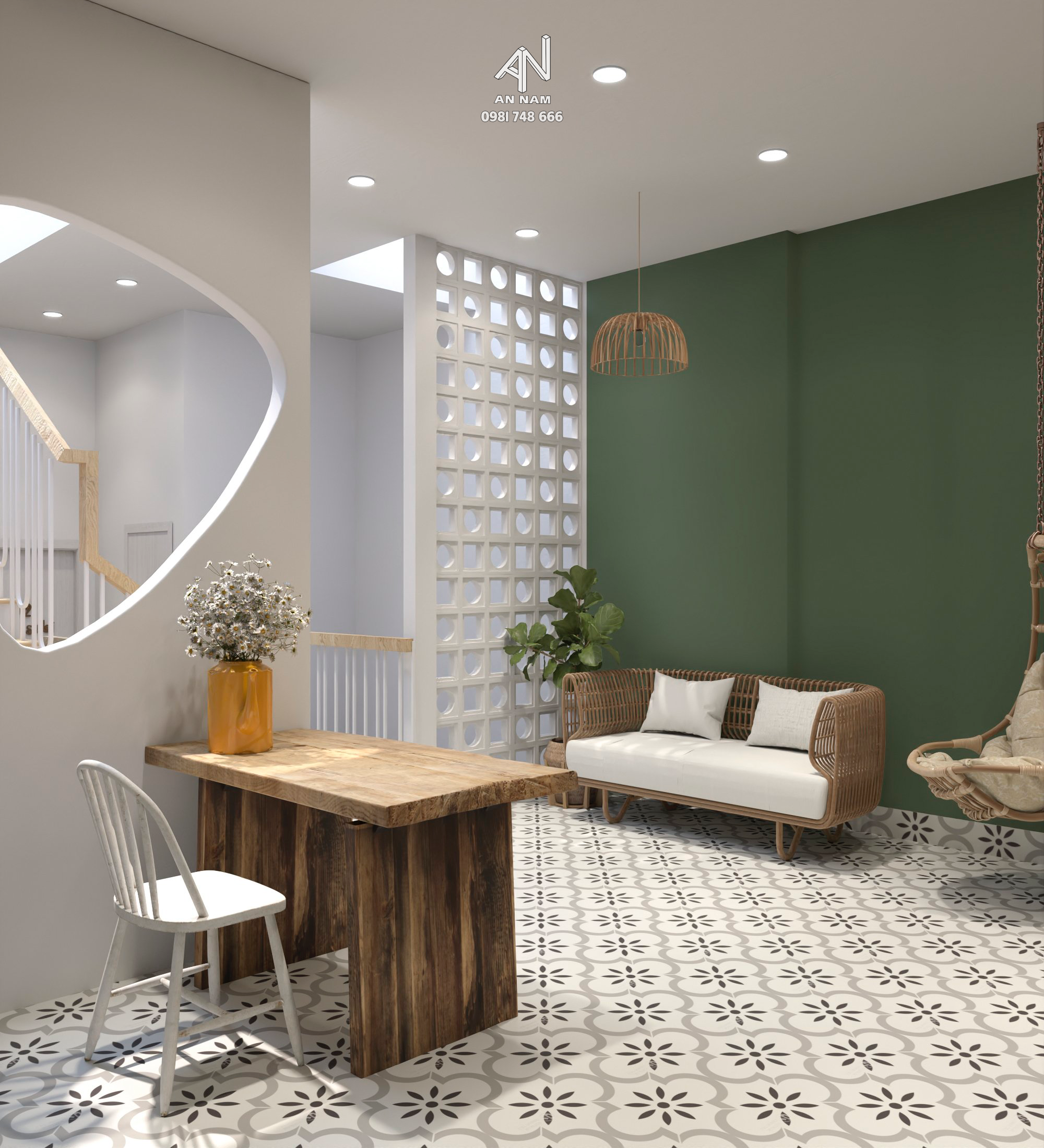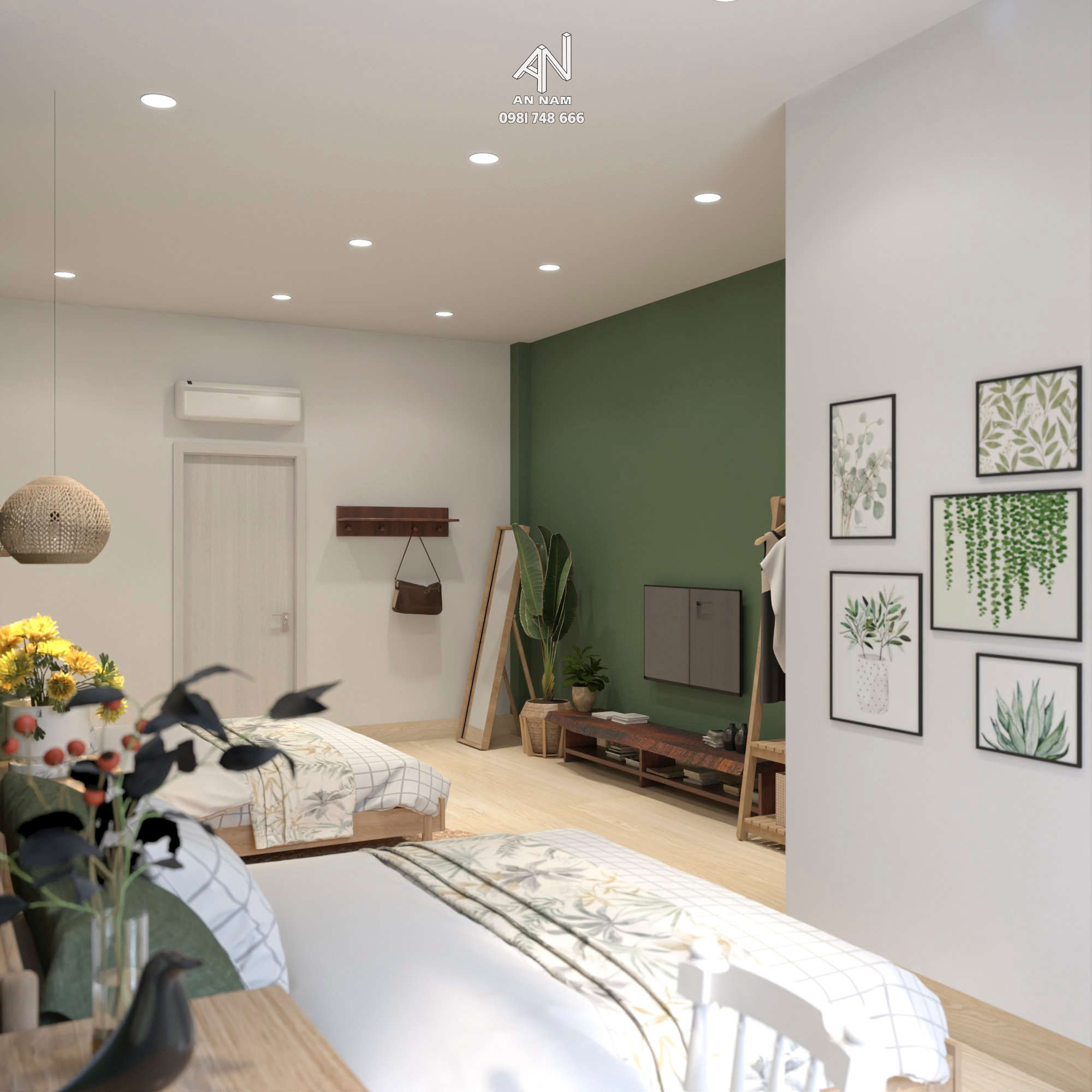 An Nam đã tối đa hóa ánh sáng mặt trời, sử dụng vật liệu tự nhiên như gỗ, cây xanh, thêm các tone màu chủ đạo tươi sáng như hồng và xanh lá để tạo không gian tươi mát, gần gũi với thiên nhiên.
