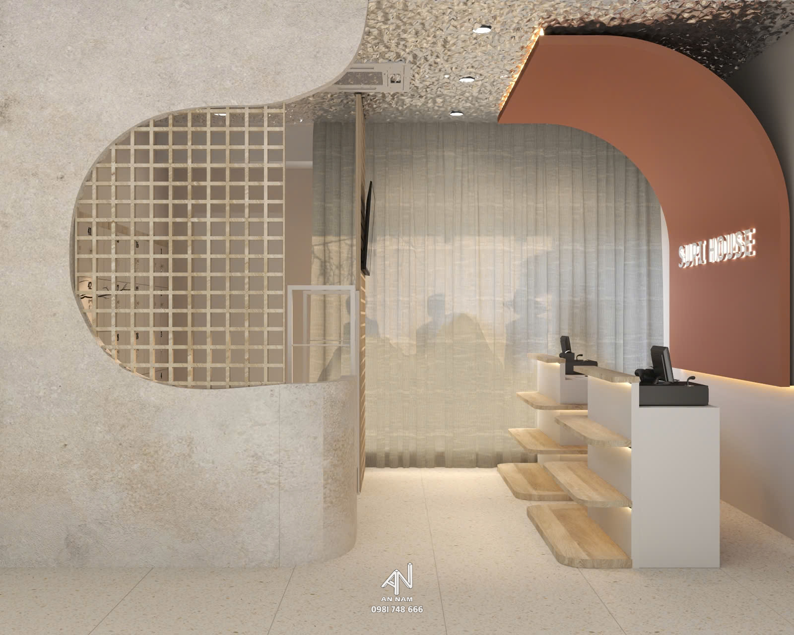 Ngoài ra, cửa hàng này có có điểm nhấn độc đáo đến từ những tấm inox sóng nước, mang đến vẻ lạ mắt và cá tính cho nội thất.